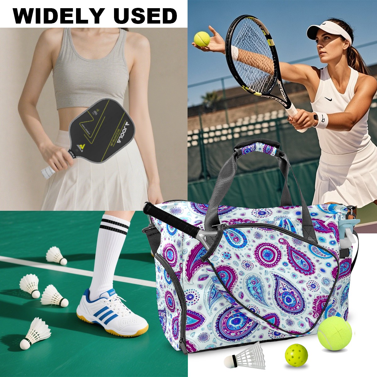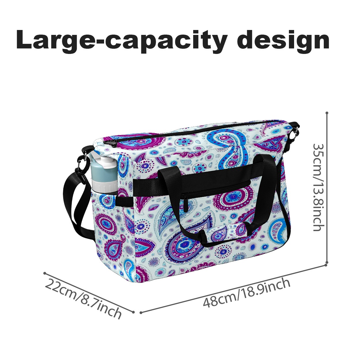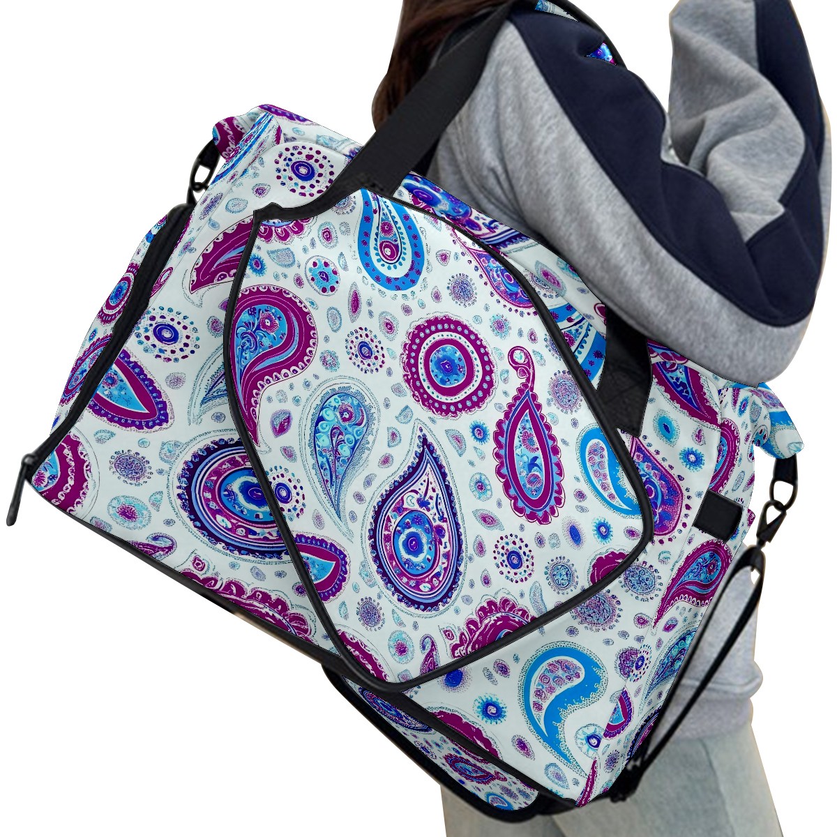 Large Gym Bag with Shoe Compartment, Water-Resistant Duffle Bag for Men and Women, Blue Purple Paisley Pattern Sports Tote for Workout Travel