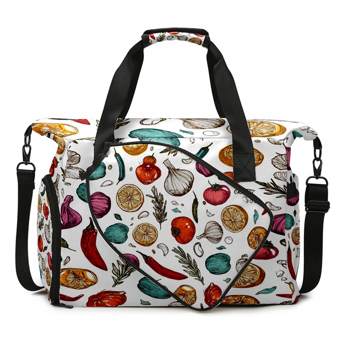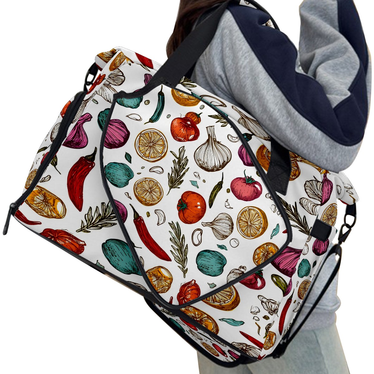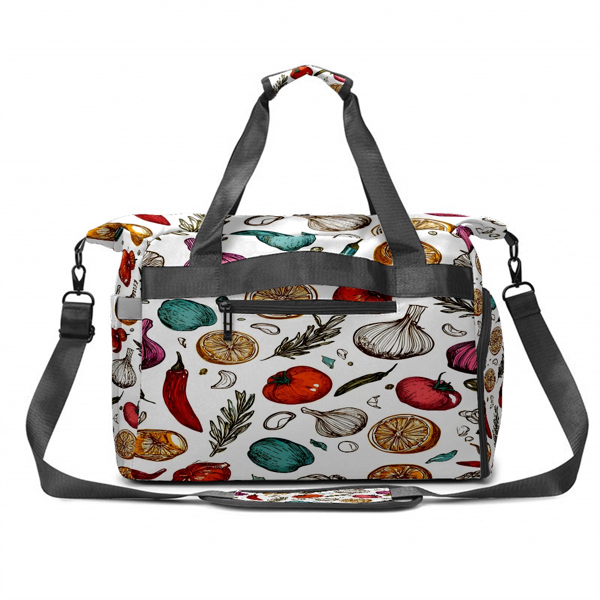 Large Gym Bag with Shoe Compartment, Water-Resistant Duffle Bag for Men and Women, Vegetables & Spices Collage Sports Tote for Workout Travel
