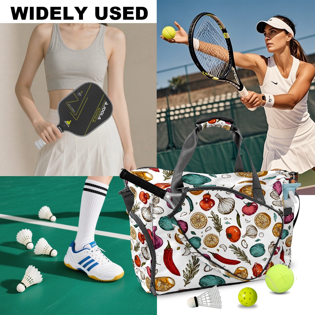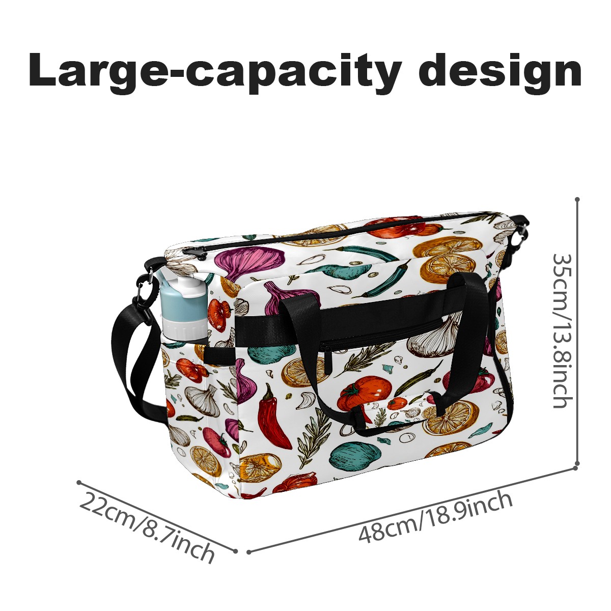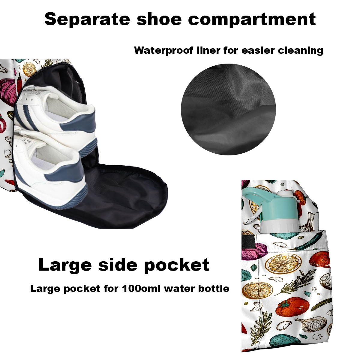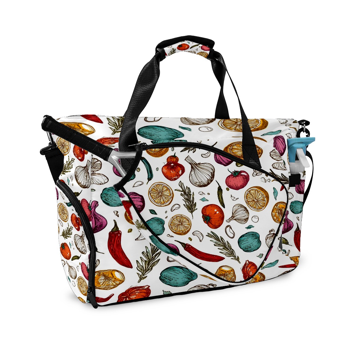 Large Gym Bag with Shoe Compartment, Water-Resistant Duffle Bag for Men and Women, Vegetables & Spices Collage Sports Tote for Workout Travel
