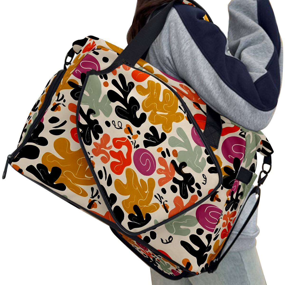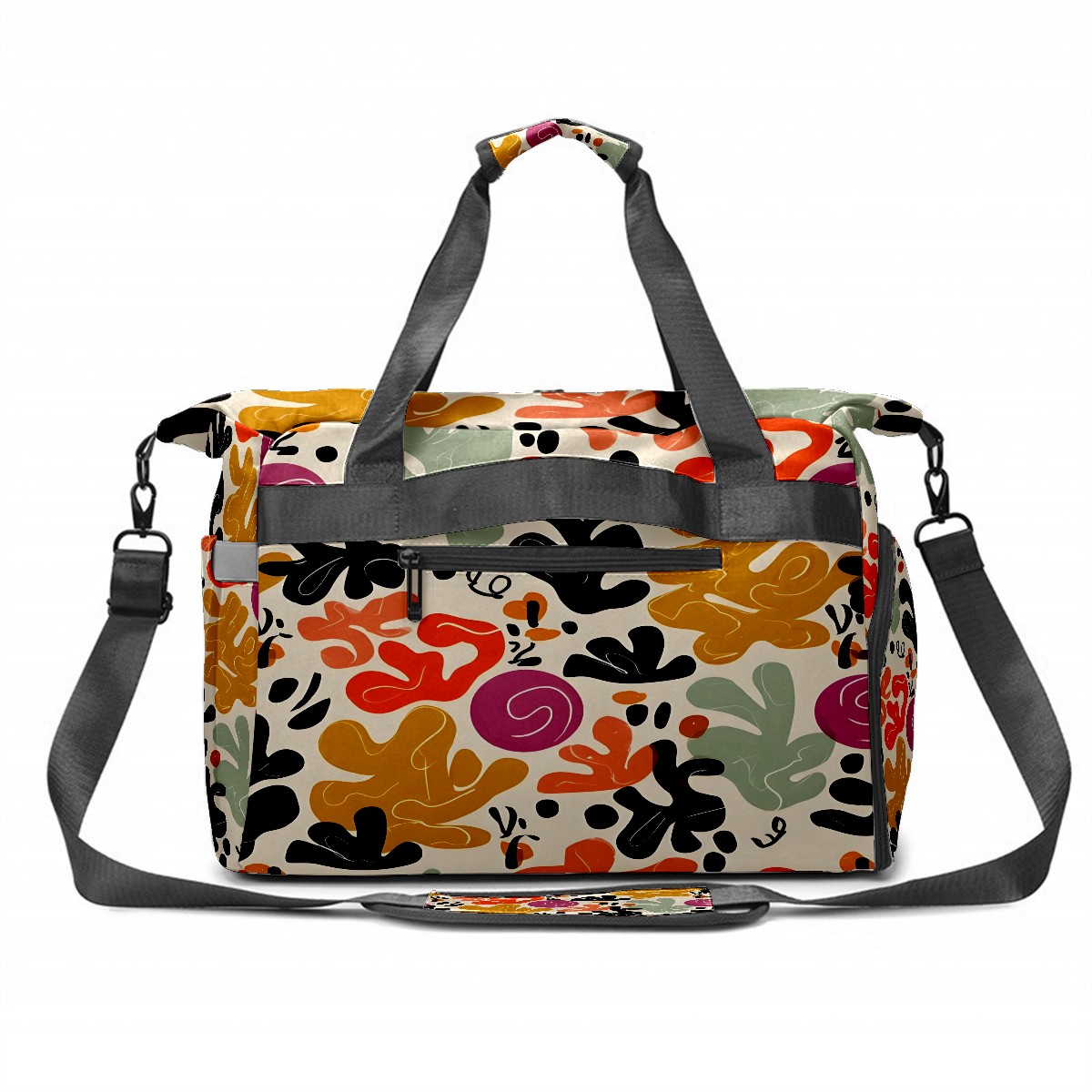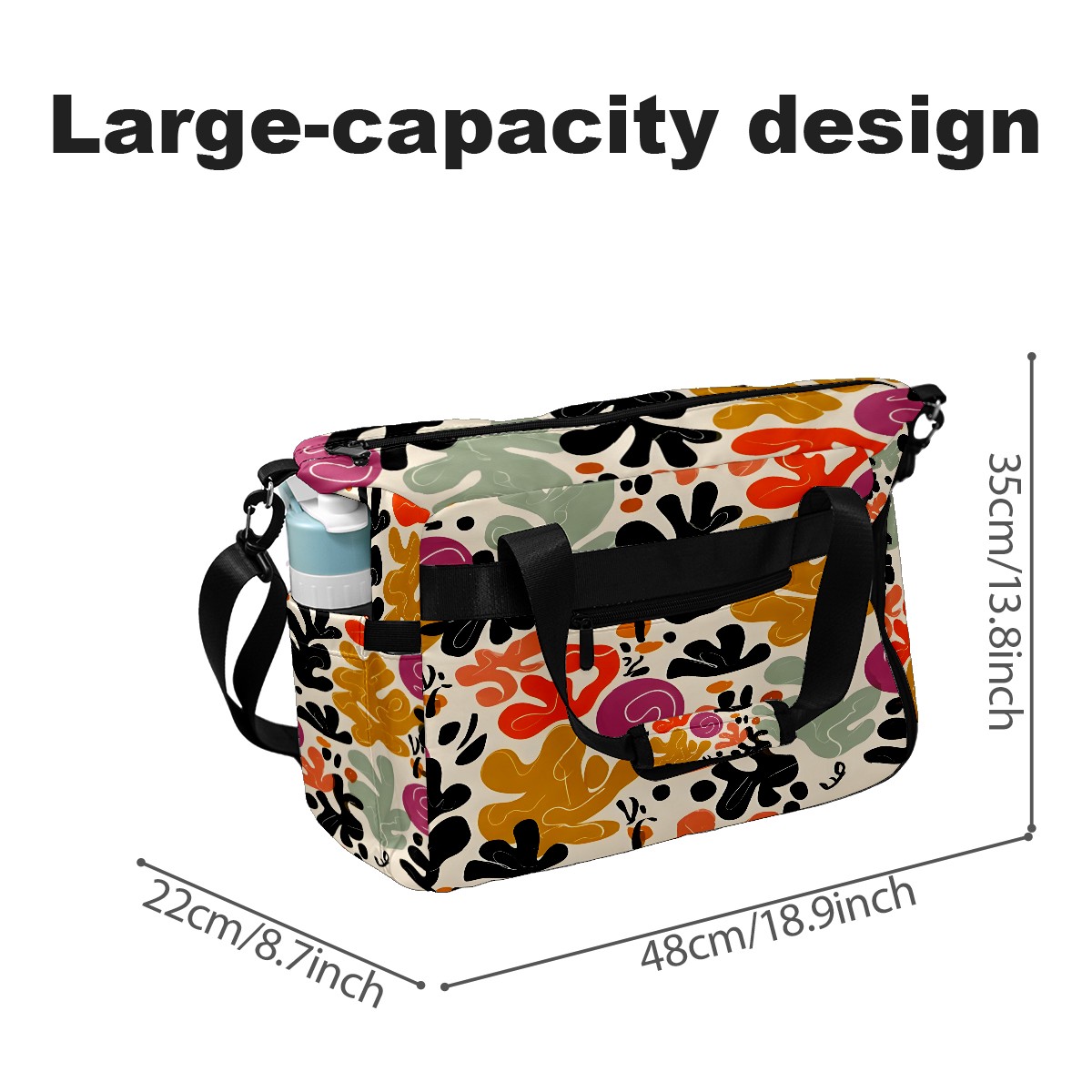Large Gym Bag with Shoe Compartment, Water-Resistant Duffle Bag for Men and Women, Multicolor Abstract Plant Shapes Sports Tote for Workout Travel