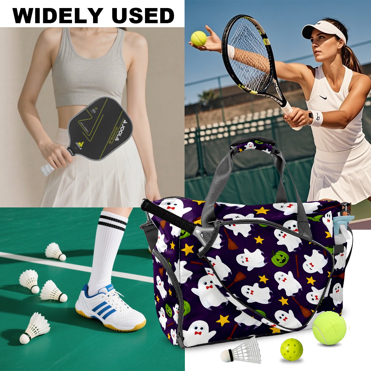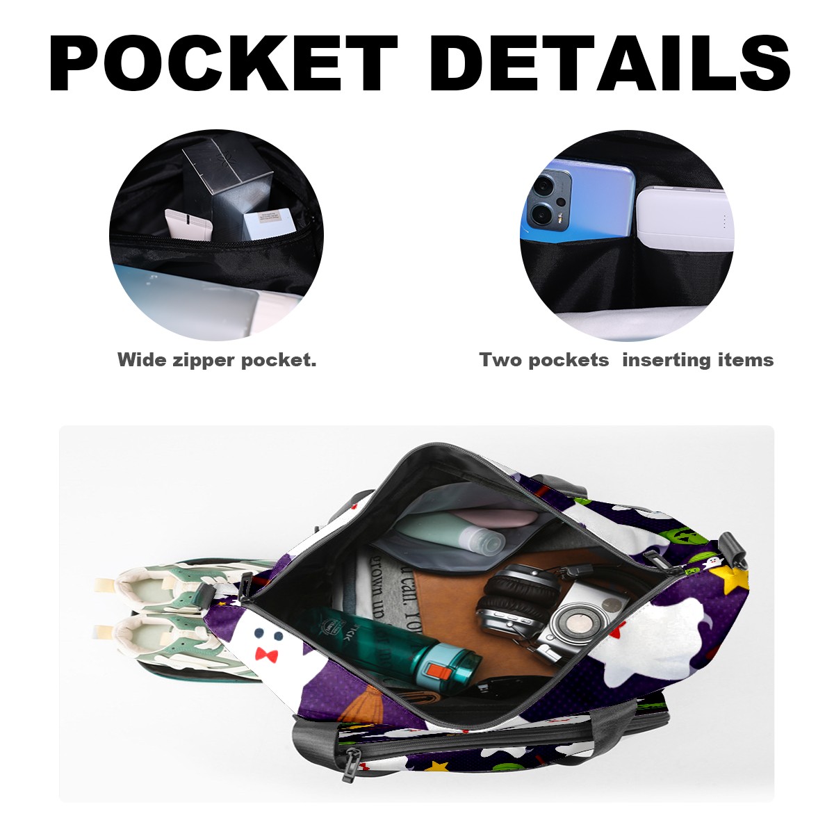 Large Gym Bag with Shoe Compartment, Water-Resistant Duffle Bag for Men and Women, Purple Halloween Ghosts Stars Sports Tote for Workout Travel