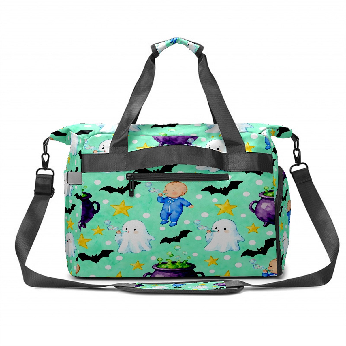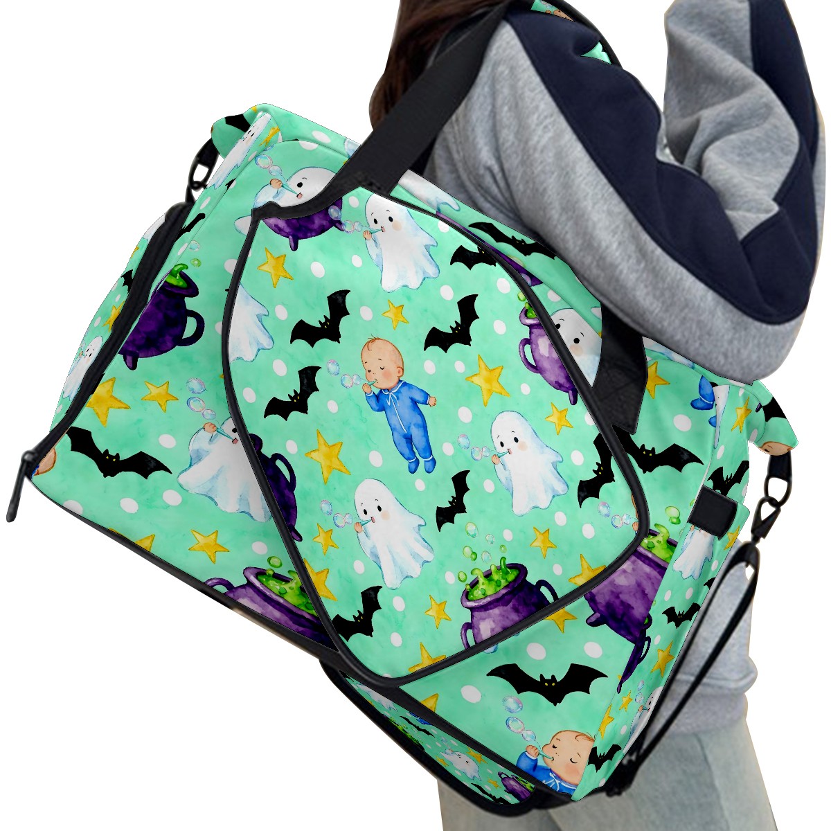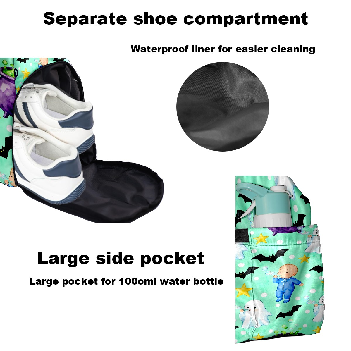 Large Gym Bag with Shoe Compartment, Water-Resistant Duffle Bag for Men and Women, Mint Green Halloween Ghosts & Baby Sports Tote for Workout Travel