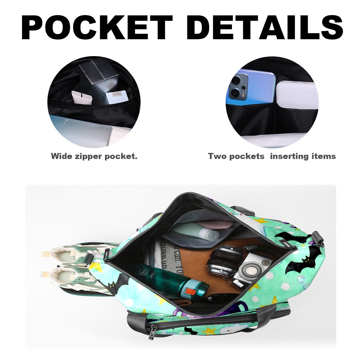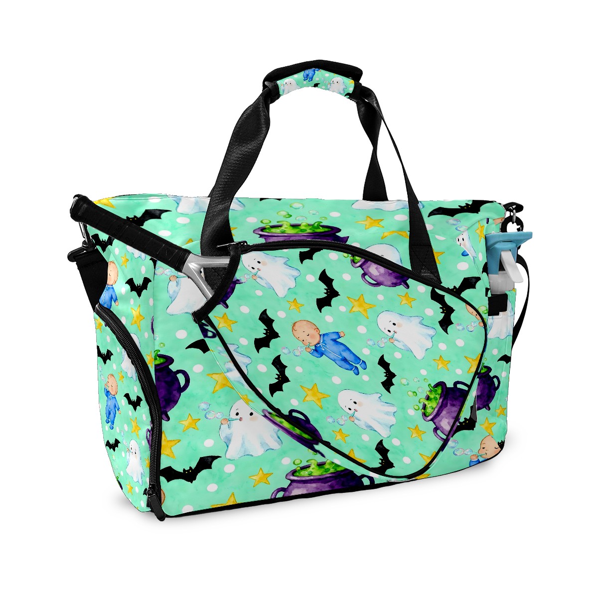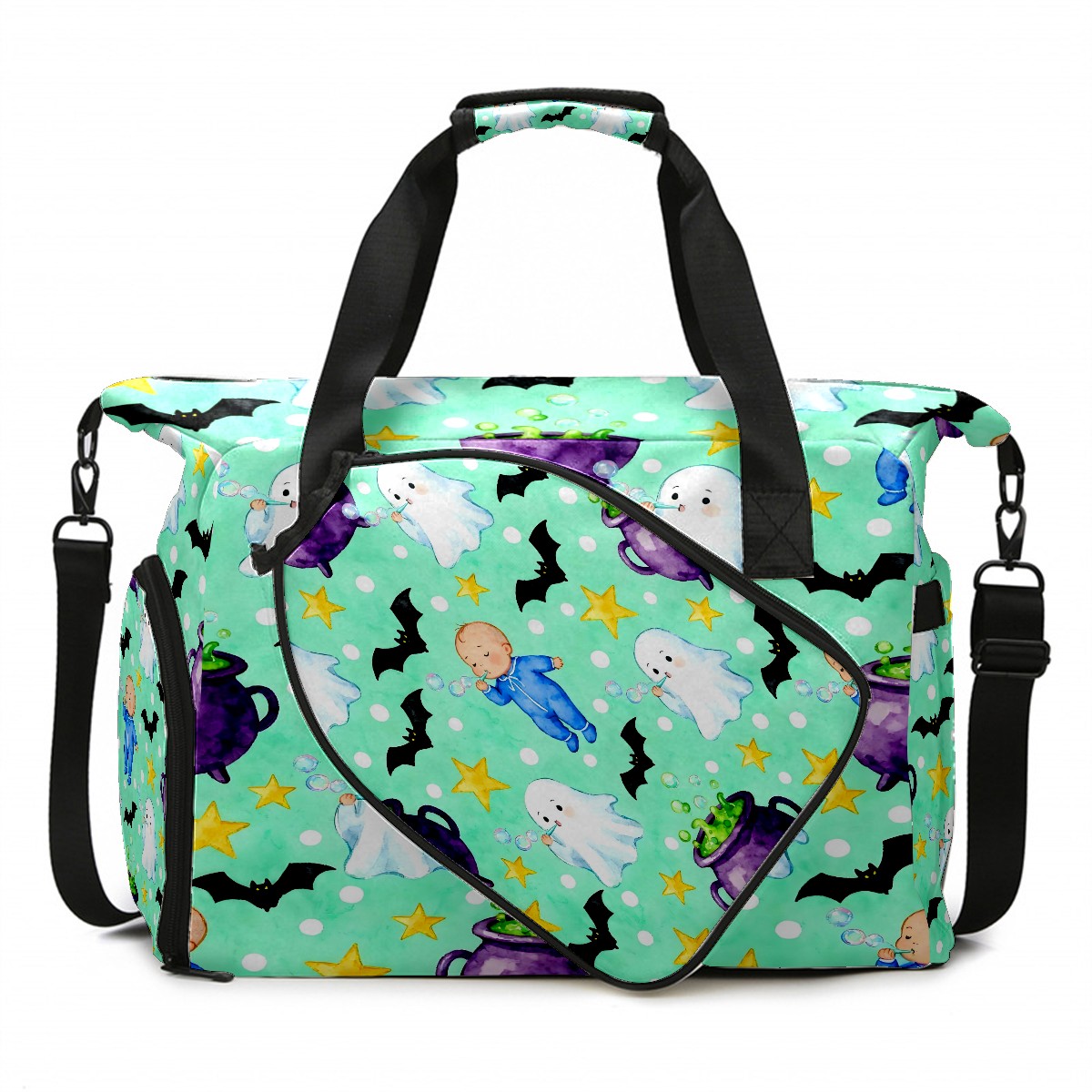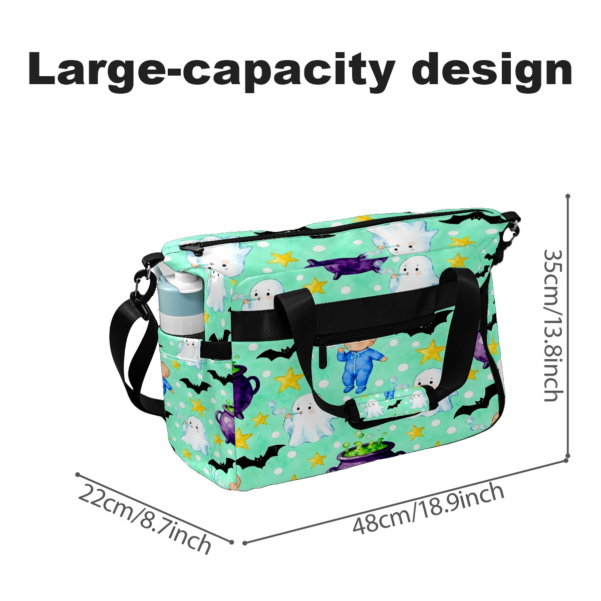 Large Gym Bag with Shoe Compartment, Water-Resistant Duffle Bag for Men and Women, Mint Green Halloween Ghosts & Baby Sports Tote for Workout Travel