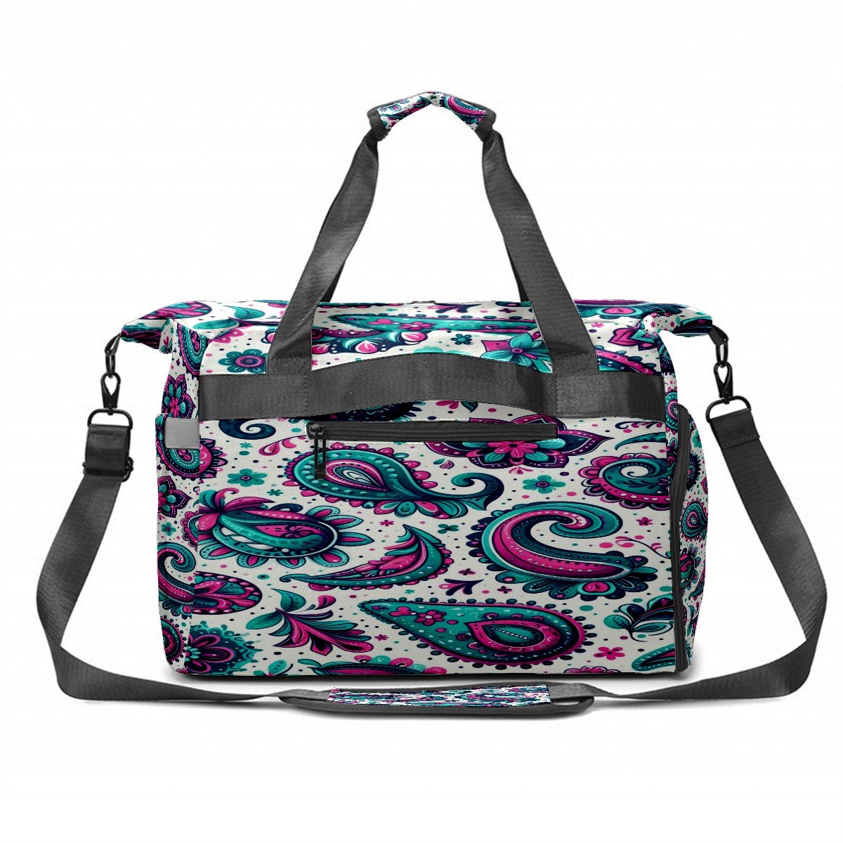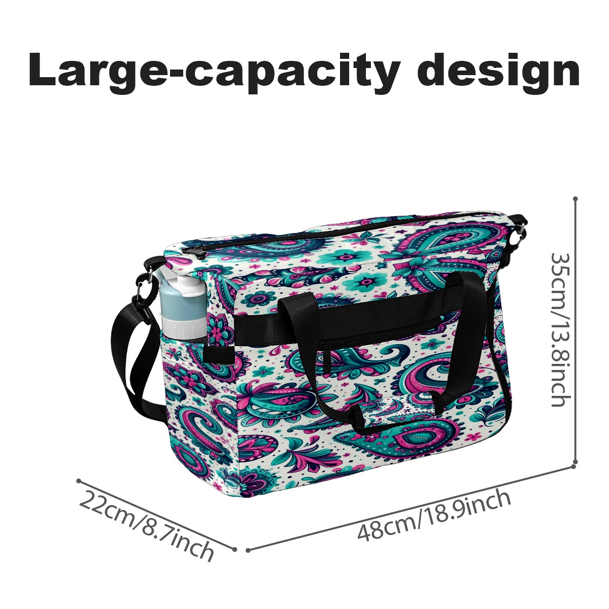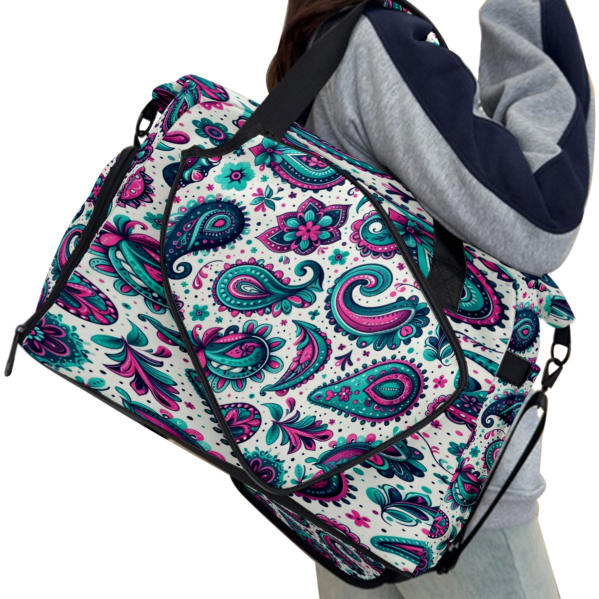 Large Gym Bag with Shoe Compartment, Water-Resistant Duffle Bag for Men and Women, Blue Purple Paisley Sports Tote for Workout Travel