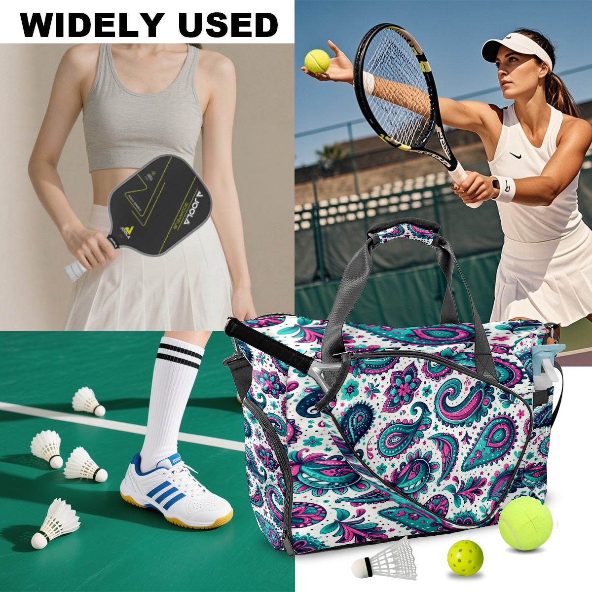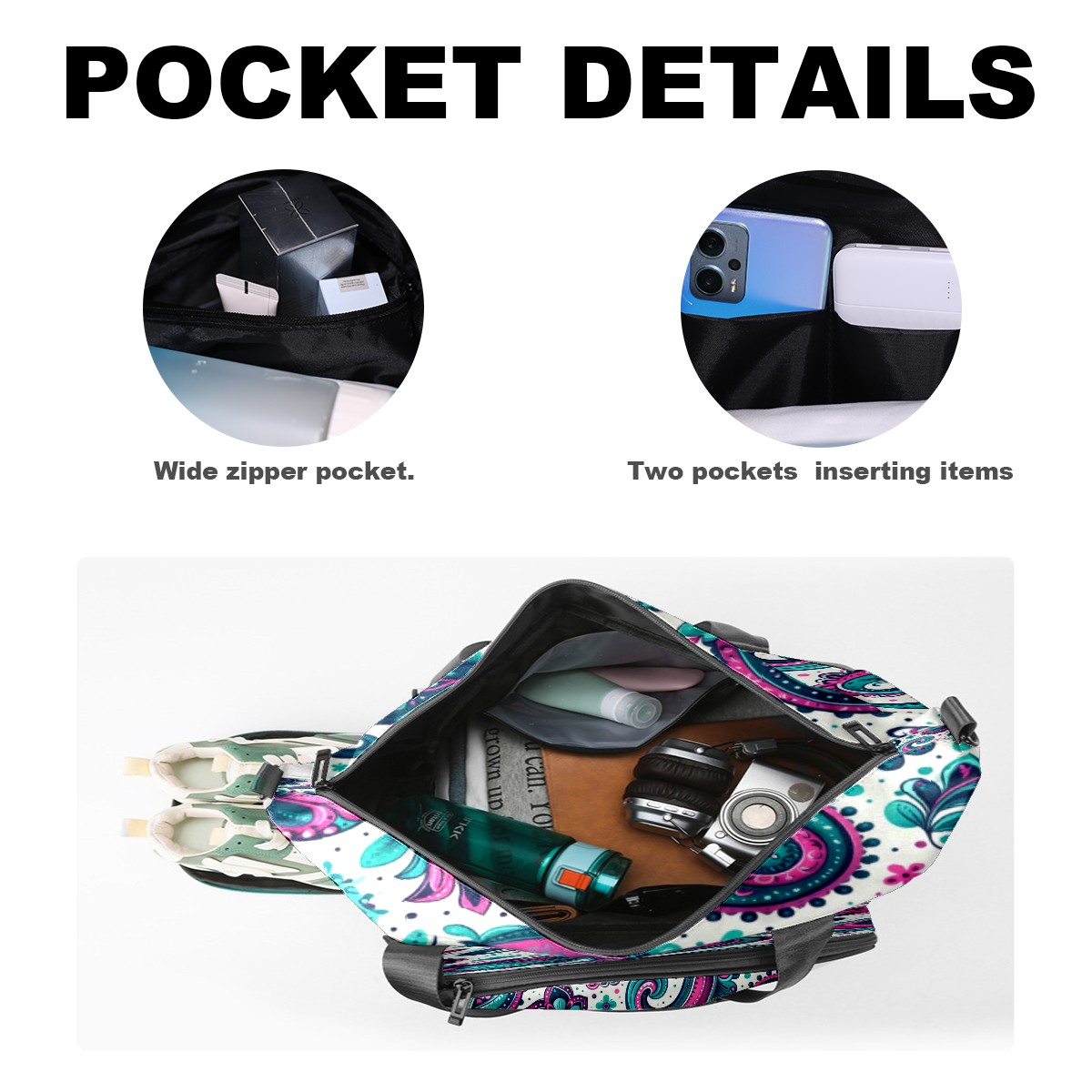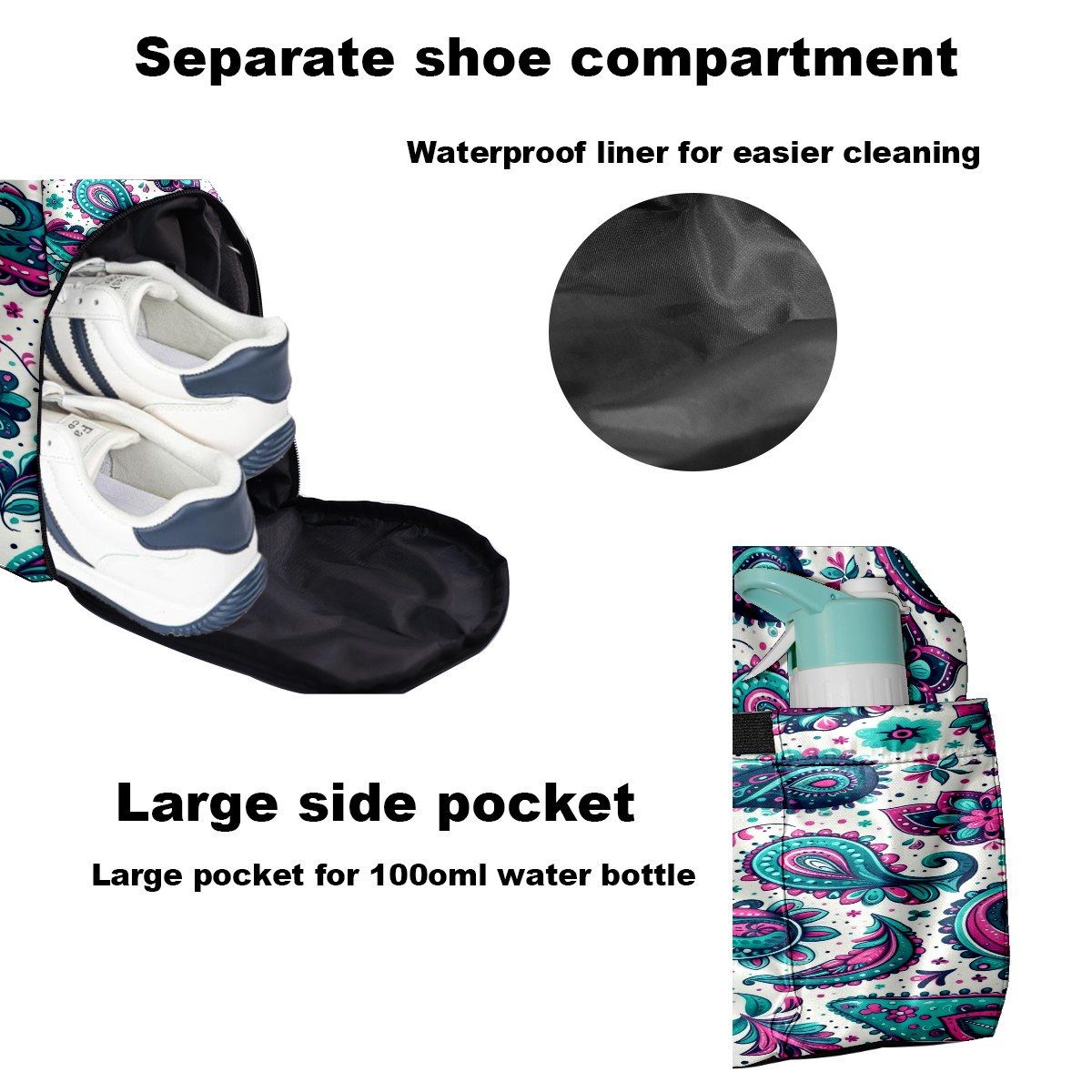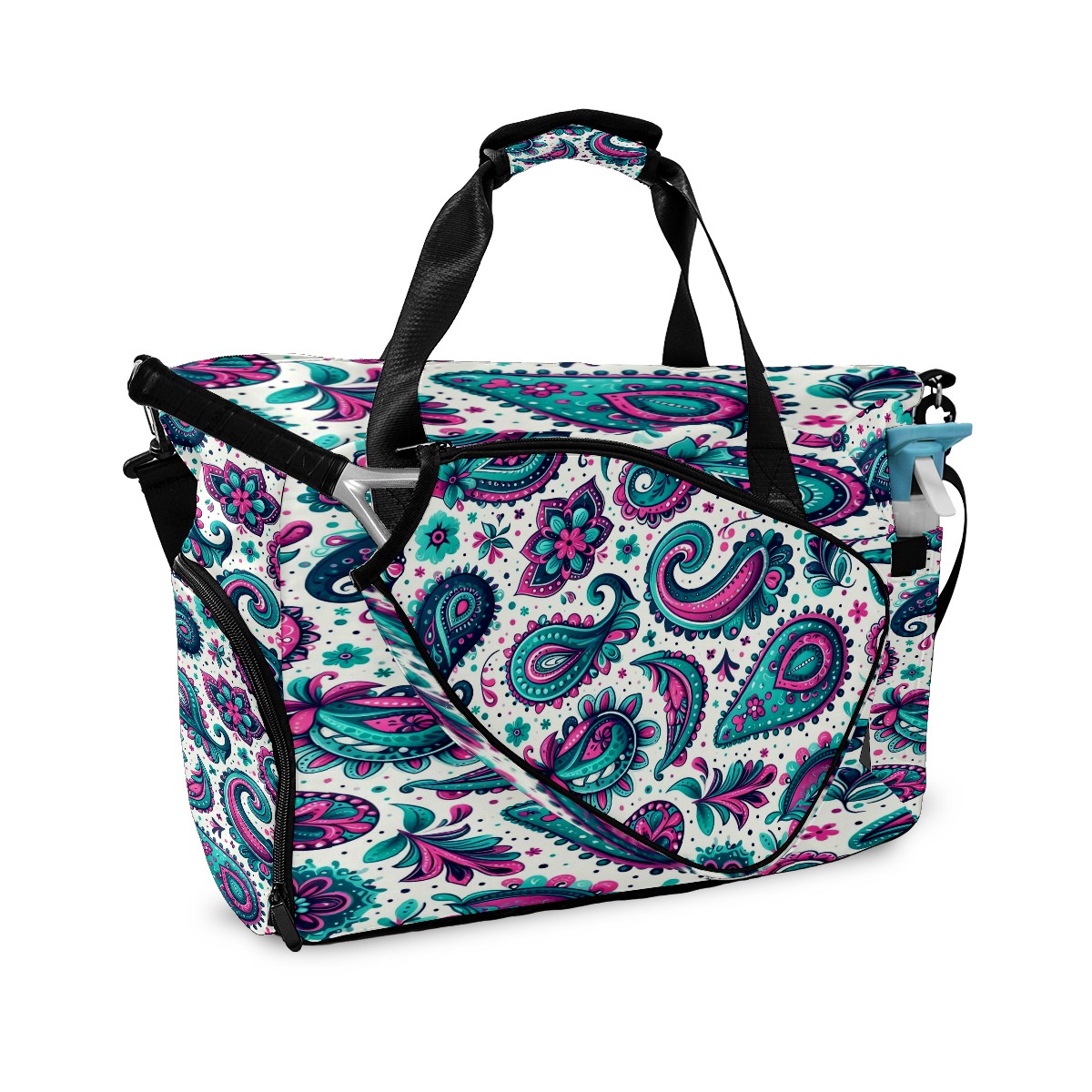 Large Gym Bag with Shoe Compartment, Water-Resistant Duffle Bag for Men and Women, Blue Purple Paisley Sports Tote for Workout Travel