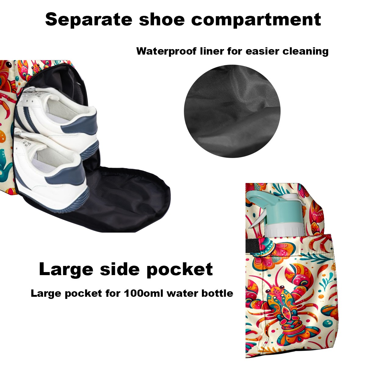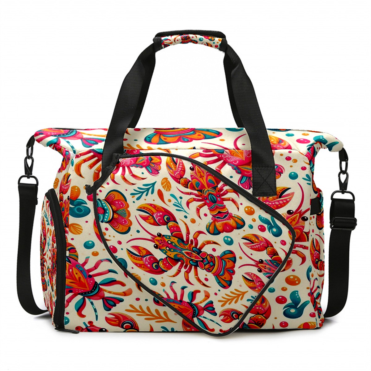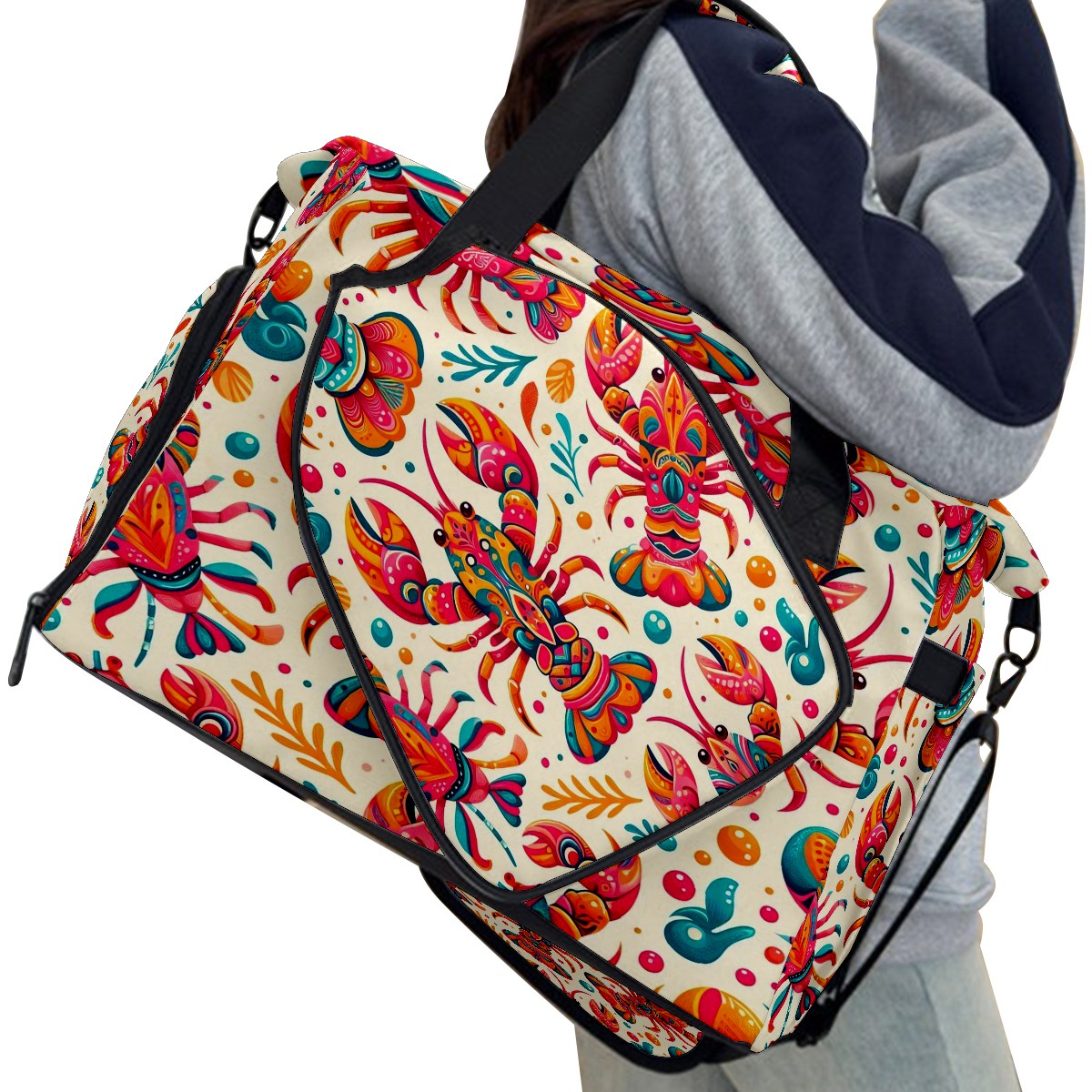 Large Gym Bag with Shoe Compartment, Water-Resistant Duffle Bag for Men and Women, Multicolor Lobster Seafood Sports Tote for Workout Travel
