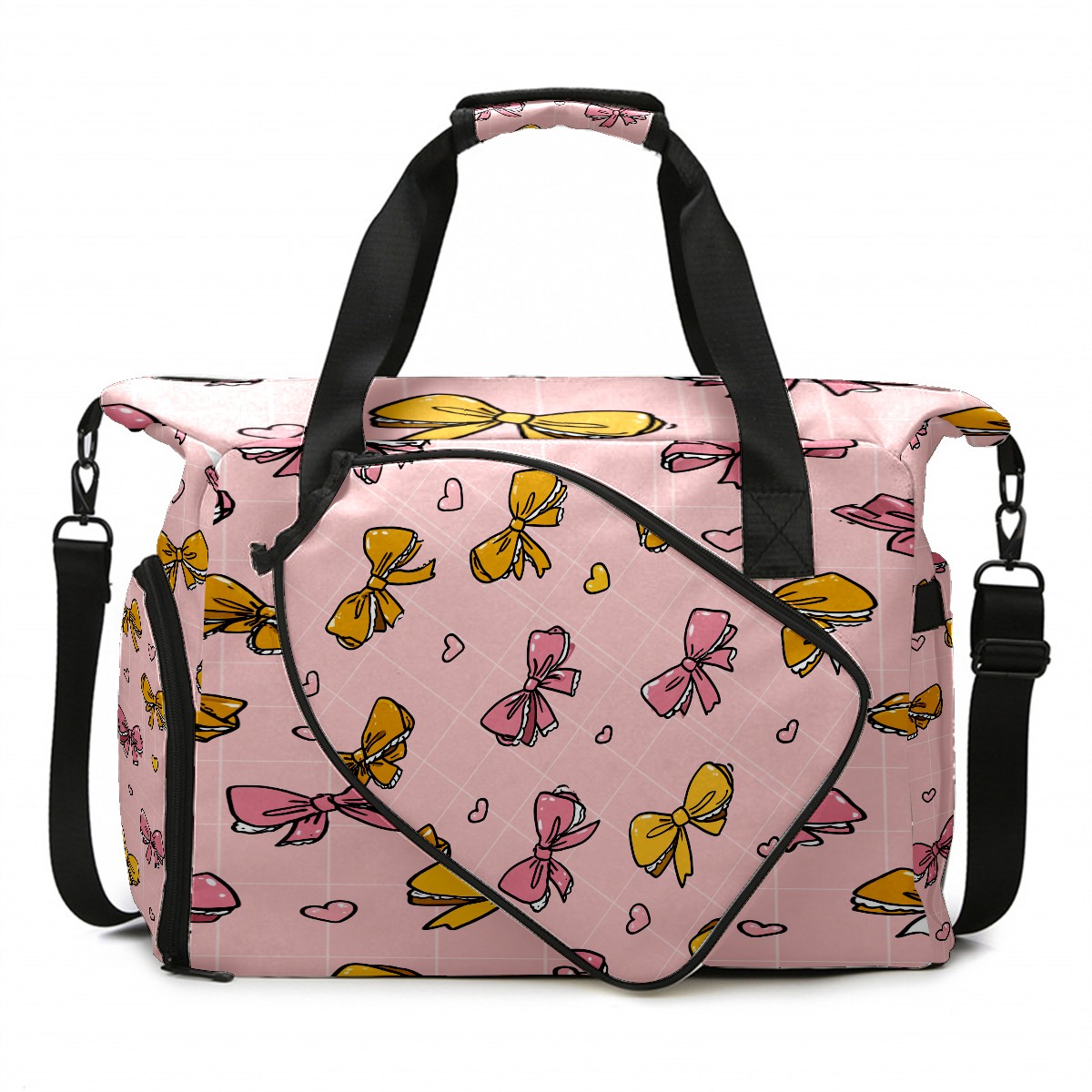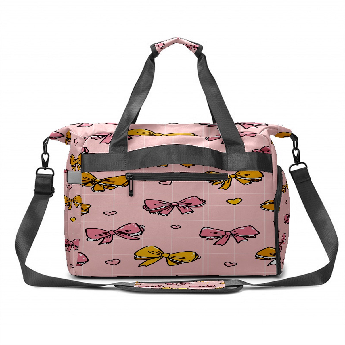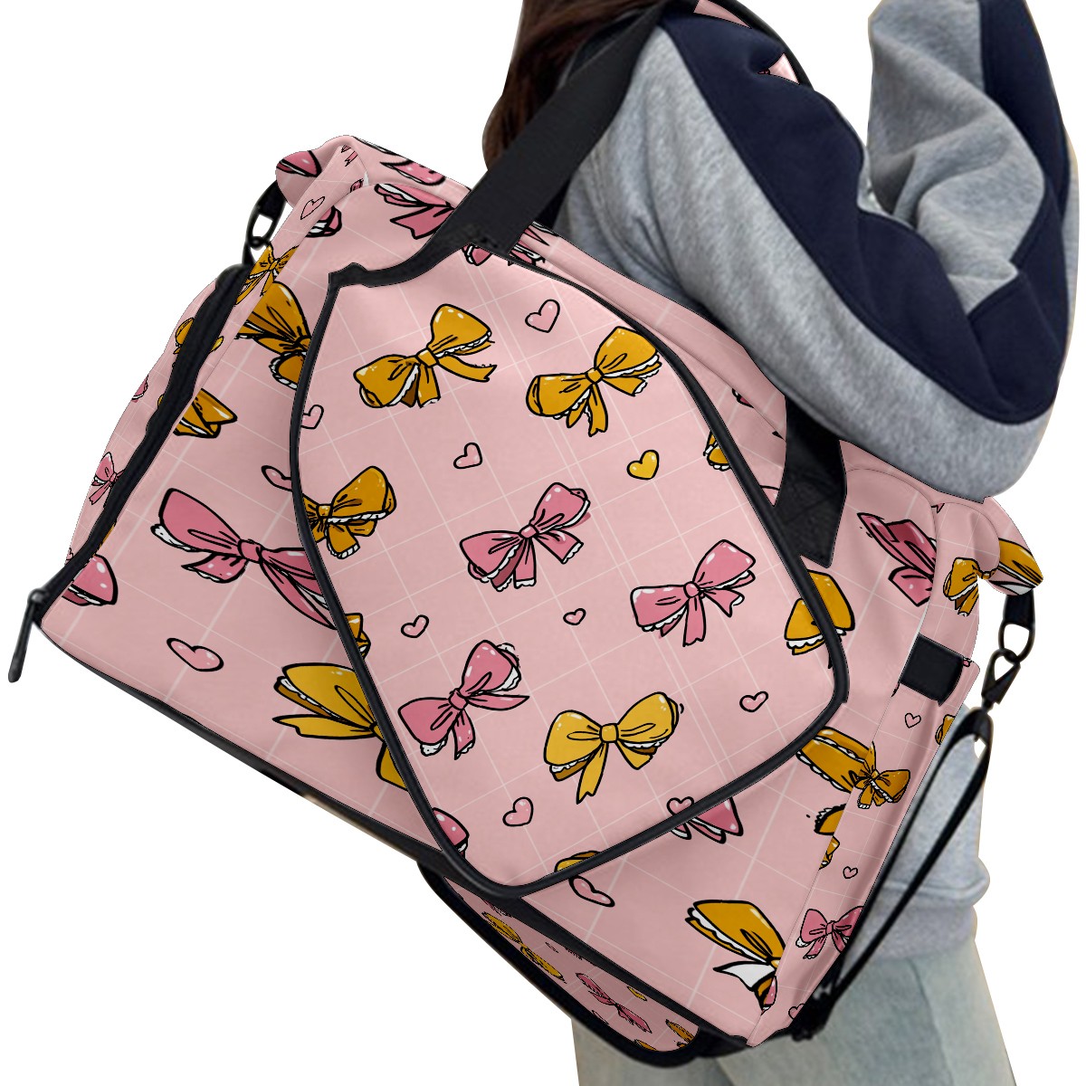 Large Gym Bag with Shoe Compartment, Water-Resistant Duffle Bag for Men and Women, Pink Bows Lace Sports Tote for Workout Travel