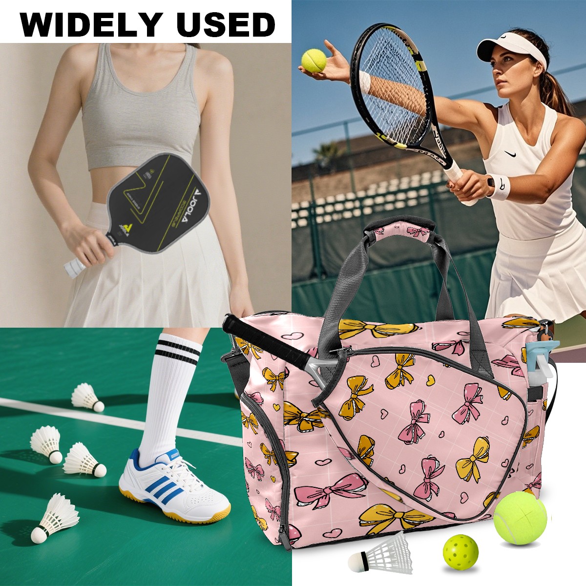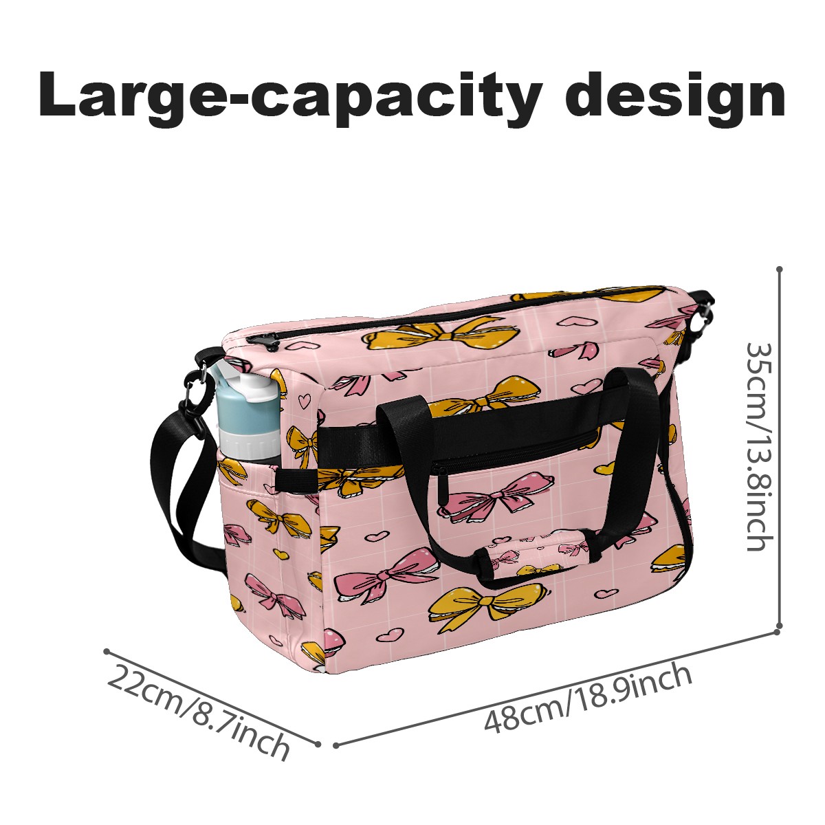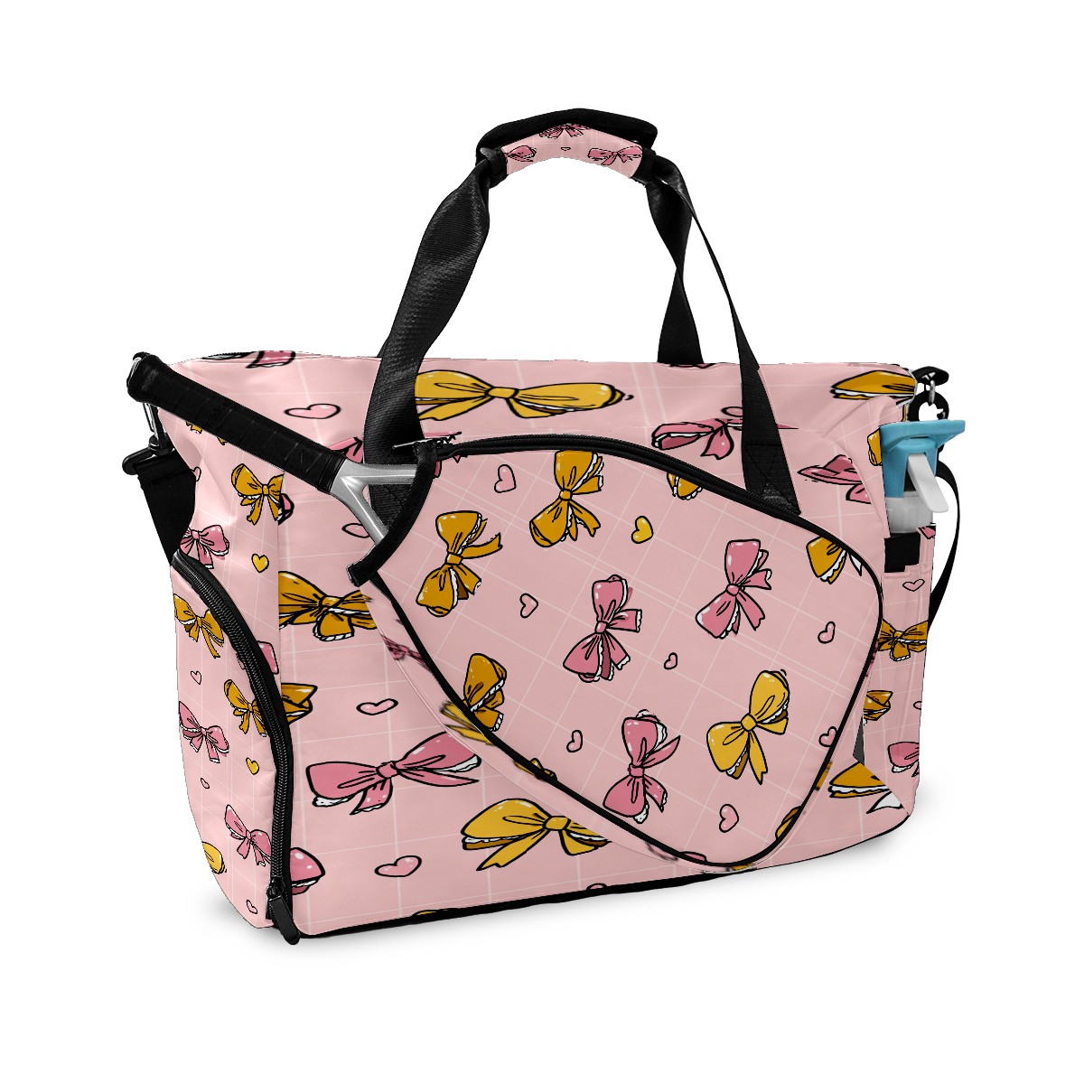Large Gym Bag with Shoe Compartment, Water-Resistant Duffle Bag for Men and Women, Pink Bows Lace Sports Tote for Workout Travel
