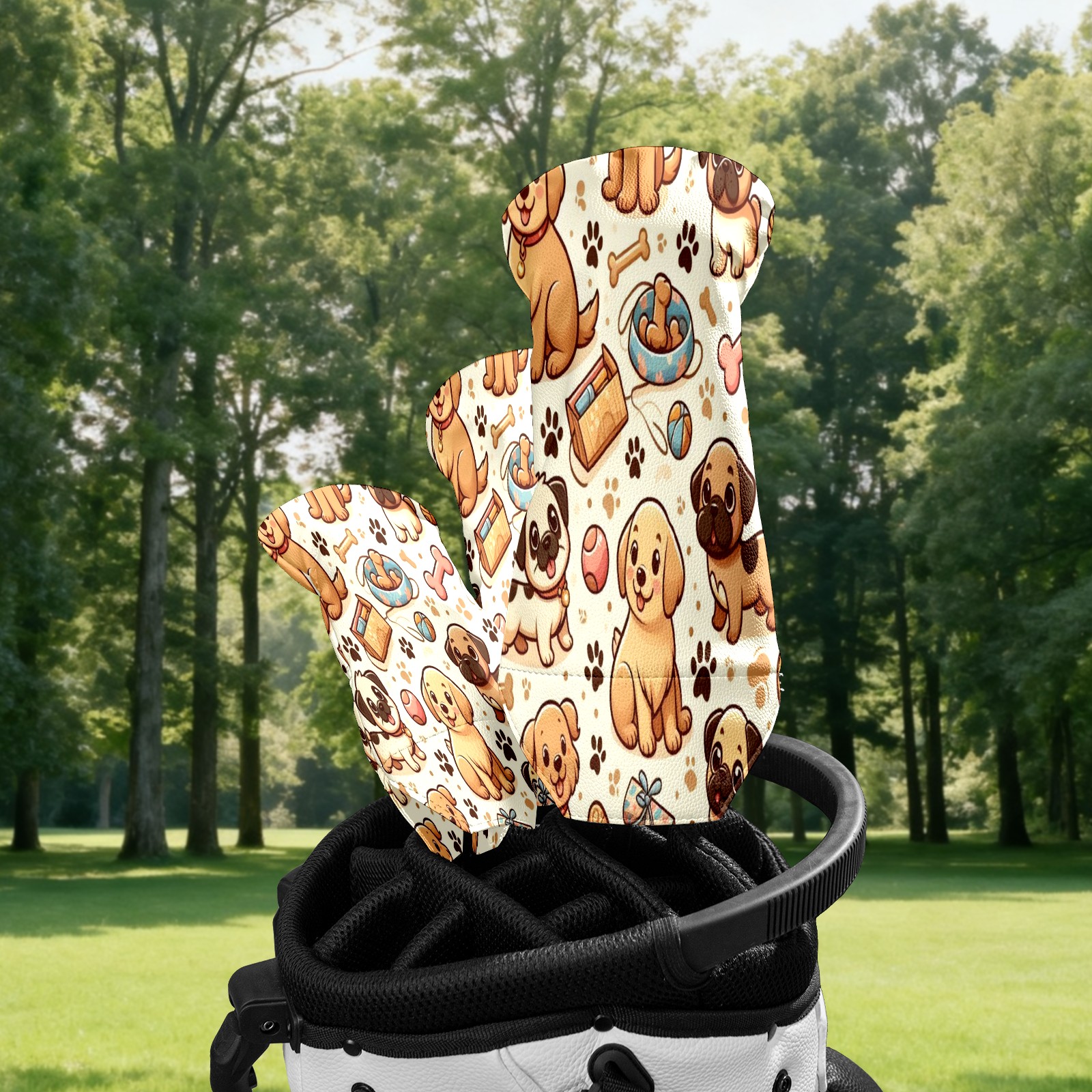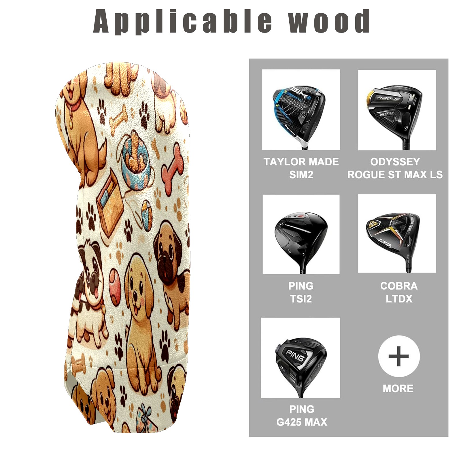 Golf Club Head Cover Waterproof Leather for Driver & Fairway Wood, Driver Headcovers, Golf Accessories for Men Women, Anti-Scratch, Golf Gift for Golfers, 1/3/5 Wood Cover LightBrown Dog
