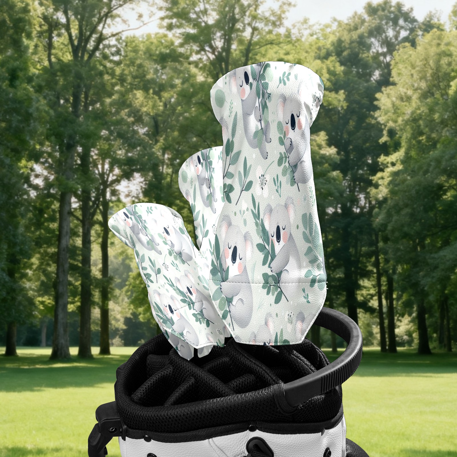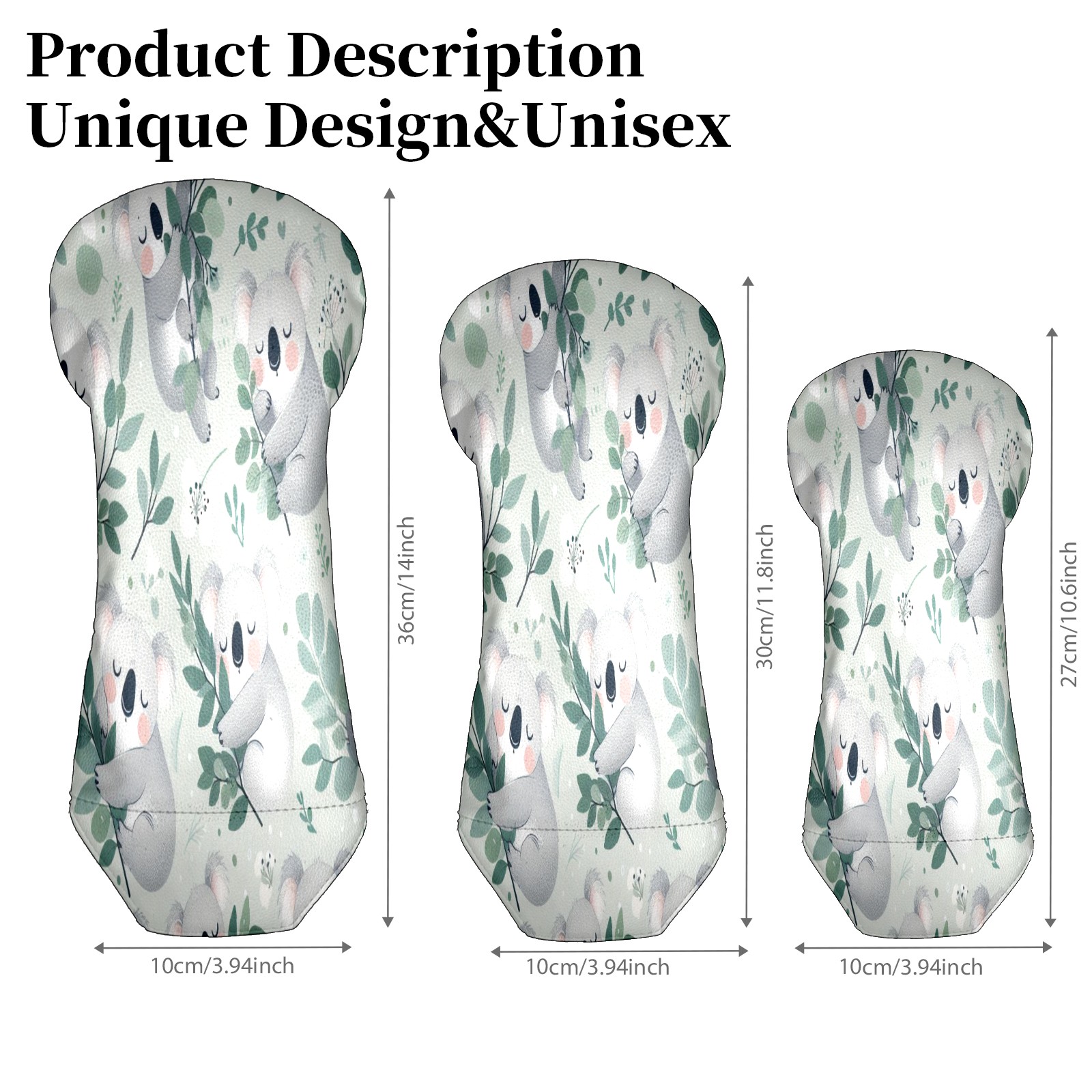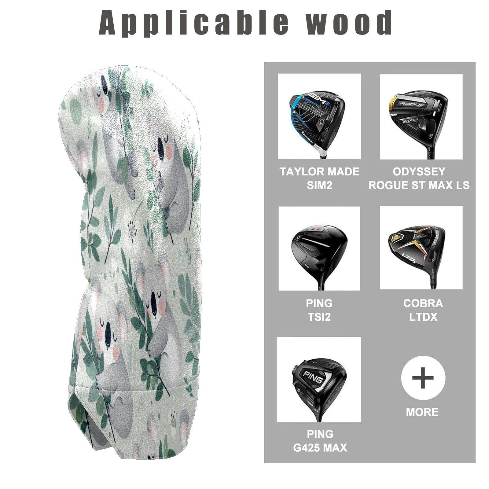 Golf Club Head Cover Waterproof Leather for Driver & Fairway Wood, Driver Headcovers, Golf Accessories for Men Women, Anti-Scratch, Golf Gift for Golfers, 1/3/5 Wood Cover LightGray Koala