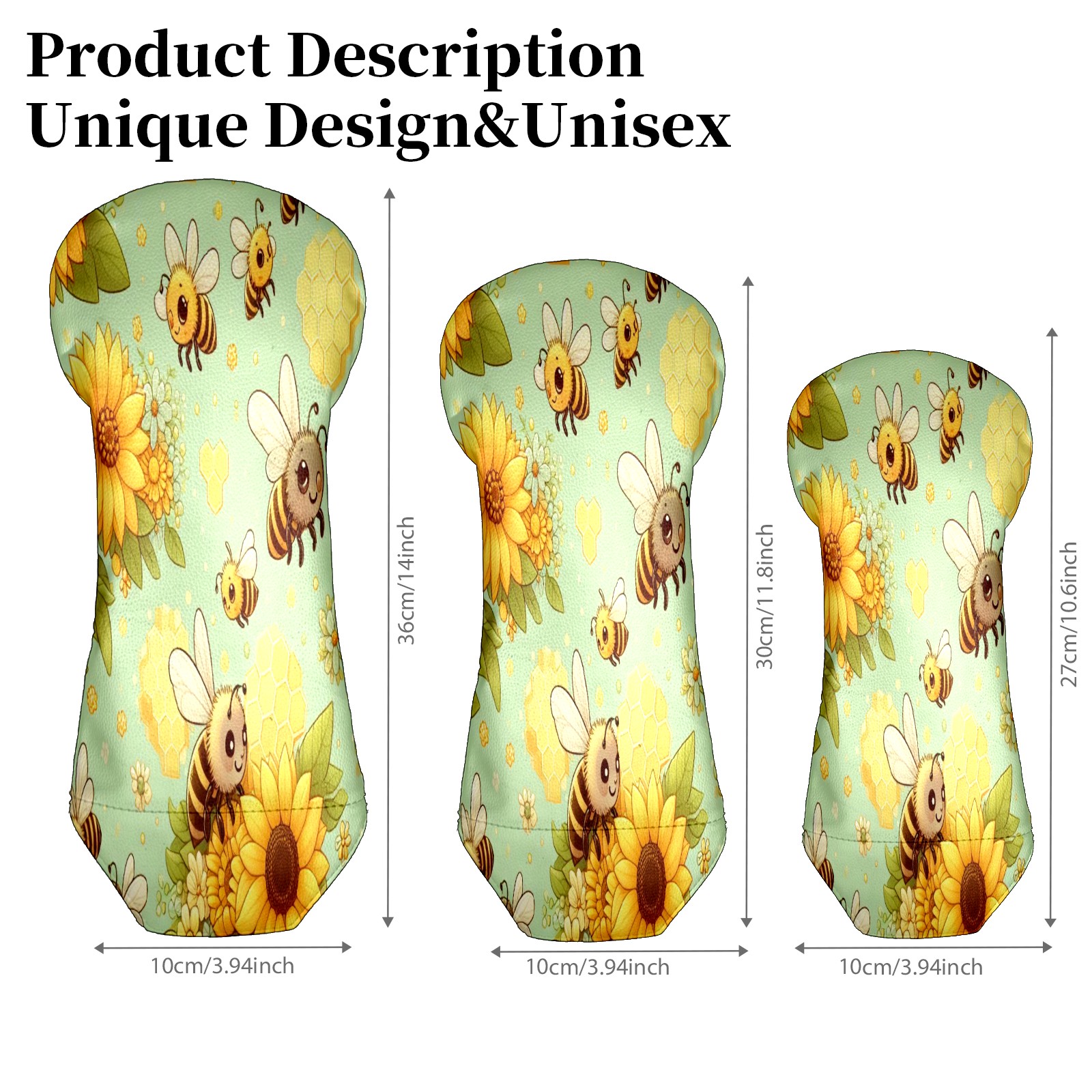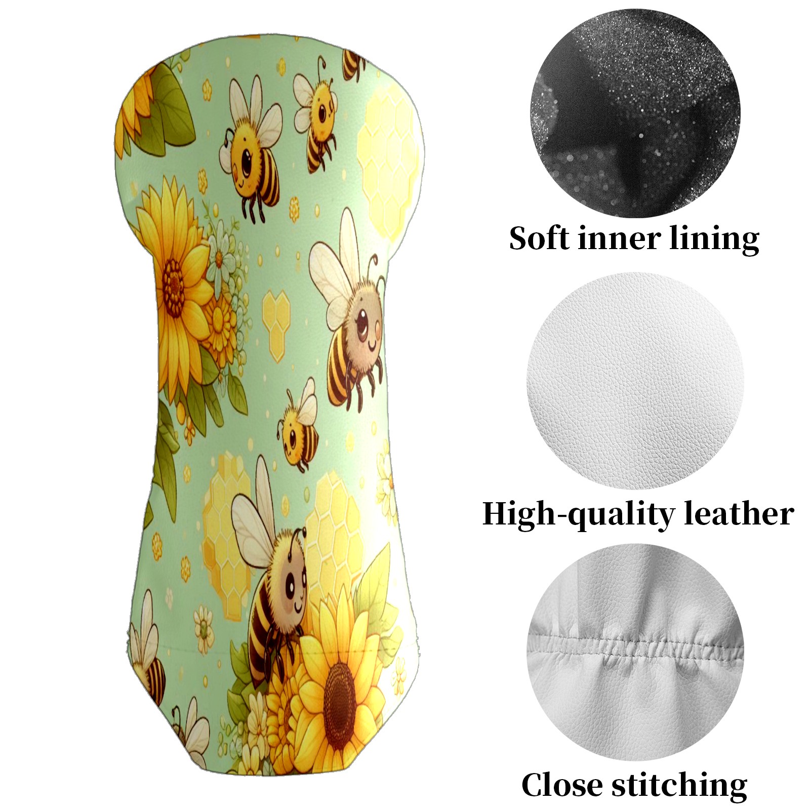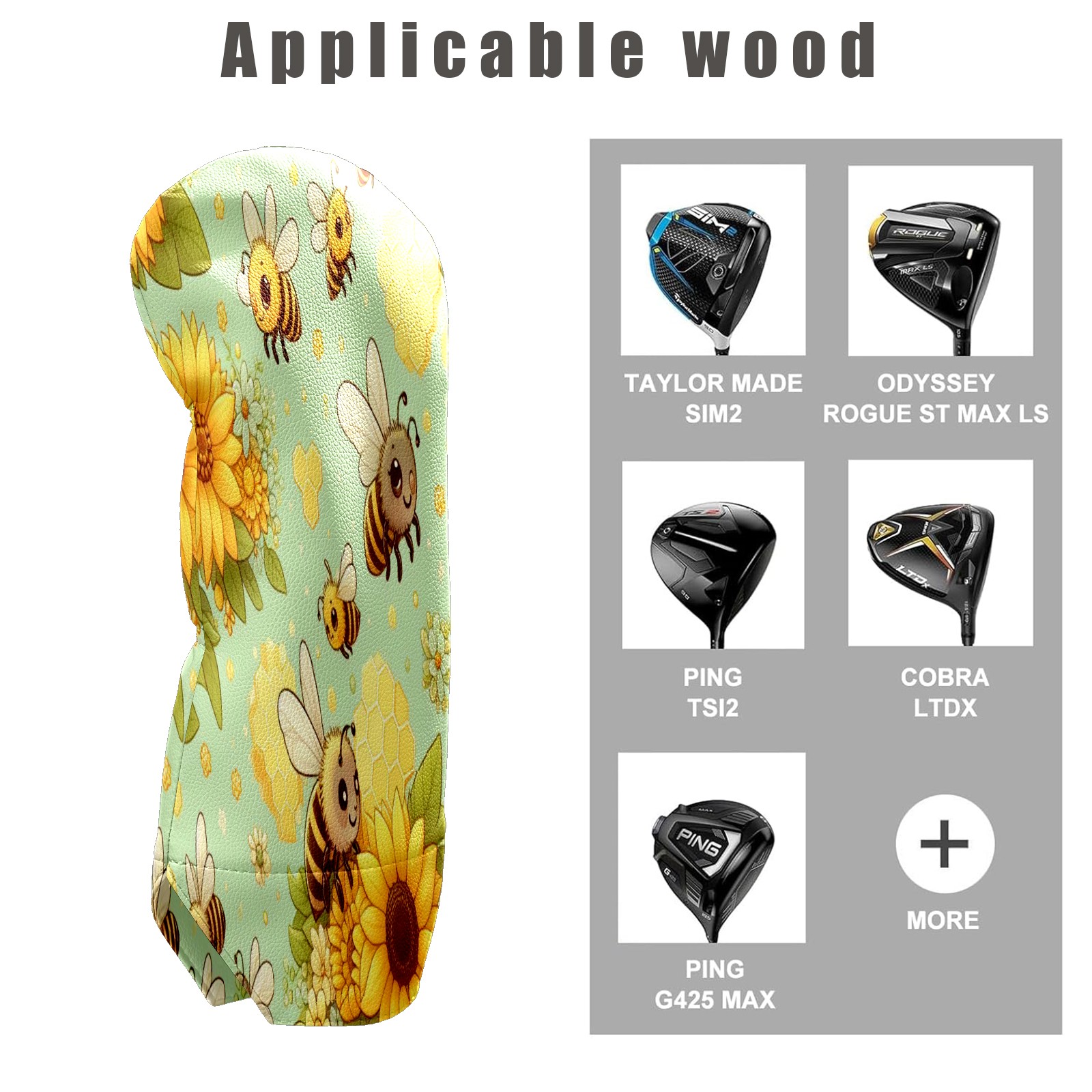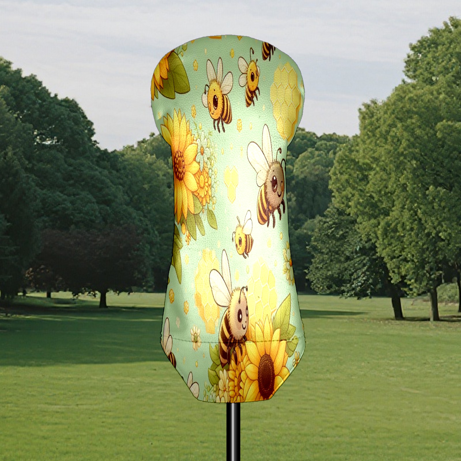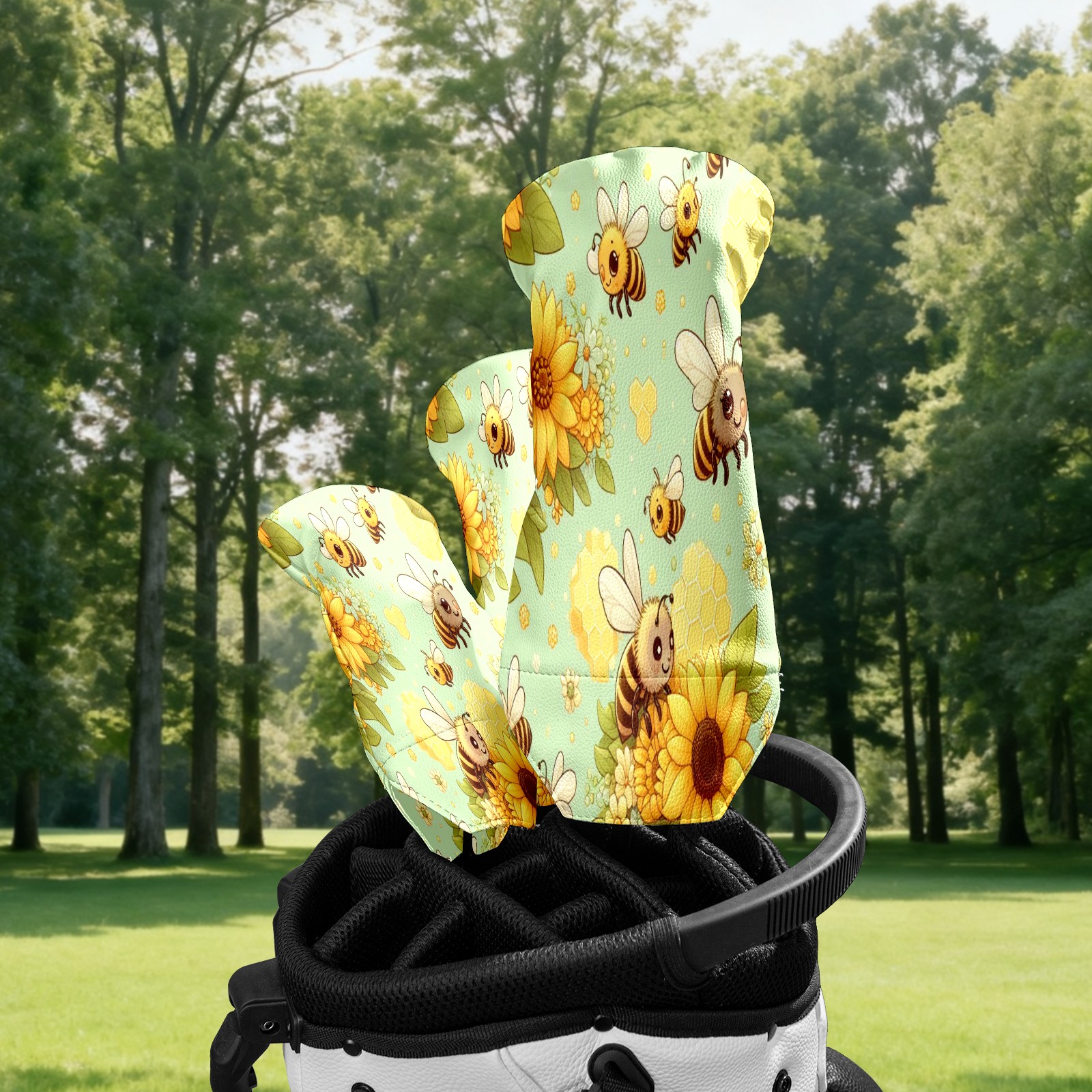 Golf Club Head Cover Waterproof Leather for Driver & Fairway Wood, Driver Headcovers, Golf Accessories for Men Women, Anti-Scratch, Golf Gift for Golfers, 1/3/5 Wood Cover LightGreen Sunflower Bee