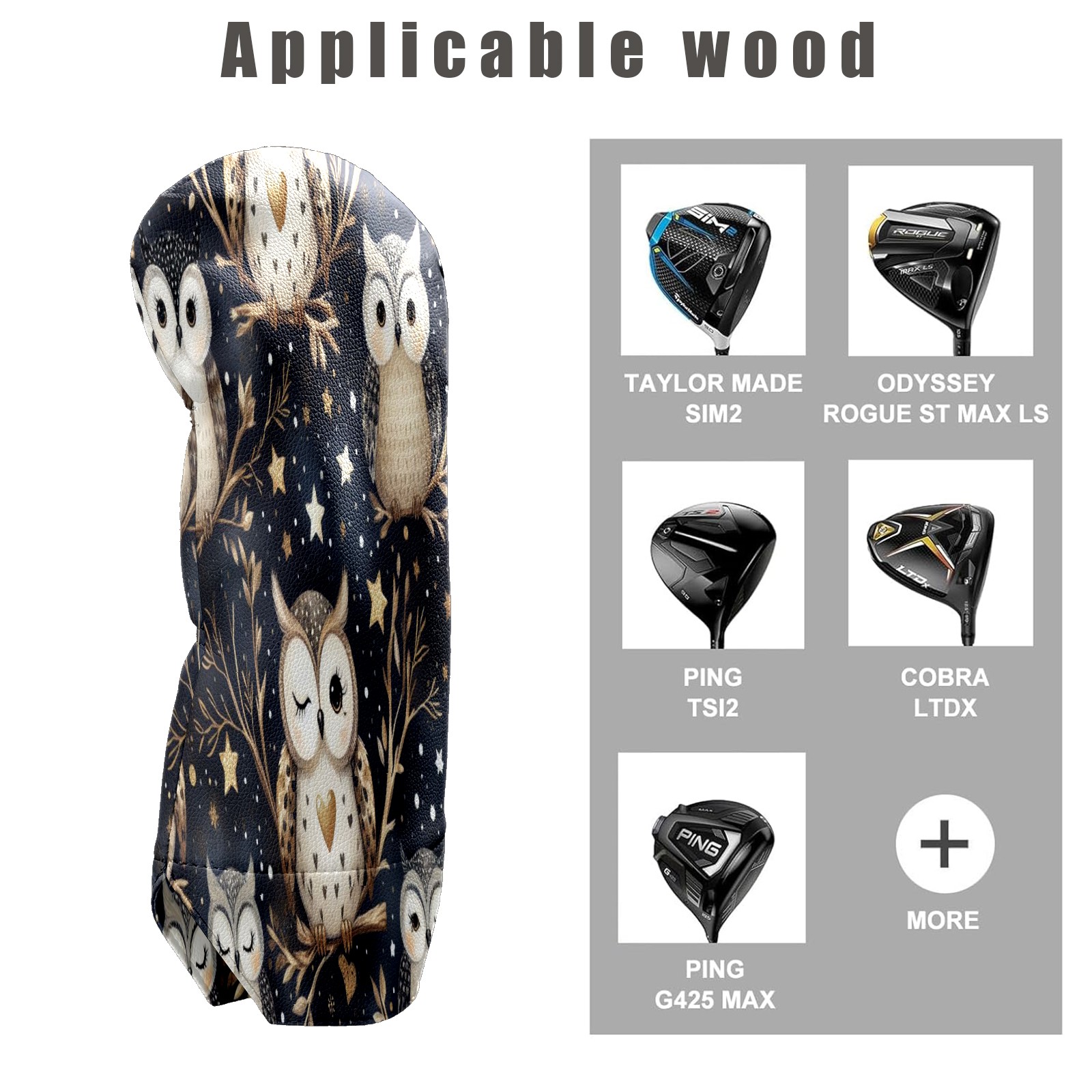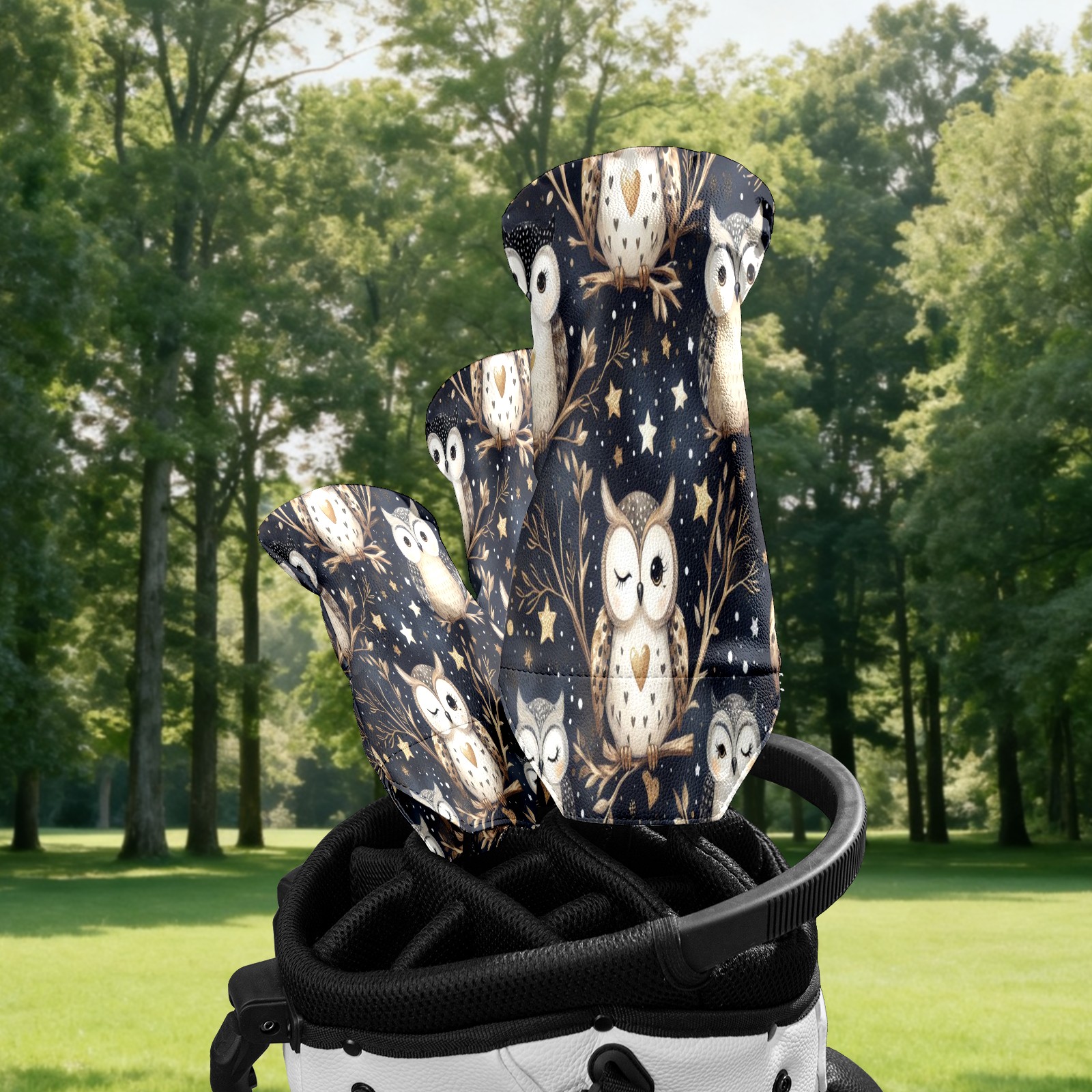 Golf Club Head Cover Waterproof Leather for Driver & Fairway Wood, Driver Headcovers, Golf Accessories for Men Women, Anti-Scratch, Golf Gift for Golfers, 1/3/5 Wood Cover Night Black Owl
