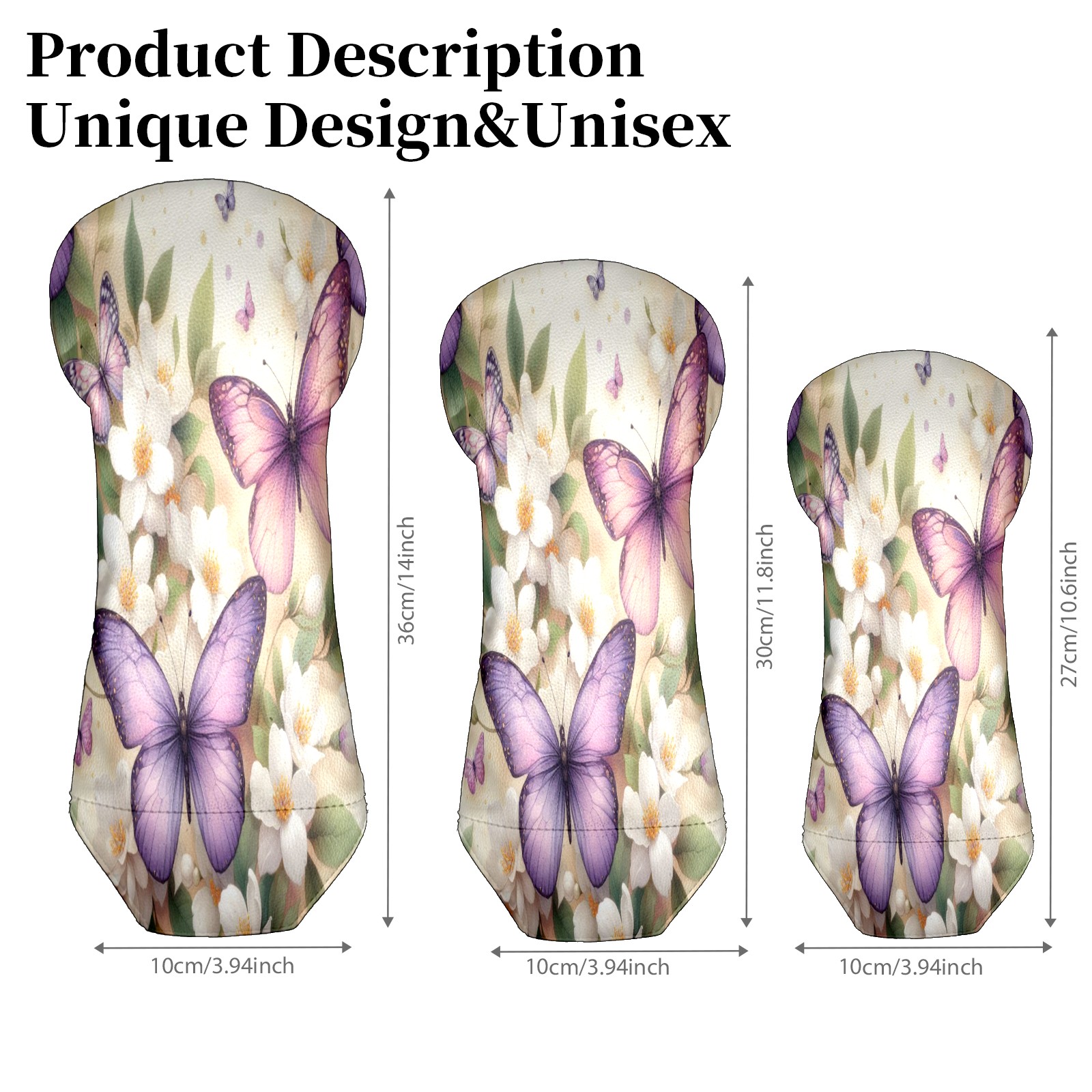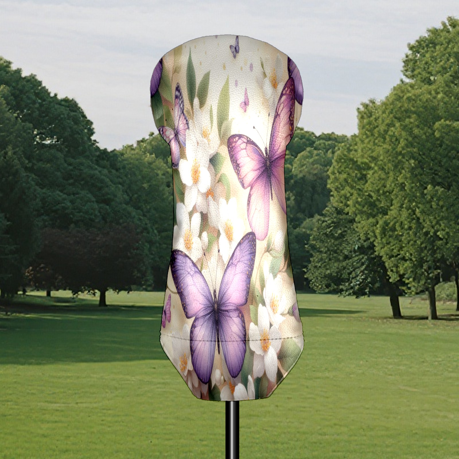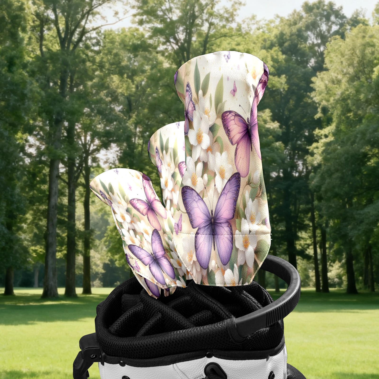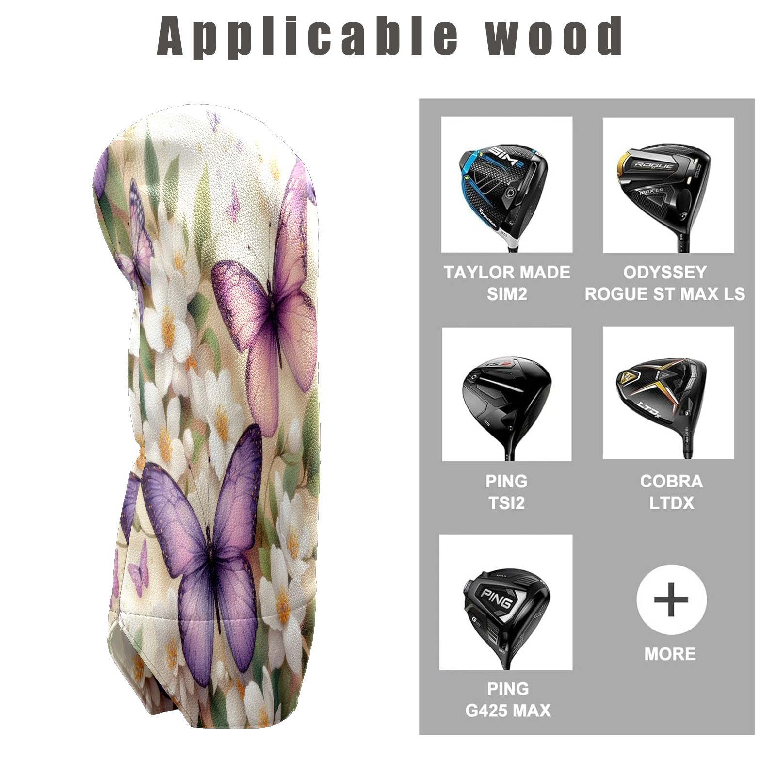 Golf Club Head Cover Waterproof Leather for Driver & Fairway Wood, Driver Headcovers, Golf Accessories for Men Women, Anti-Scratch, Golf Gift for Golfers, 1/3/5 Wood Cover Purple Butterfly Flower