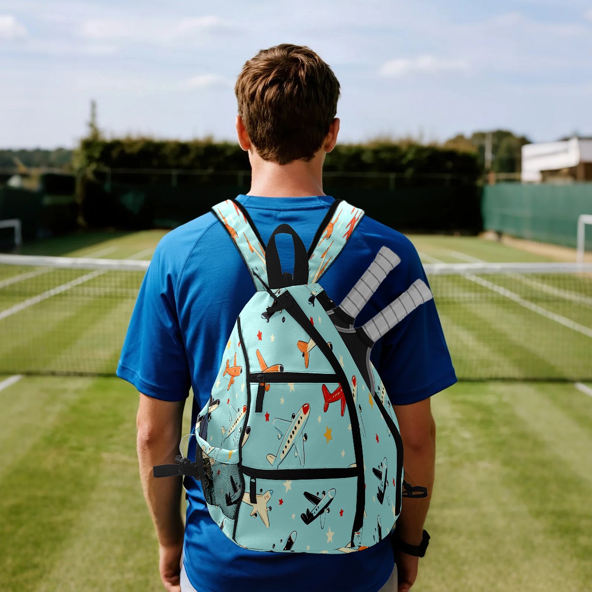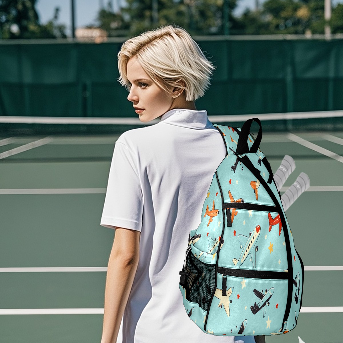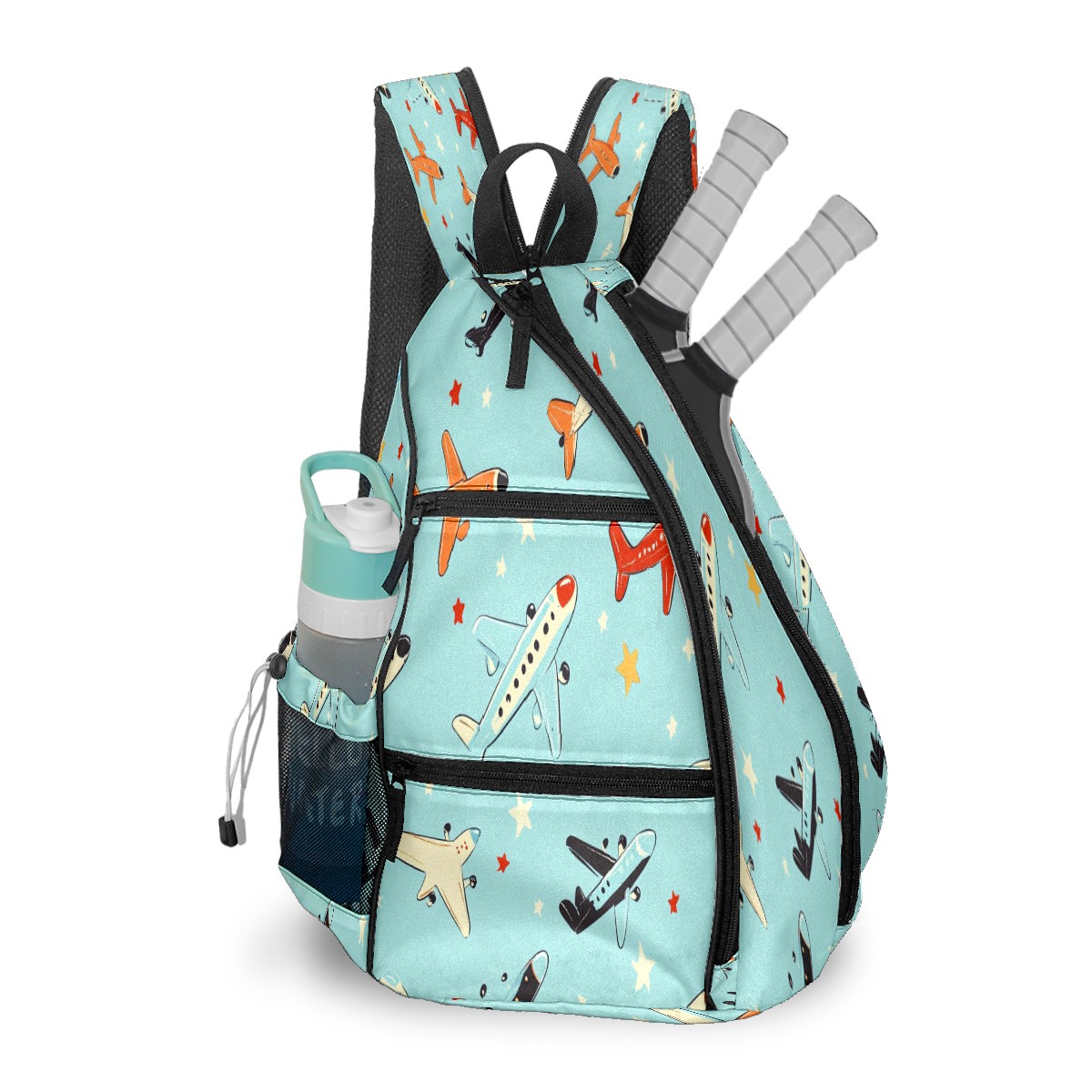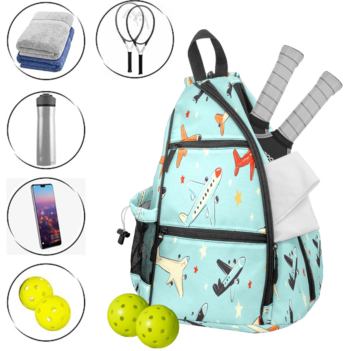 Pickleball Shoulder Bag for Men and Women - Fence Hook - Crossbody Backpack with Water Bottle Holder Various Aircraft