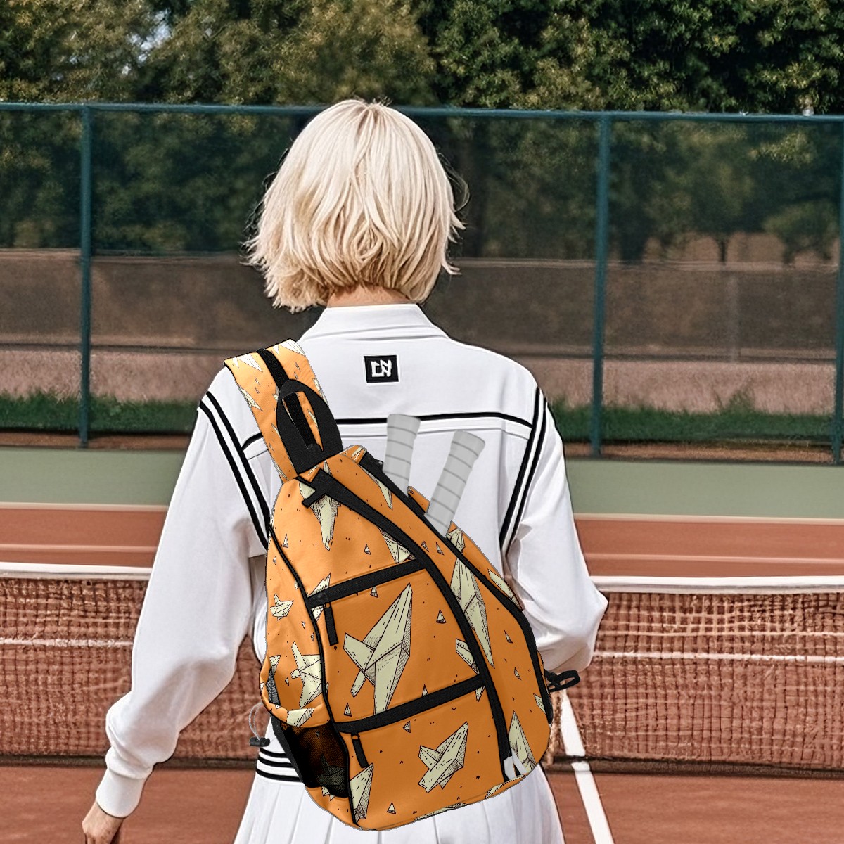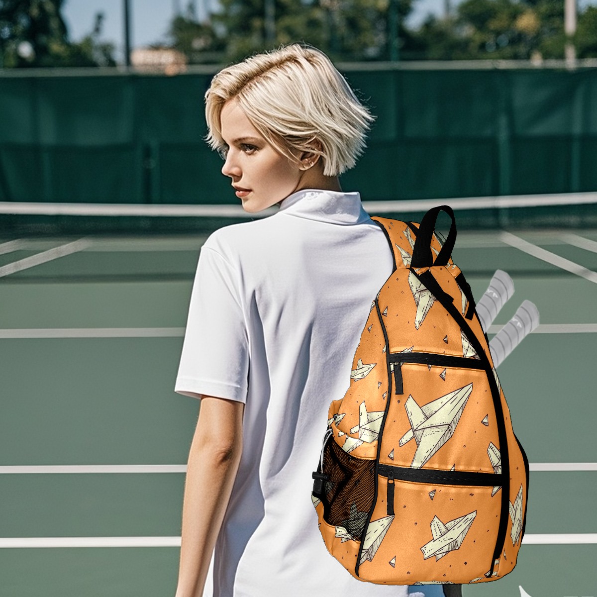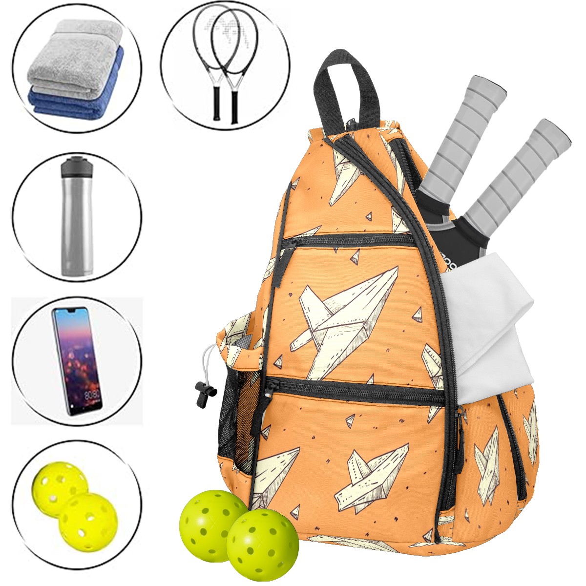 Pickleball Shoulder Bag for Men and Women - Fence Hook - Crossbody Backpack with Water Bottle Holder White Paper Airplane
