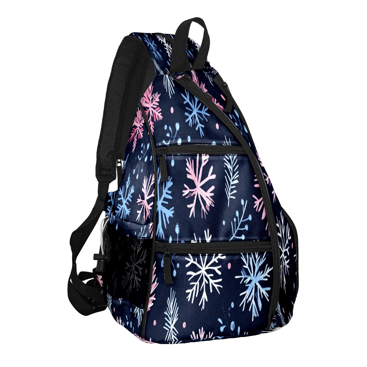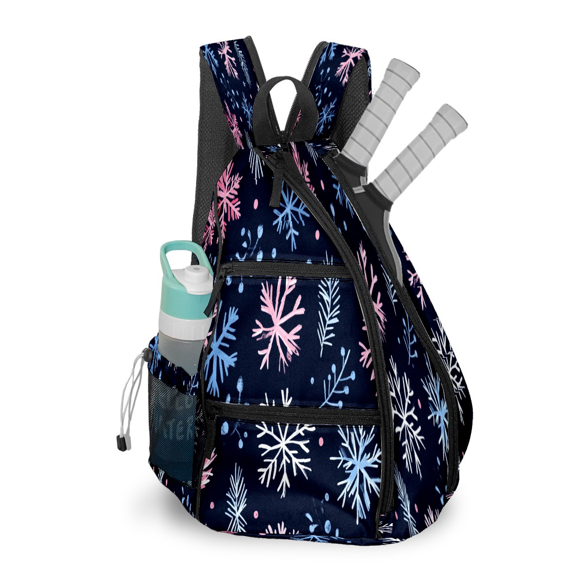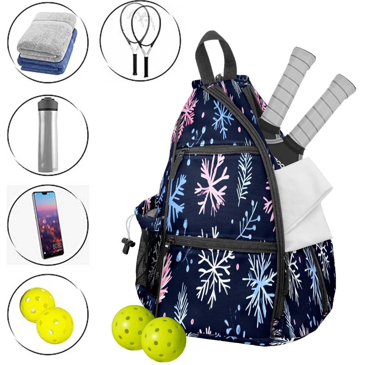 Pickleball Shoulder Bag for Men and Women - Fence Hook - Crossbody Backpack with Water Bottle Holder Snowflake Pine Branches