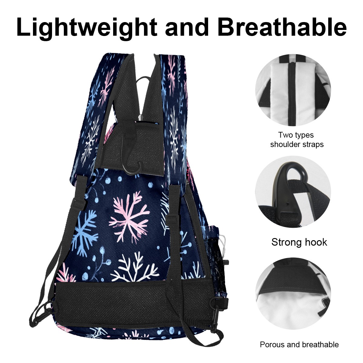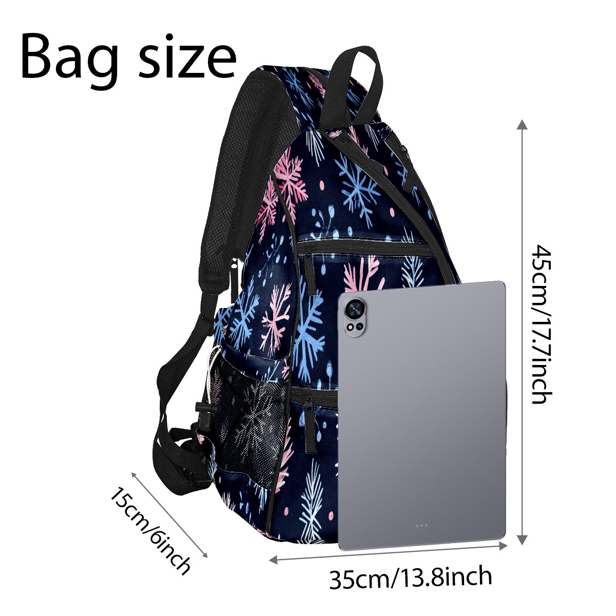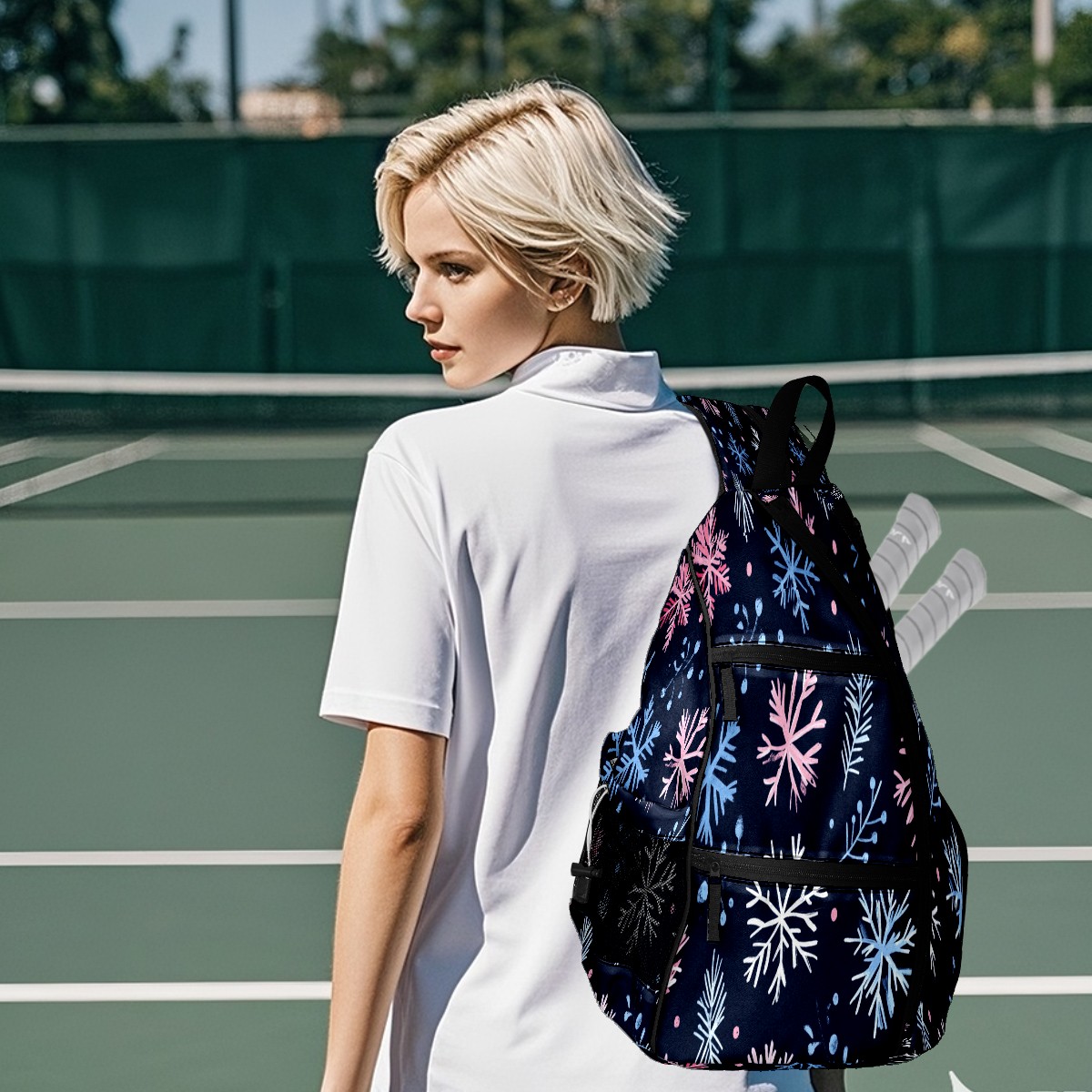 Pickleball Shoulder Bag for Men and Women - Fence Hook - Crossbody Backpack with Water Bottle Holder Snowflake Pine Branches