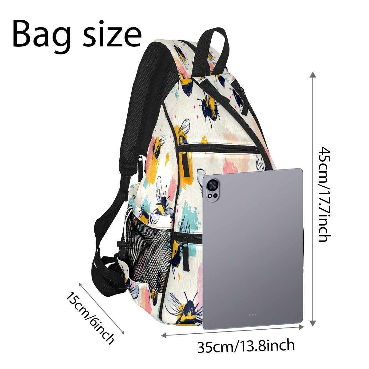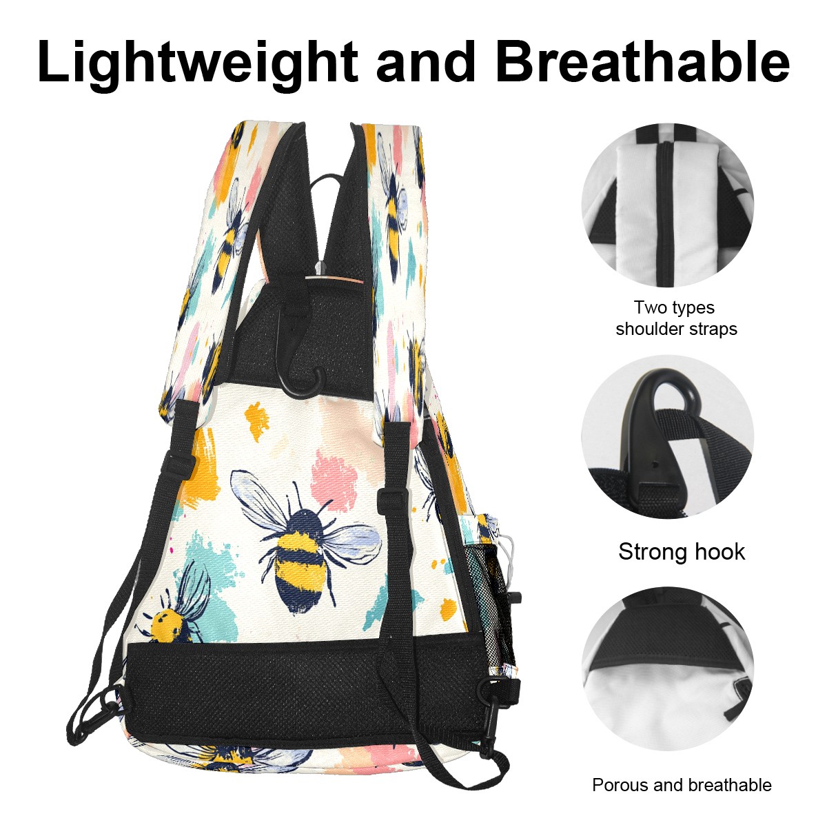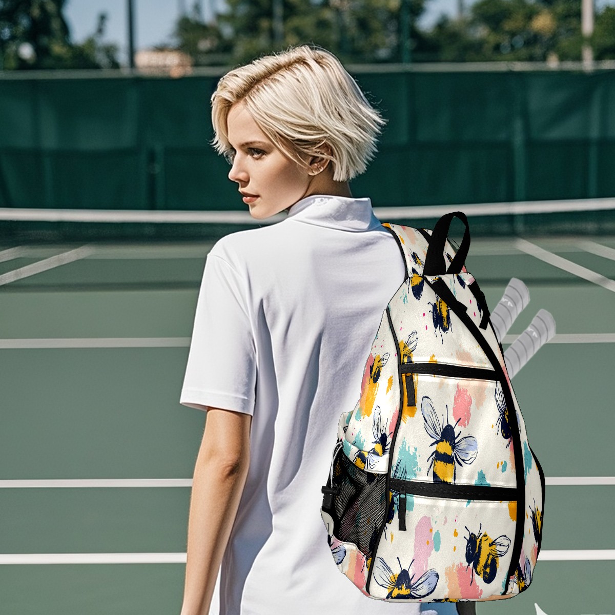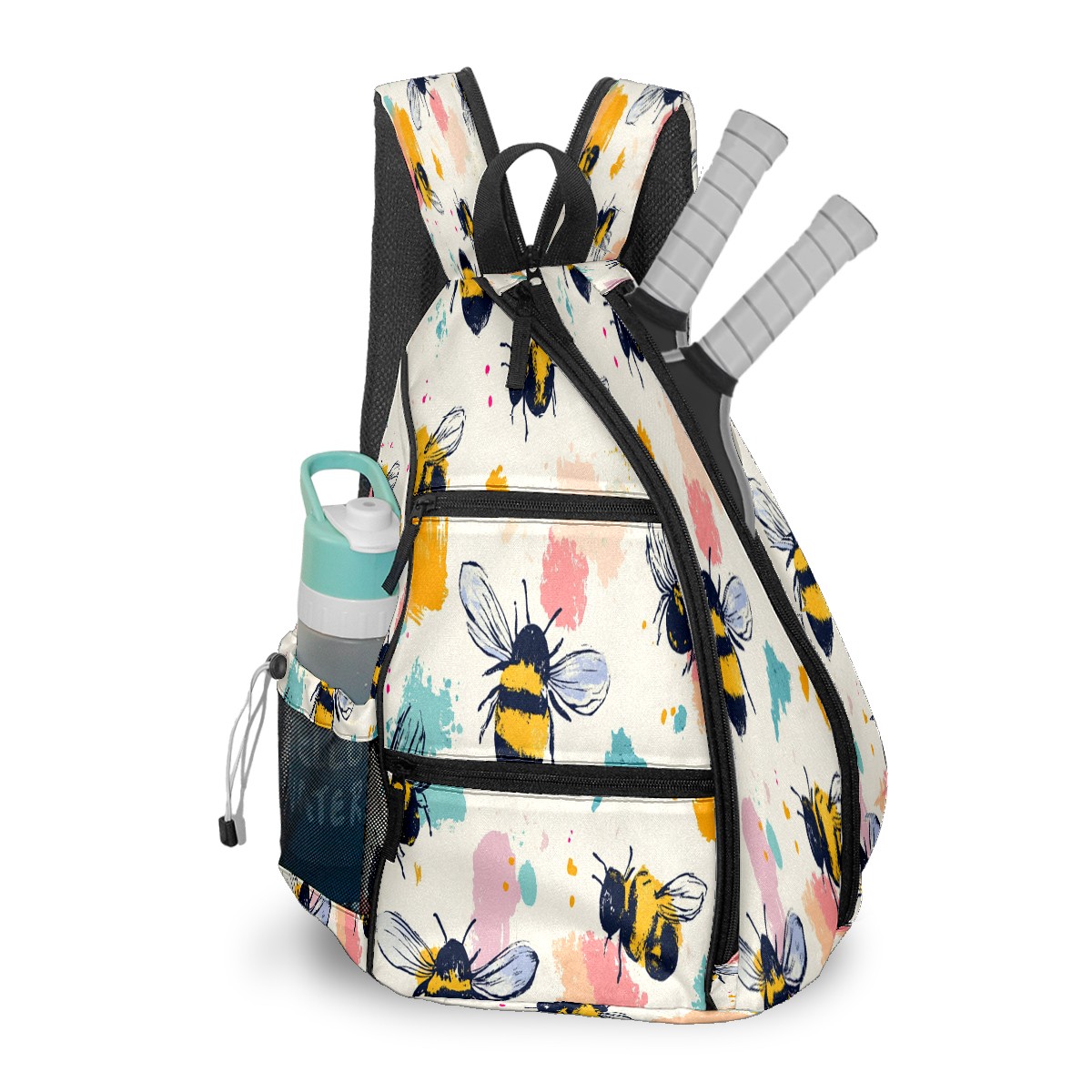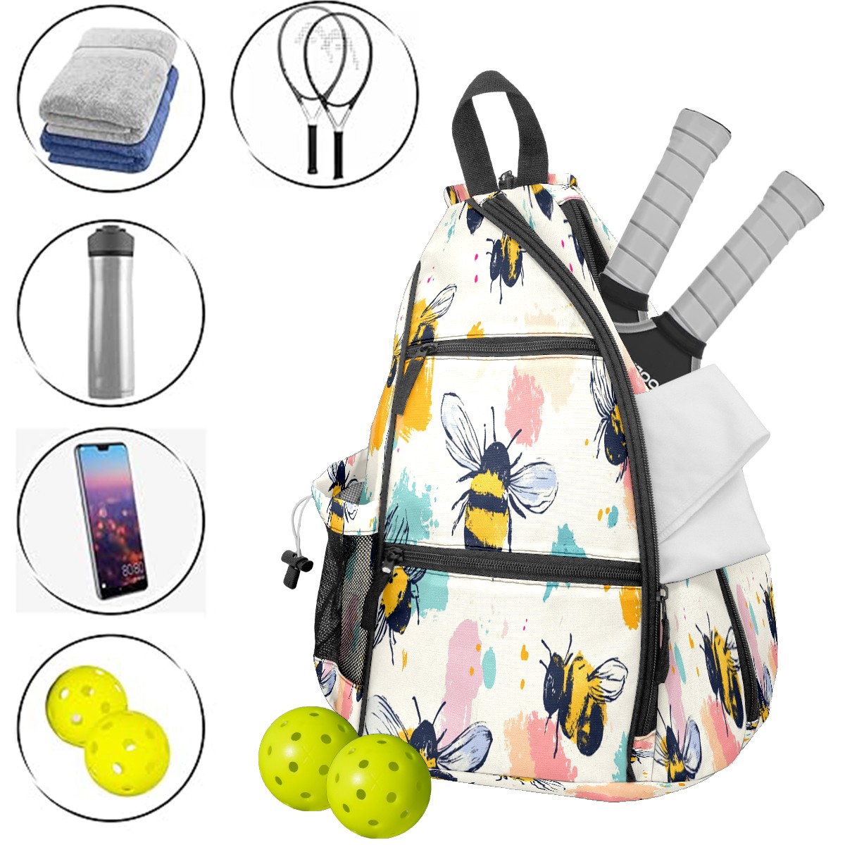 Pickleball Shoulder Bag for Men and Women - Fence Hook - Crossbody Backpack with Water Bottle Holder Cartoon Bee