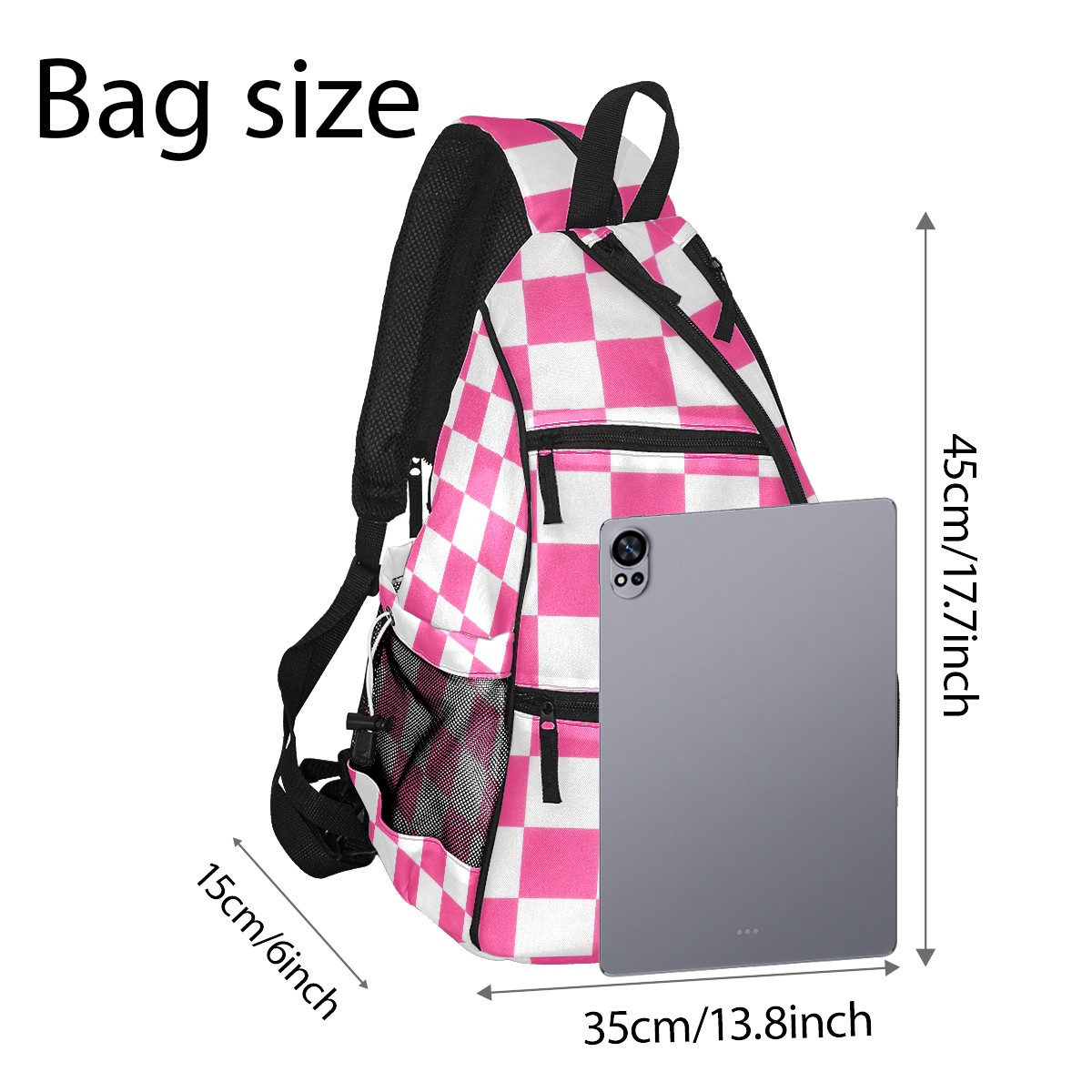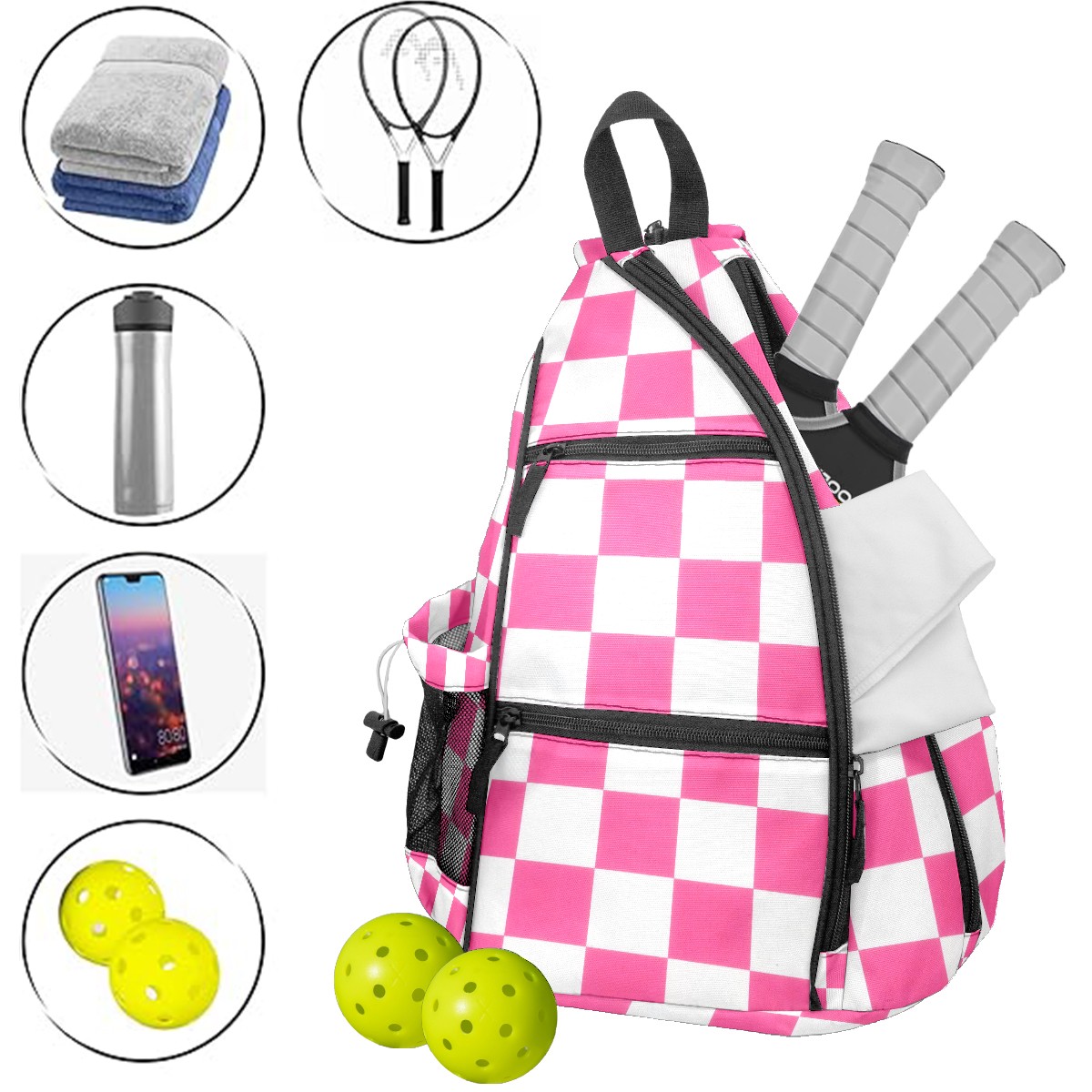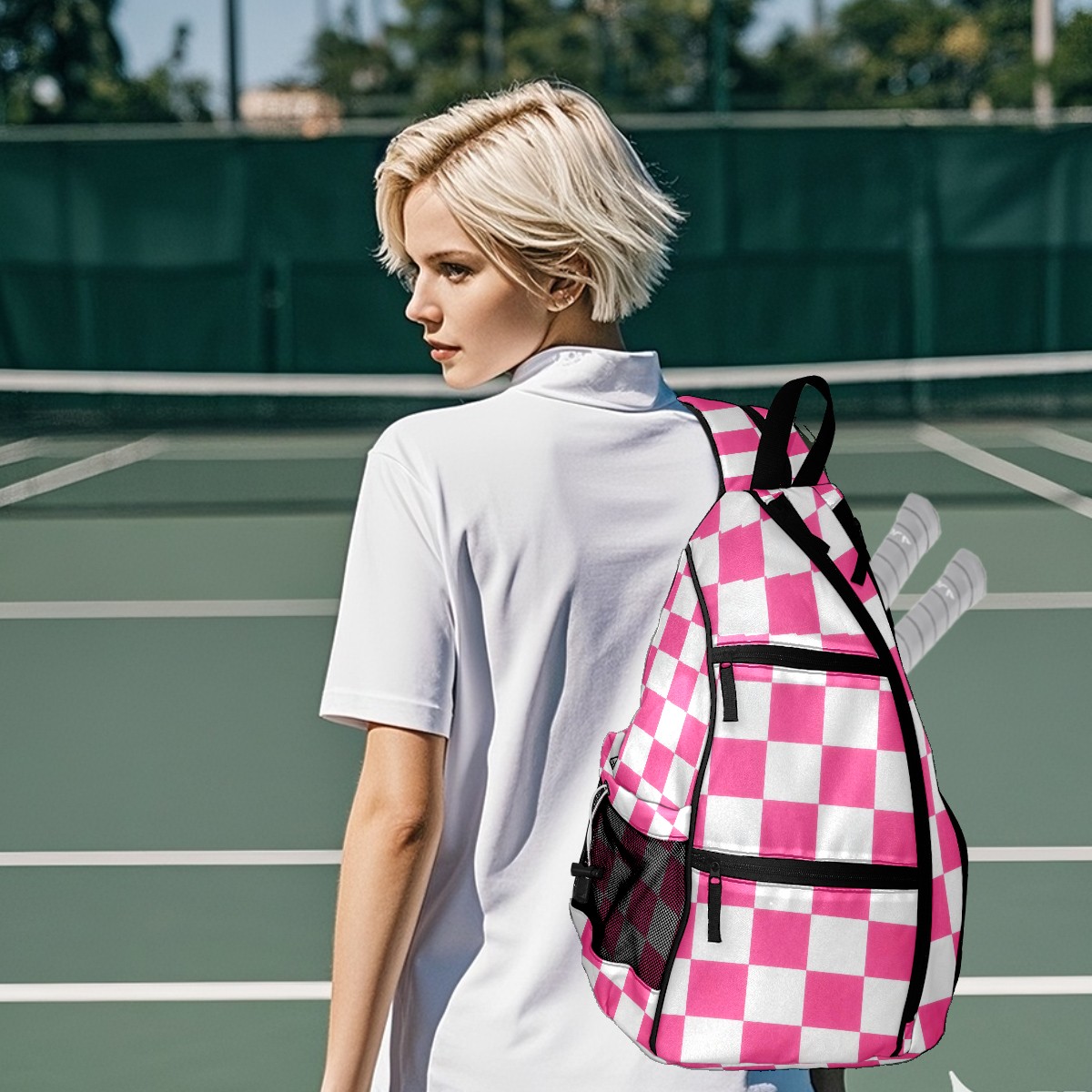 Pickleball Bag Pink Checker (1) Pickle Ball Backpack for Women Men Premium Lightweight Crossbody Sling Bag Sports Backpack for Pickleball Paddle Tennis