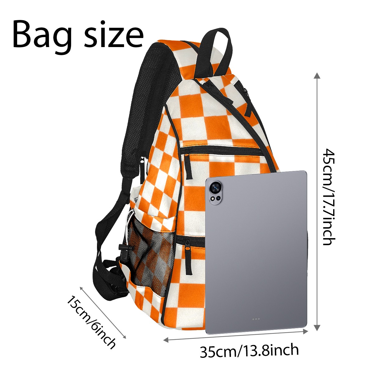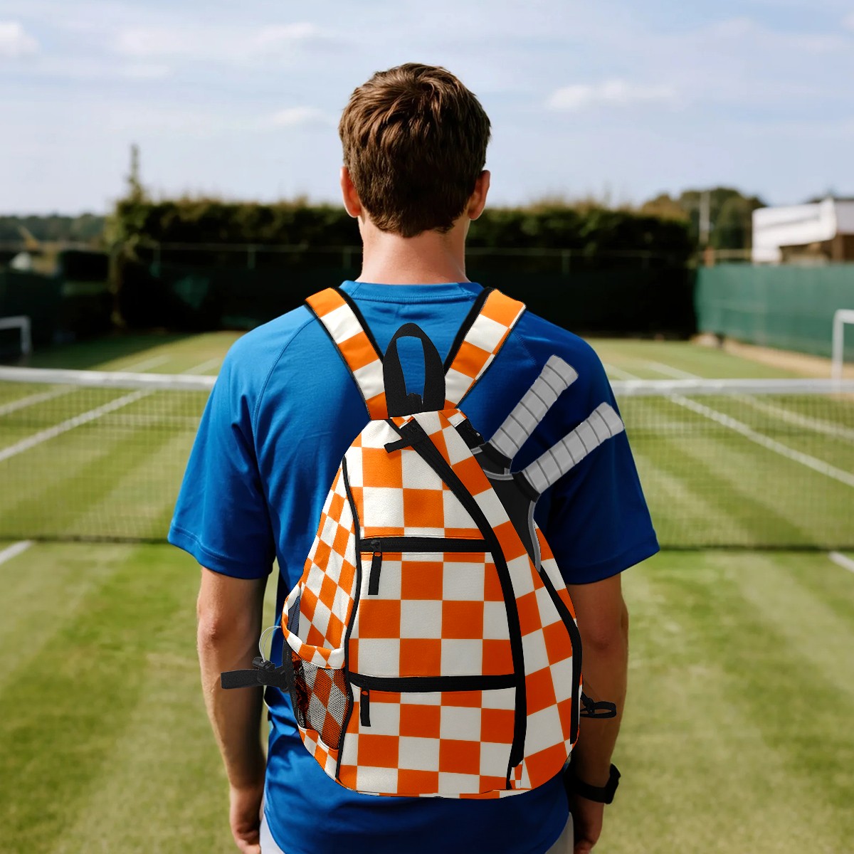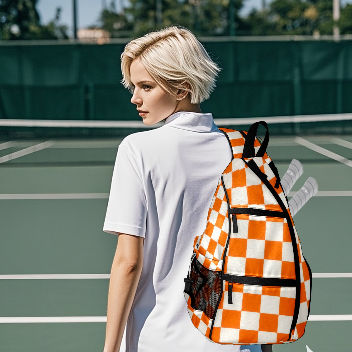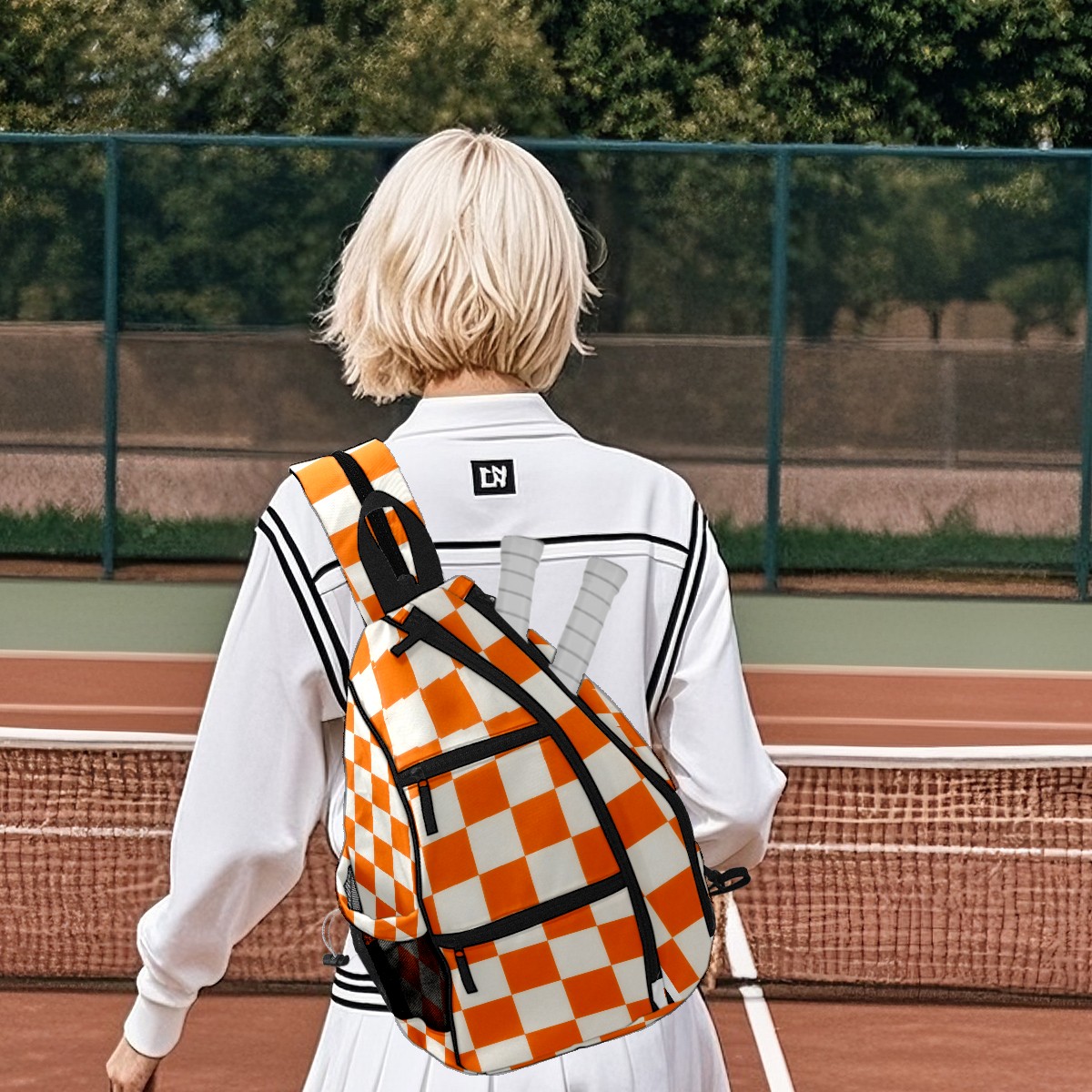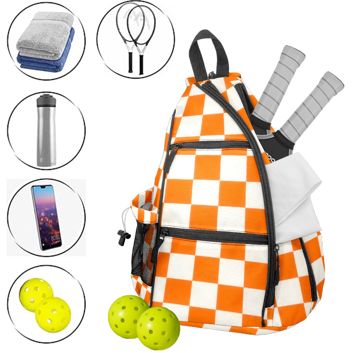 Pickleball Bag Orange Checkered (1) Pickle Ball Backpack for Women Men Premium Lightweight Crossbody Sling Bag Sports Backpack for Pickleball Paddle Tennis