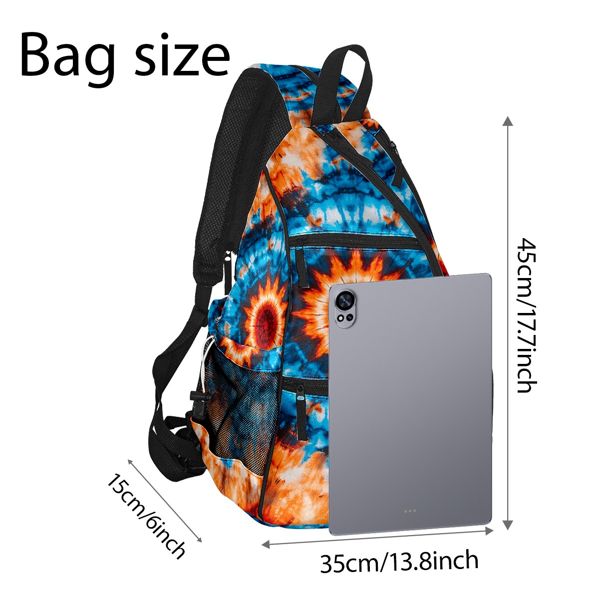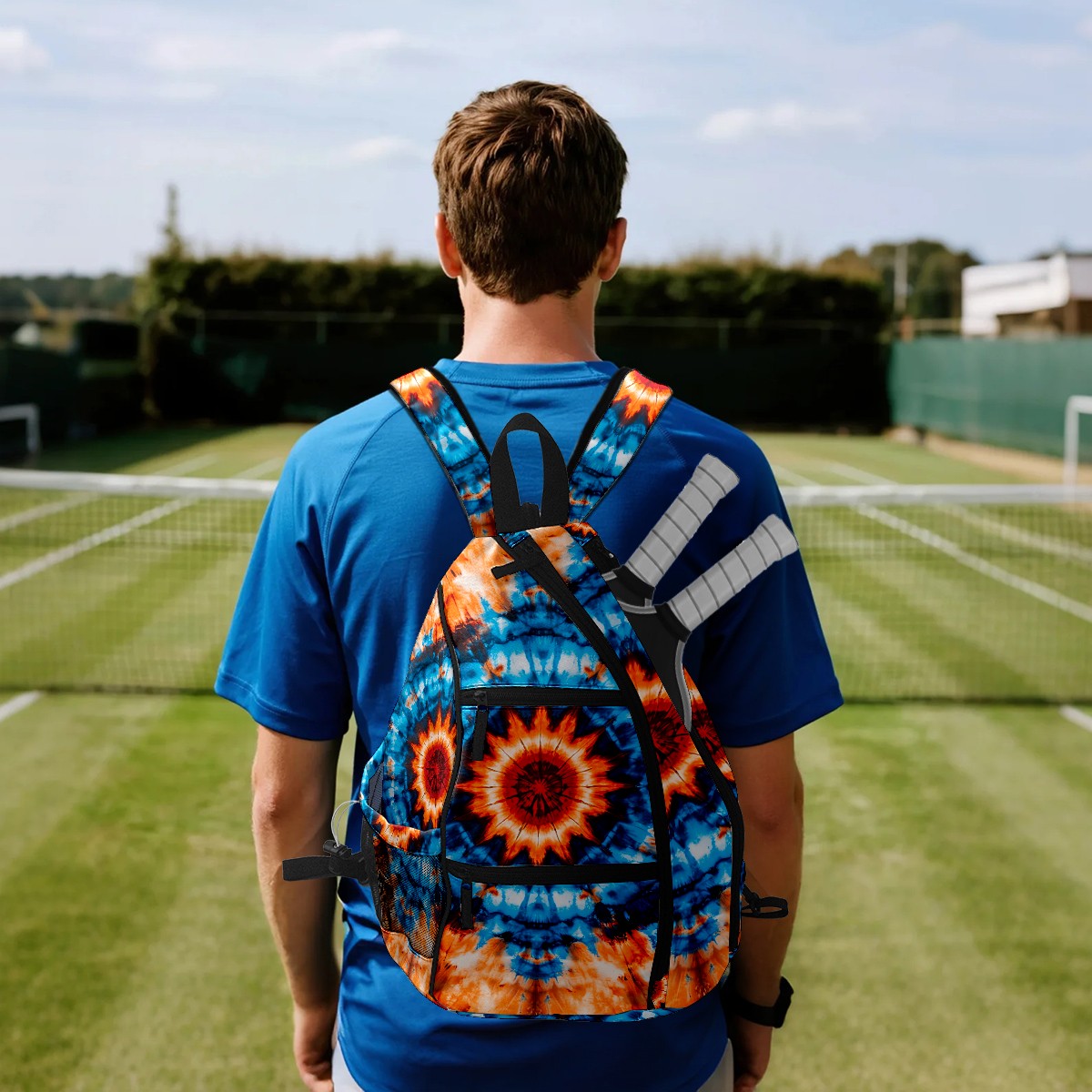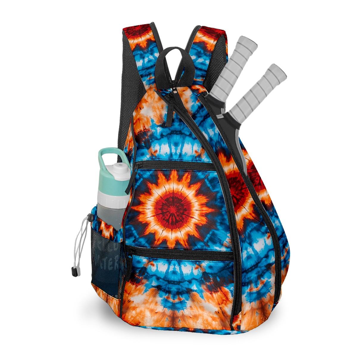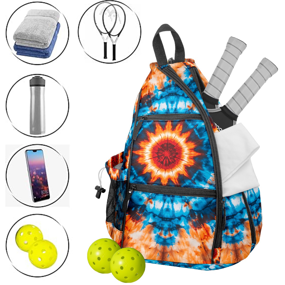 Pickleball Bag Blue Orange Tie Dye (1) Pickle Ball Backpack for Women Men Premium Lightweight Crossbody Sling Bag Sports Backpack for Pickleball Paddle Tennis