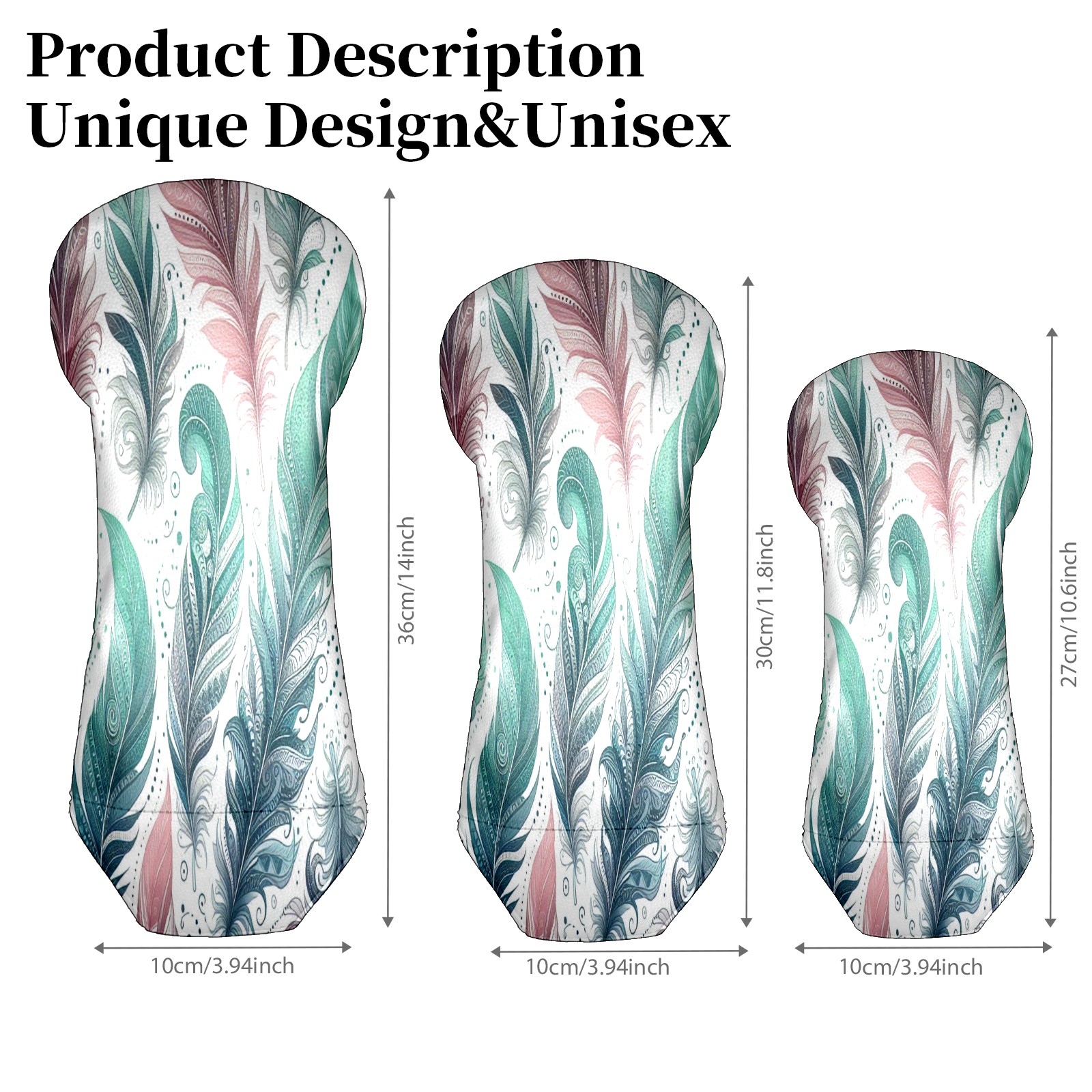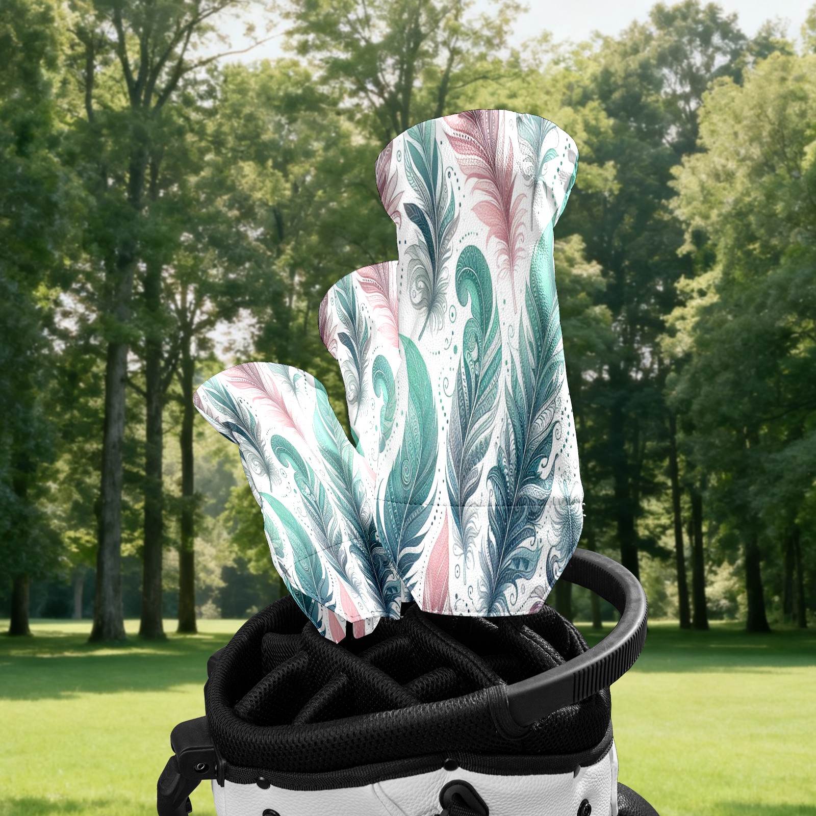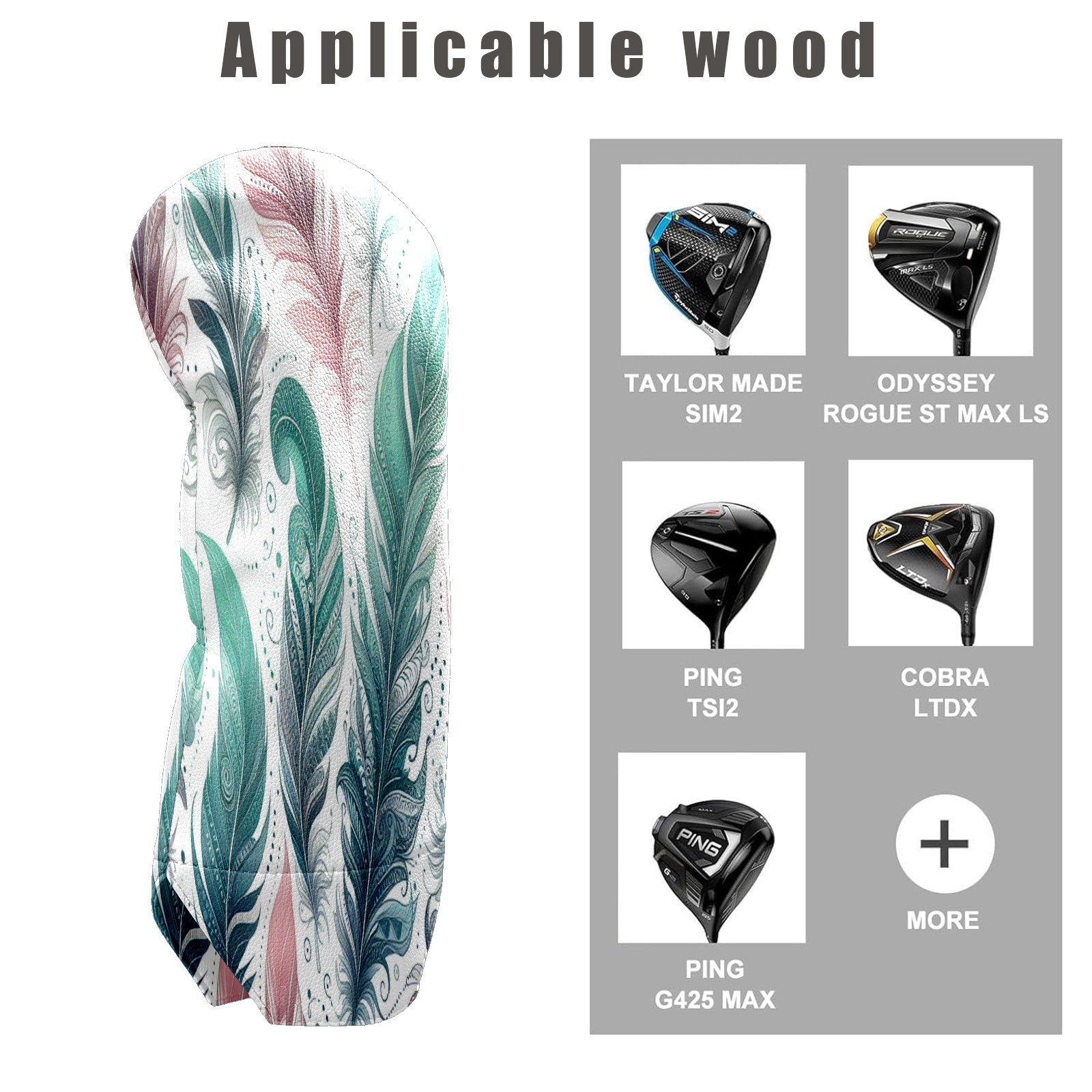 Golf Club Head Cover Waterproof Leather for Driver & Fairway Wood, Driver Headcovers, Golf Accessories for Men Women, Anti-Scratch, Golf Gift for Golfers, 1/3/5 Wood Cover Pink Green Feathers