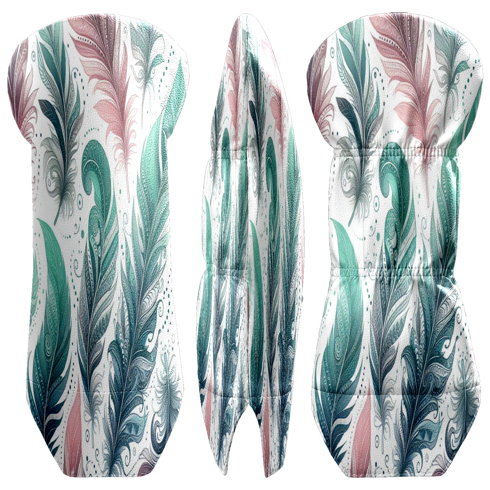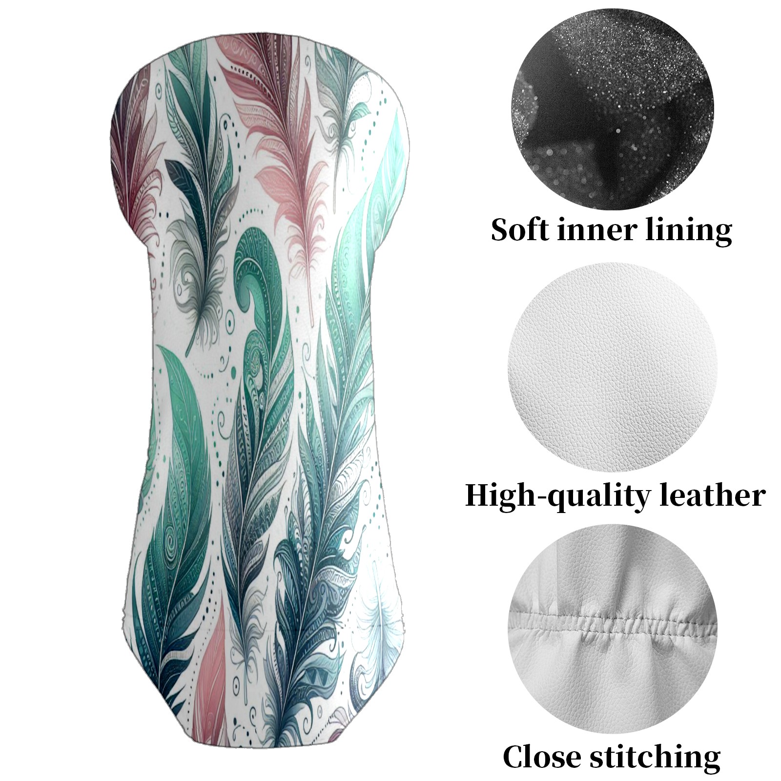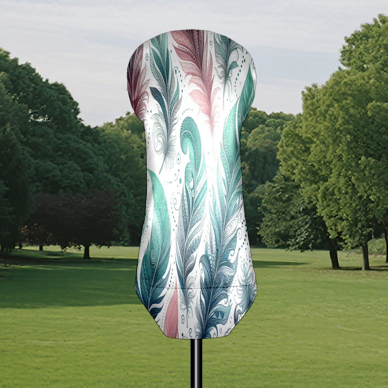 Golf Club Head Cover Waterproof Leather for Driver & Fairway Wood, Driver Headcovers, Golf Accessories for Men Women, Anti-Scratch, Golf Gift for Golfers, 1/3/5 Wood Cover Pink Green Feathers