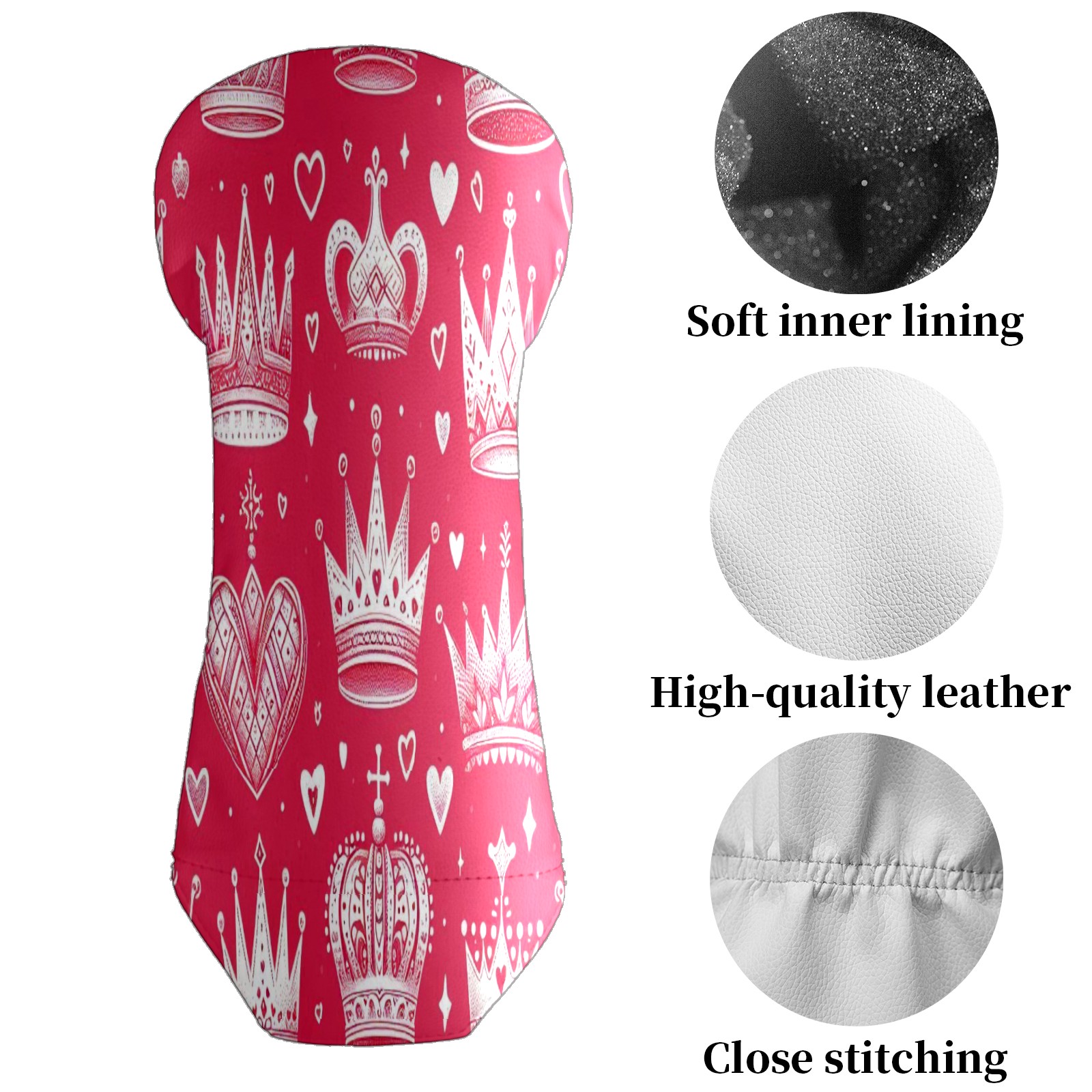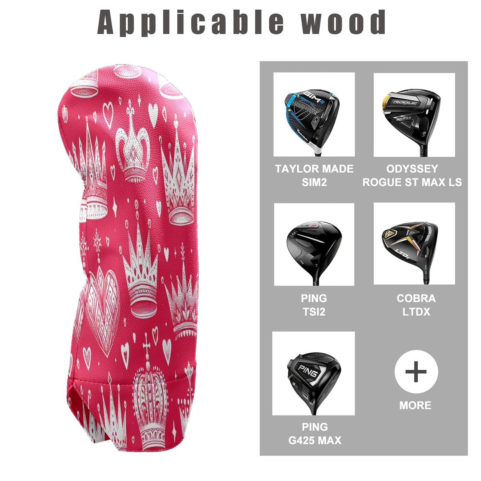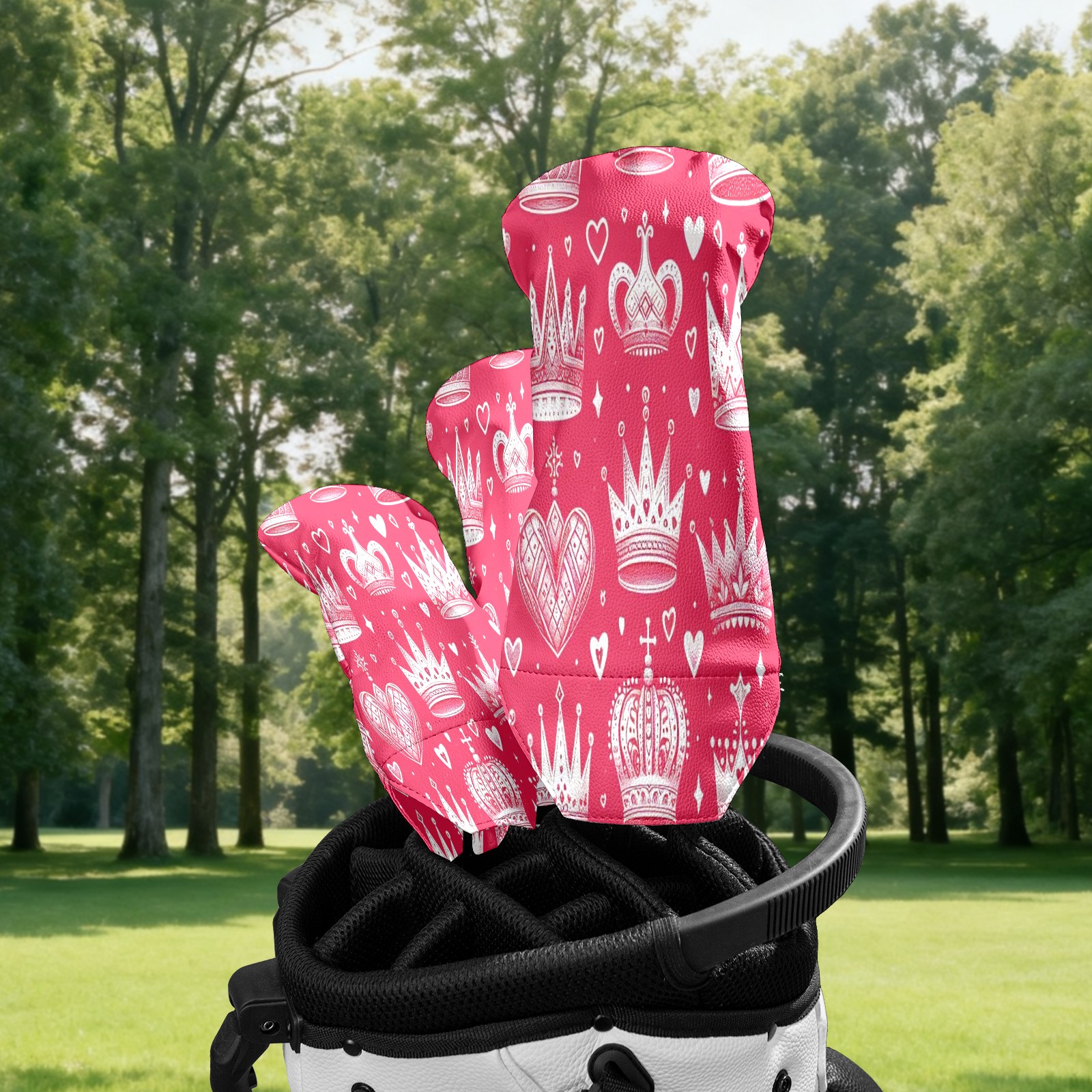 Golf Club Head Cover Waterproof Leather for Driver & Fairway Wood, Driver Headcovers, Golf Accessories for Men Women, Anti-Scratch, Golf Gift for Golfers, 1/3/5 Wood Cover Red Crown Hearts