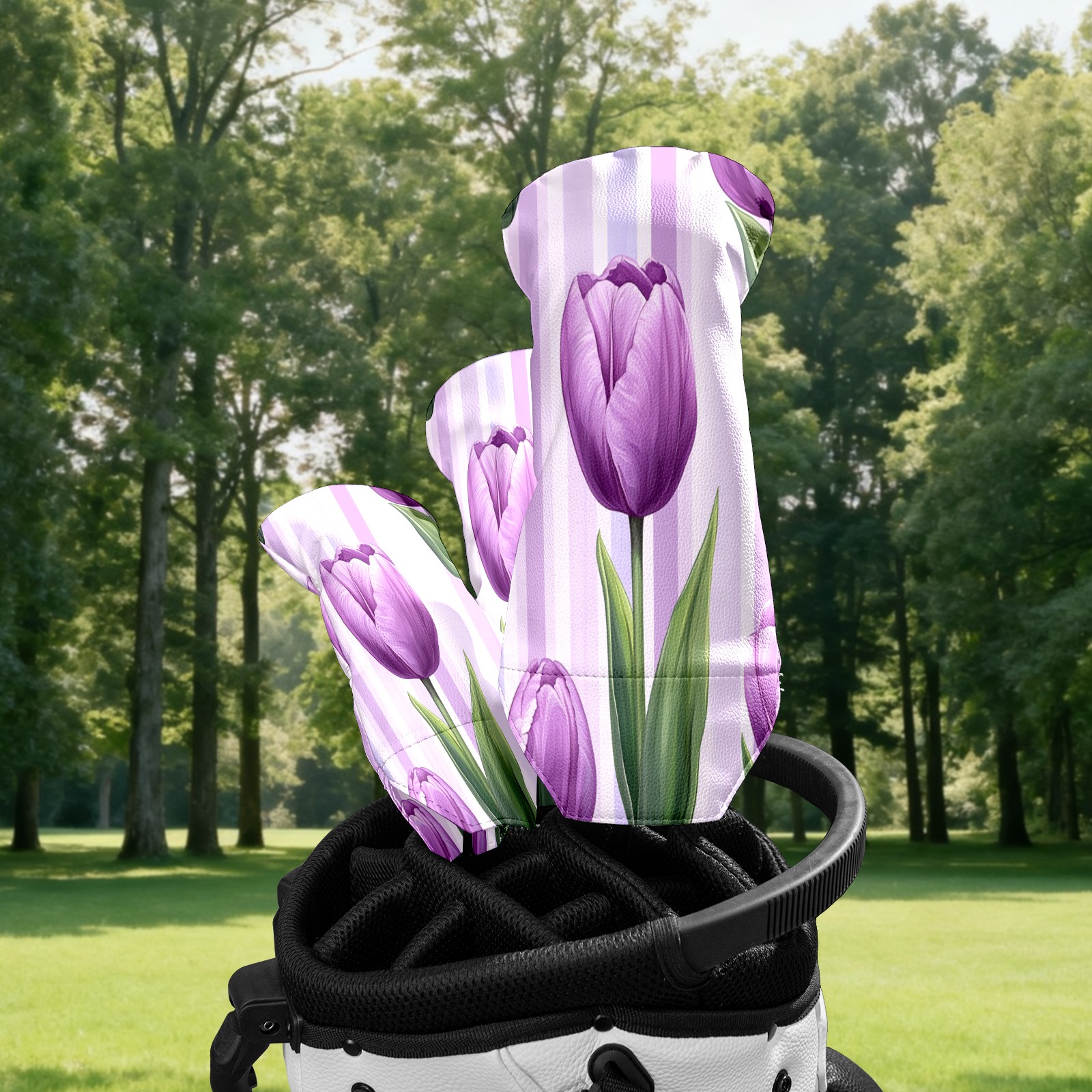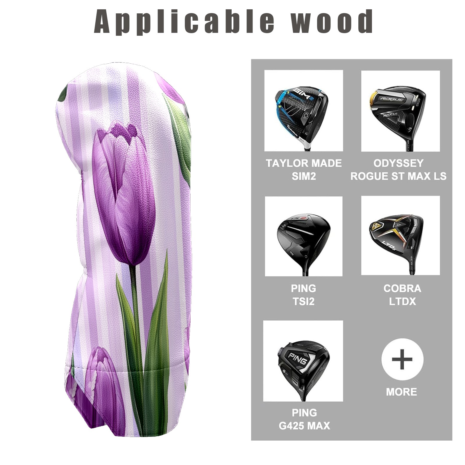 Golf Club Head Cover Waterproof Leather for Driver & Fairway Wood, Driver Headcovers, Golf Accessories for Men Women, Anti-Scratch, Golf Gift for Golfers, 1/3/5 Wood Cover Purple Tulips