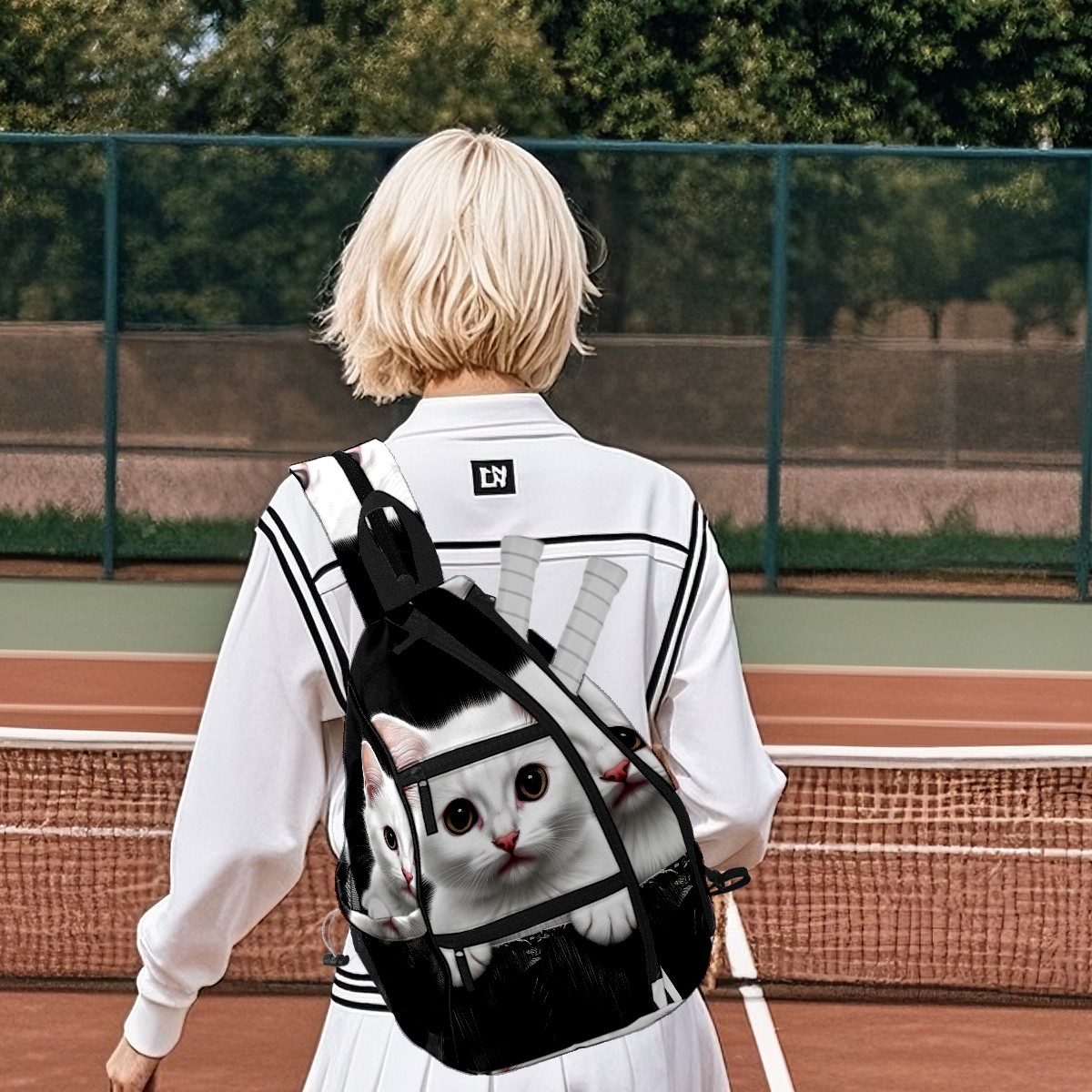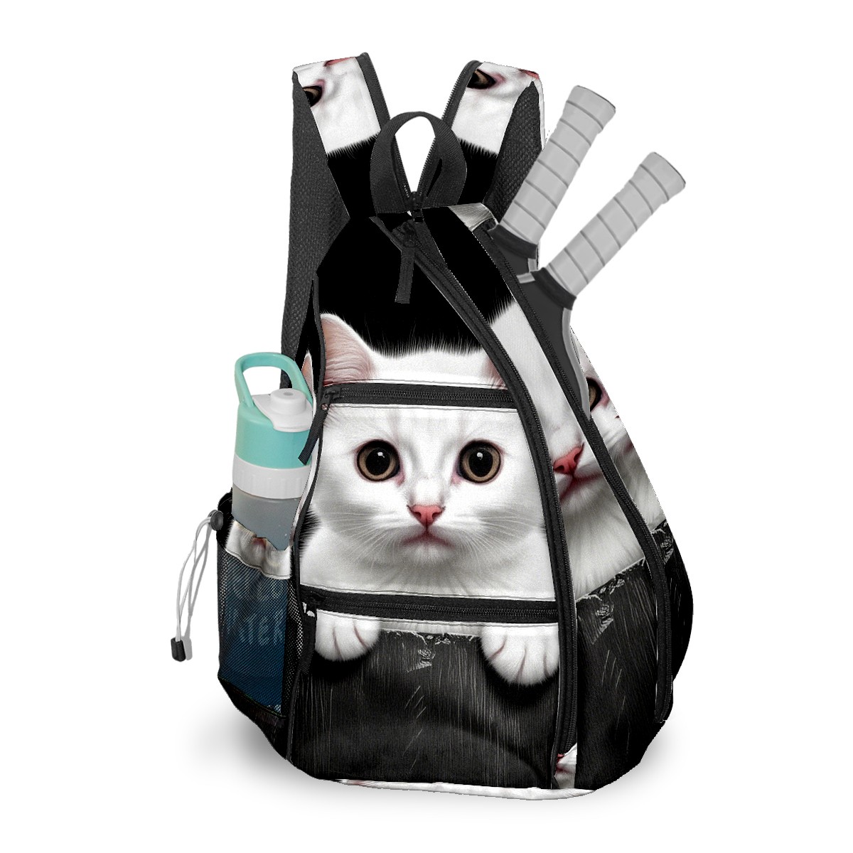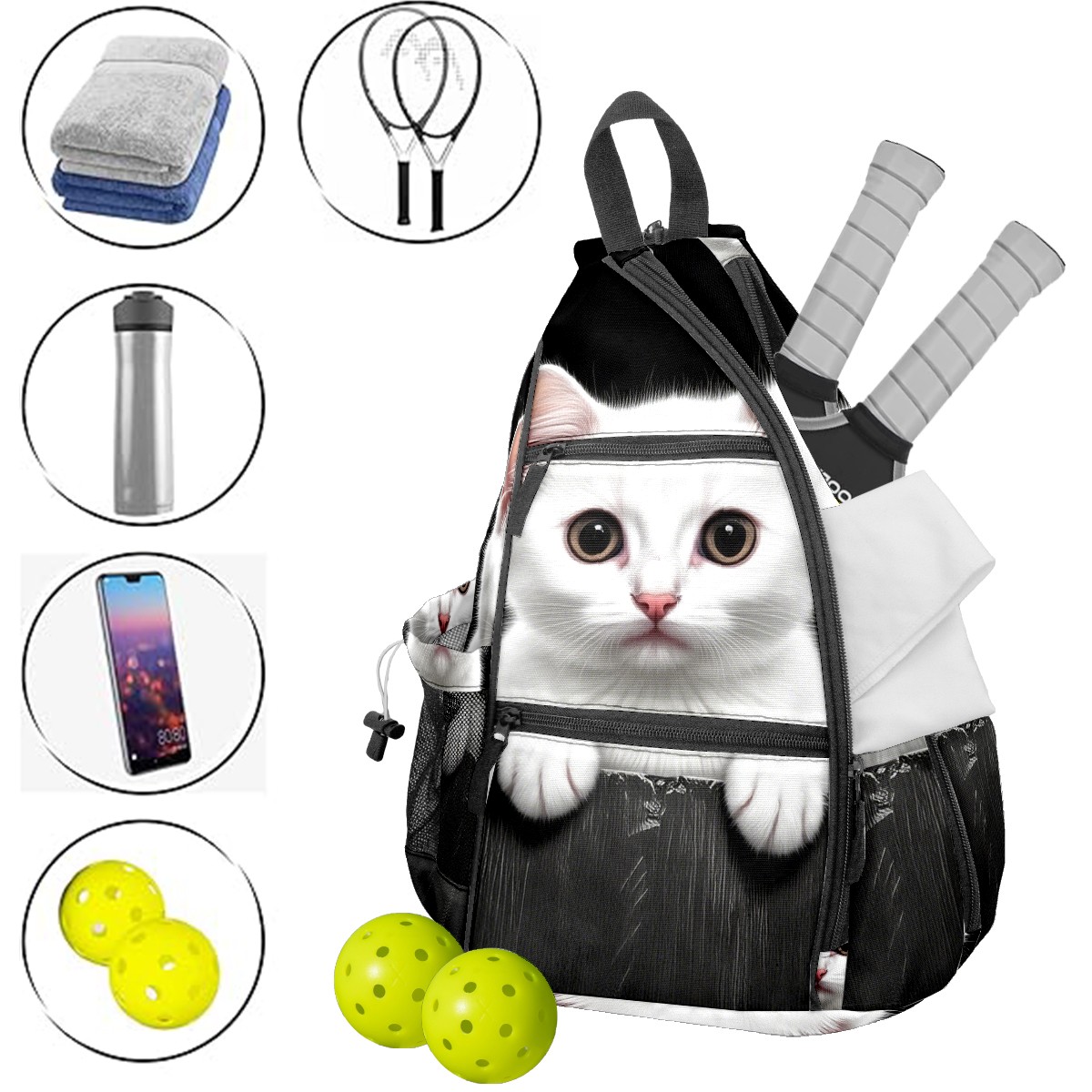 Pickleball Bag White Cat Pickle Ball Backpack for Women Men Premium Lightweight Crossbody Sling Bag Sports Backpack for Pickleball Paddle Tennis