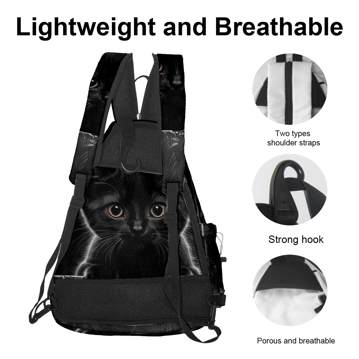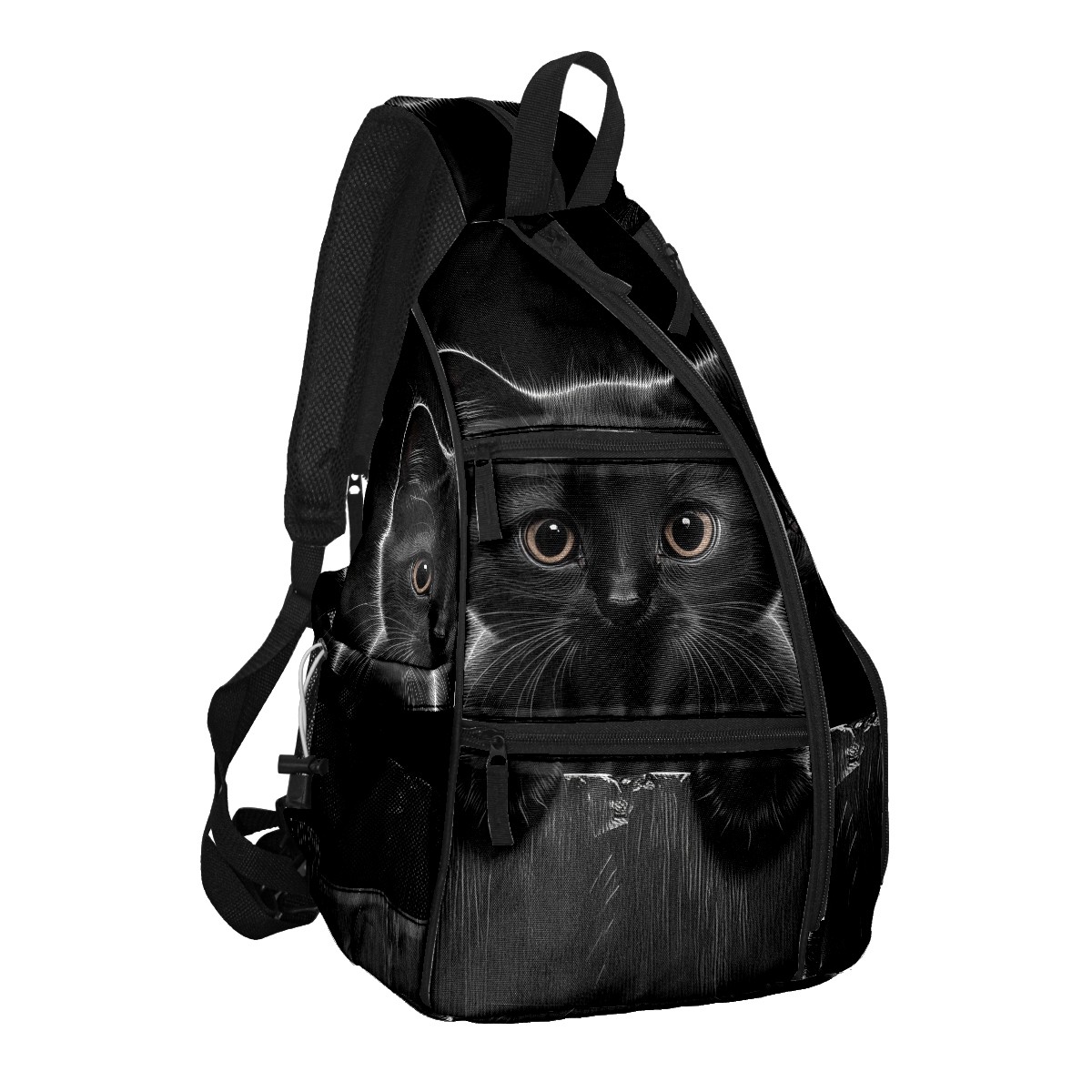 Pickleball Bag Jimeng-2025-07-03-2959-black Cat, Kitten, Large Eyes, Curious E... Pickle Ball Backpack for Women Men Premium Lightweight Crossbody Sling Bag Sports Backpack for Pickleball Paddle Tennis