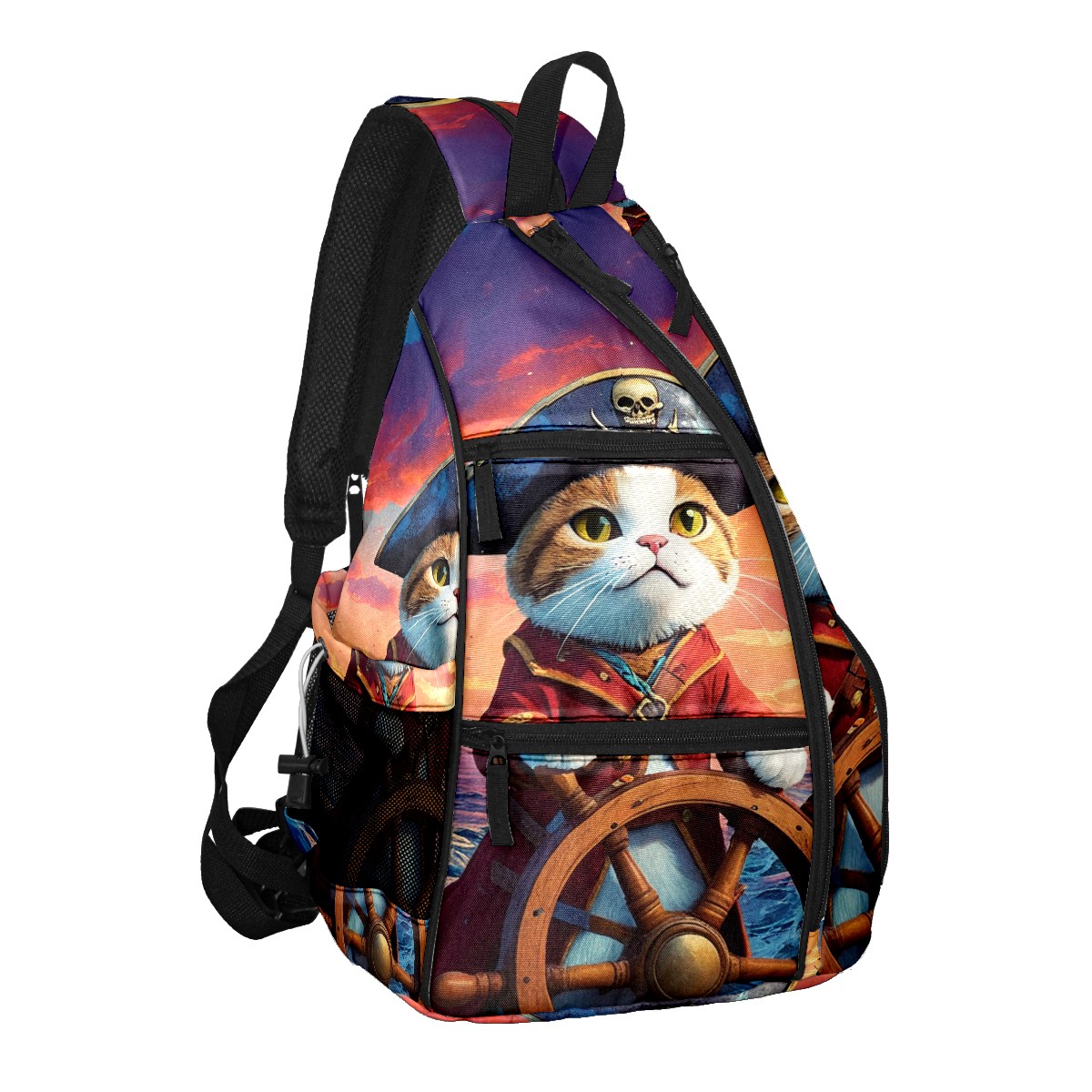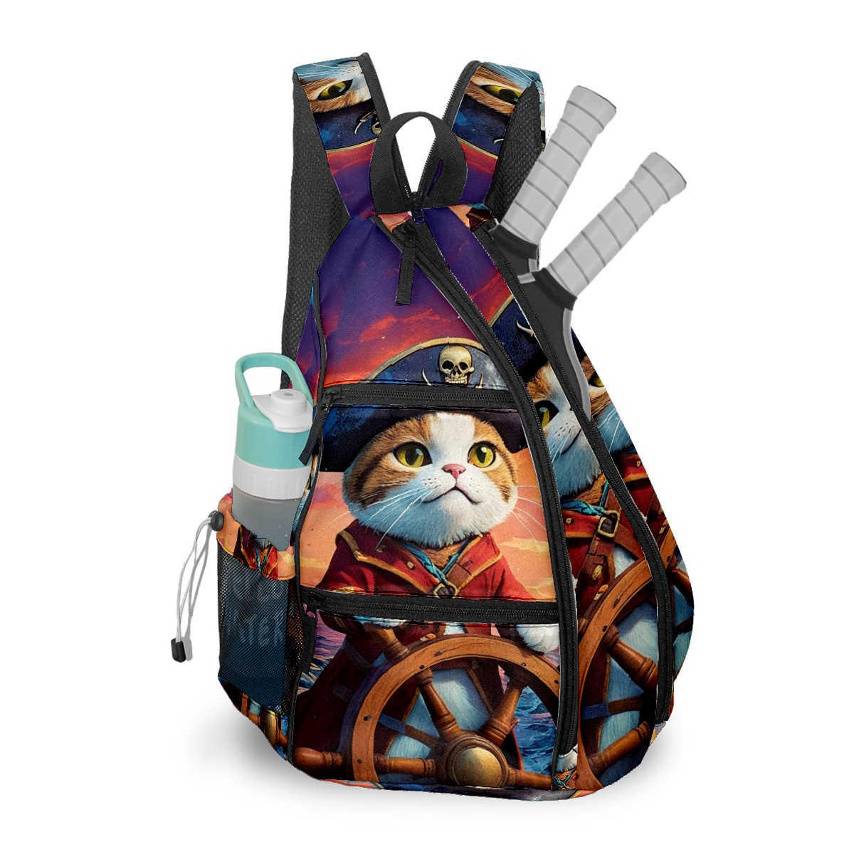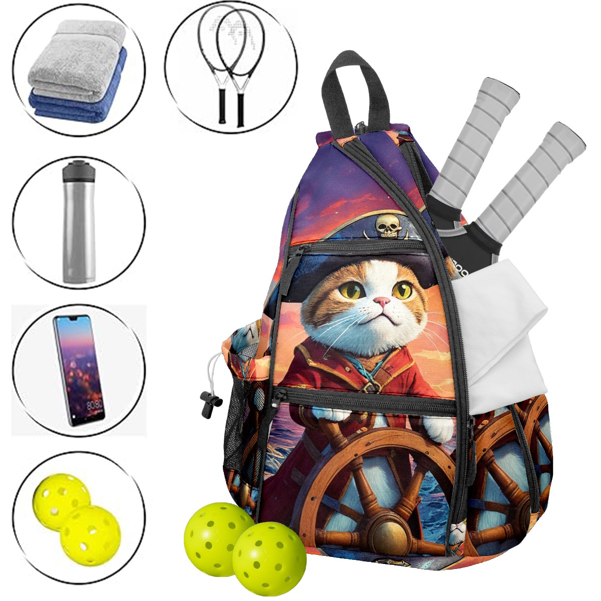 Pickleball Bag Pirate Cat Pickle Ball Backpack for Women Men Premium Lightweight Crossbody Sling Bag Sports Backpack for Pickleball Paddle Tennis