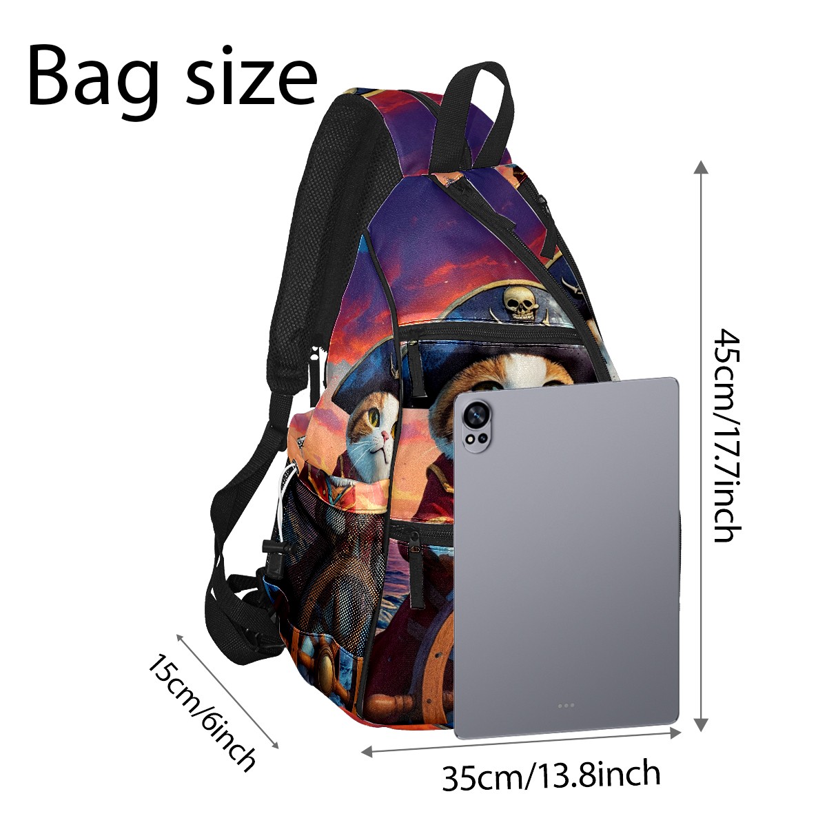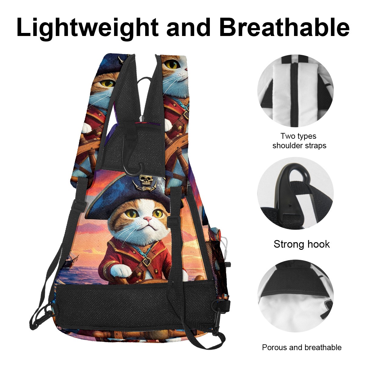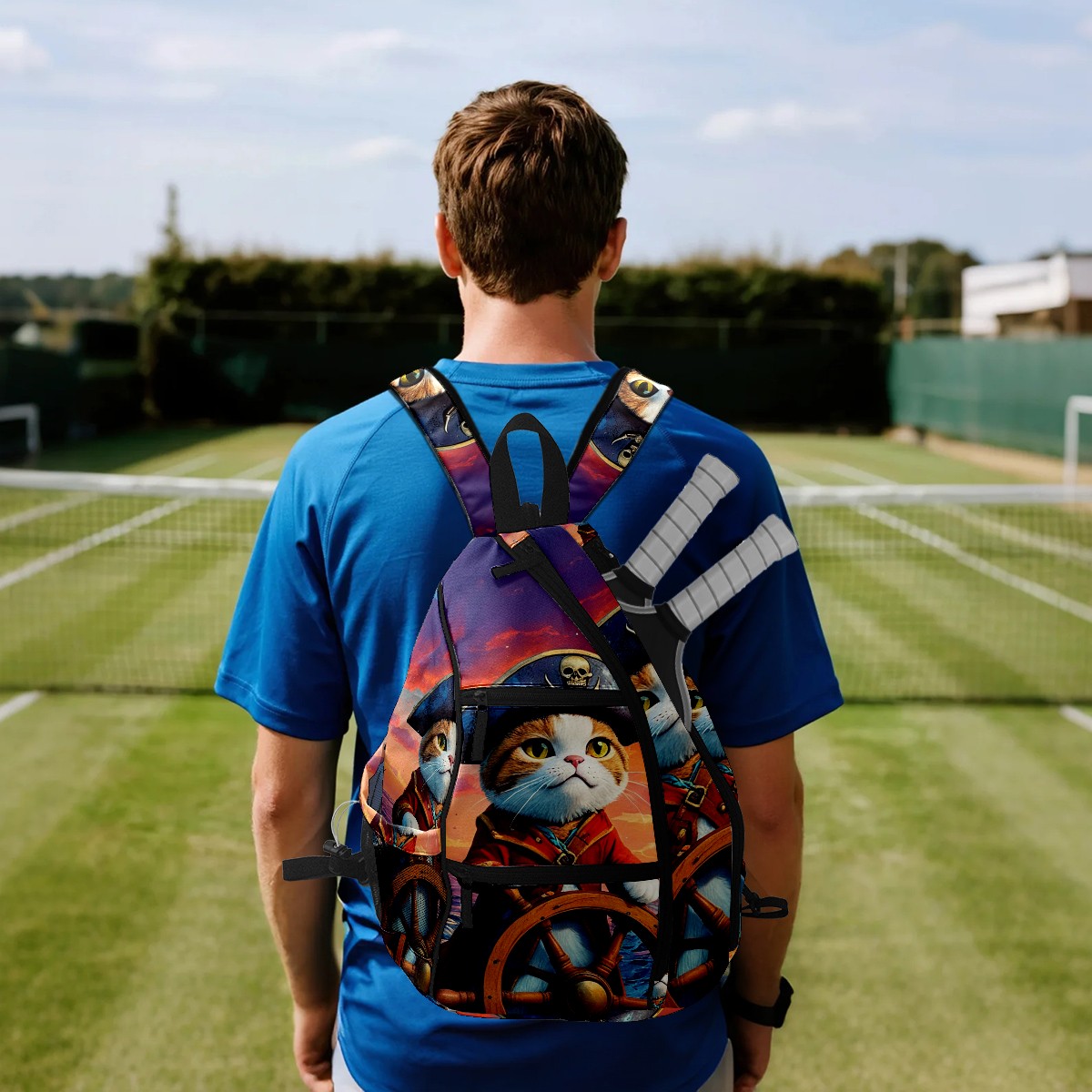 Pickleball Bag Pirate Cat Pickle Ball Backpack for Women Men Premium Lightweight Crossbody Sling Bag Sports Backpack for Pickleball Paddle Tennis