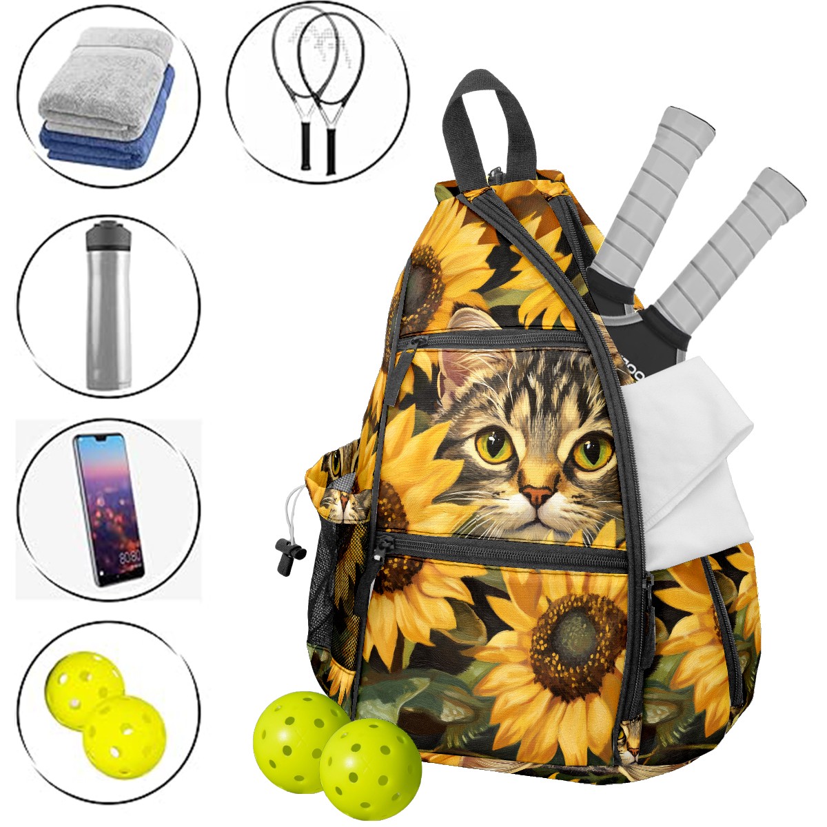 <p>ADJUSTABLE & VERSATILE</p> <p>Convertible Shoulder Strap: Wear it on either shoulder and adjust the length for maximum comfort. Perfect for left- or right-handed players!</p> <p>SPACIOUS & ORGANIZED</p> <p>5 Multi-Functional Pockets + Water Bottle Holder</p> <p>Fits 2-4 pickleball paddles + balls (or 2+ table tennis sets)</p> <p>Hidden anti-theft pocket for cash, keys, or cards – keep valuables secure</p> <p>Dimensions: 14"W × 6"D × 18"H – Compact yet roomy.</p>