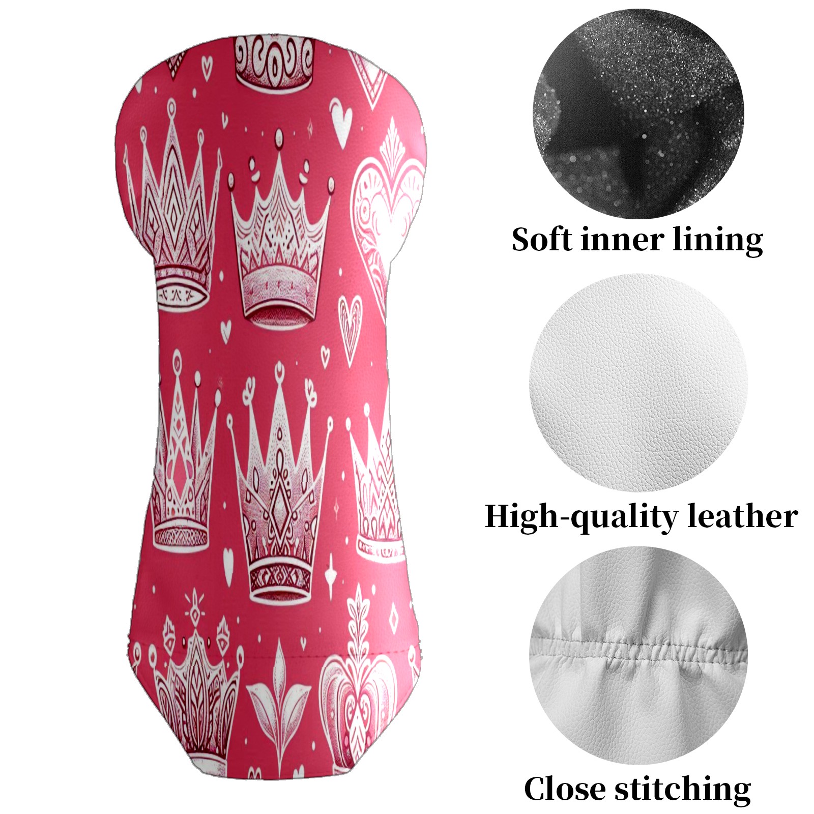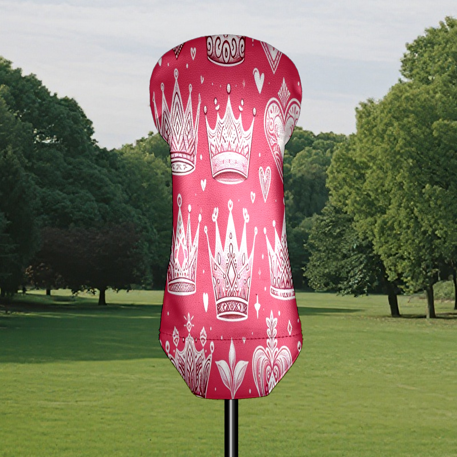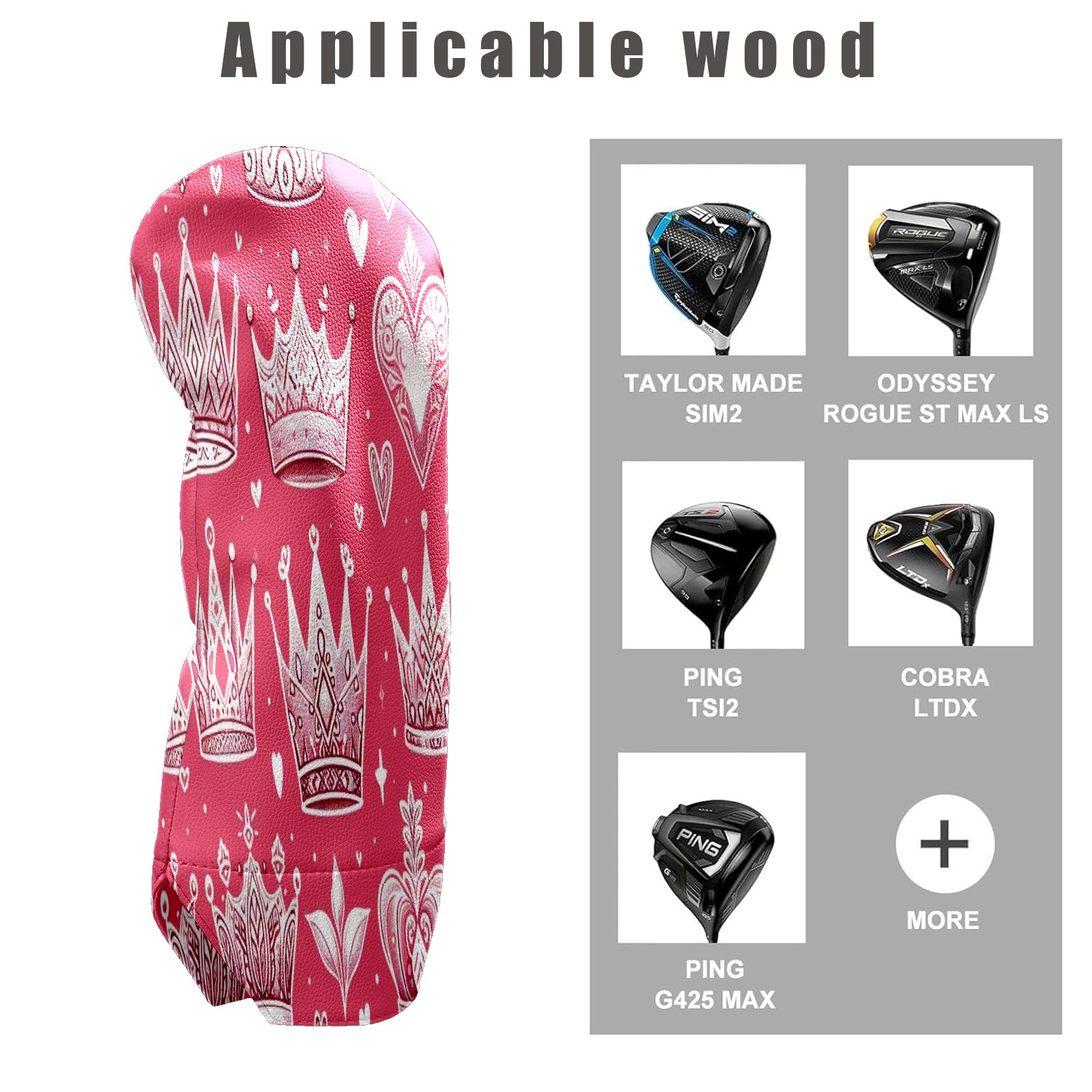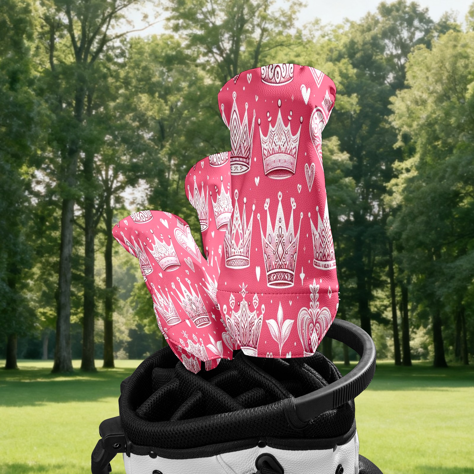 Golf Club Head Cover Waterproof Leather for Driver & Fairway Wood, Driver Headcovers, Golf Accessories for Men Women, Anti-Scratch, Golf Gift for Golfers, 1/3/5 Wood Cover Pink Crown Heart