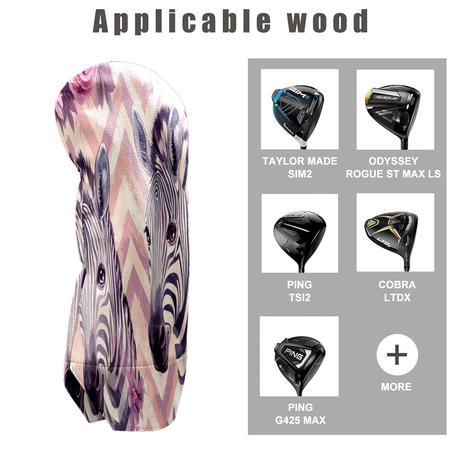 Golf Club Head Cover Waterproof Leather for Driver & Fairway Wood, Driver Headcovers, Golf Accessories for Men Women, Anti-Scratch, Golf Gift for Golfers, 1/3/5 Wood Cover Black White Zebra Flower