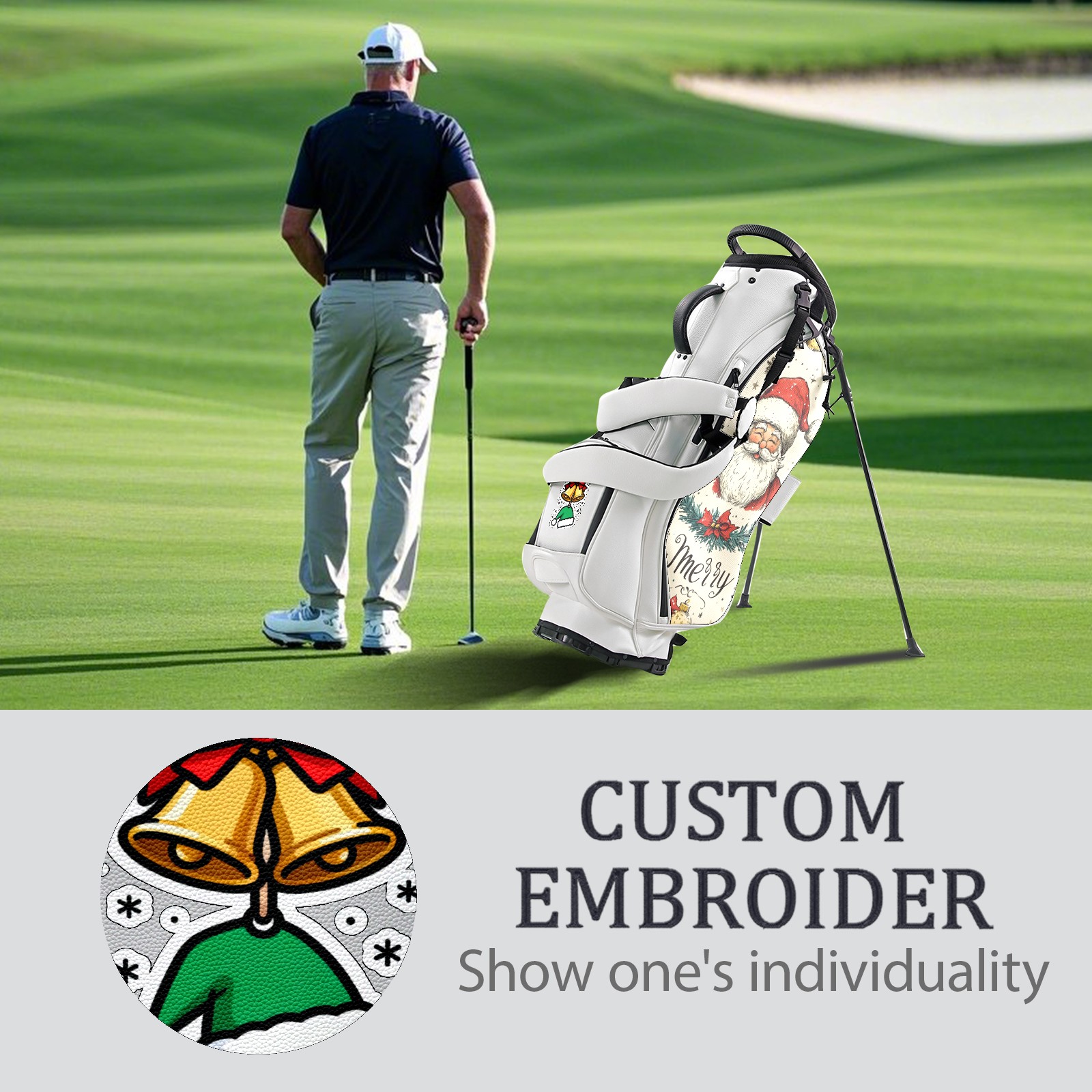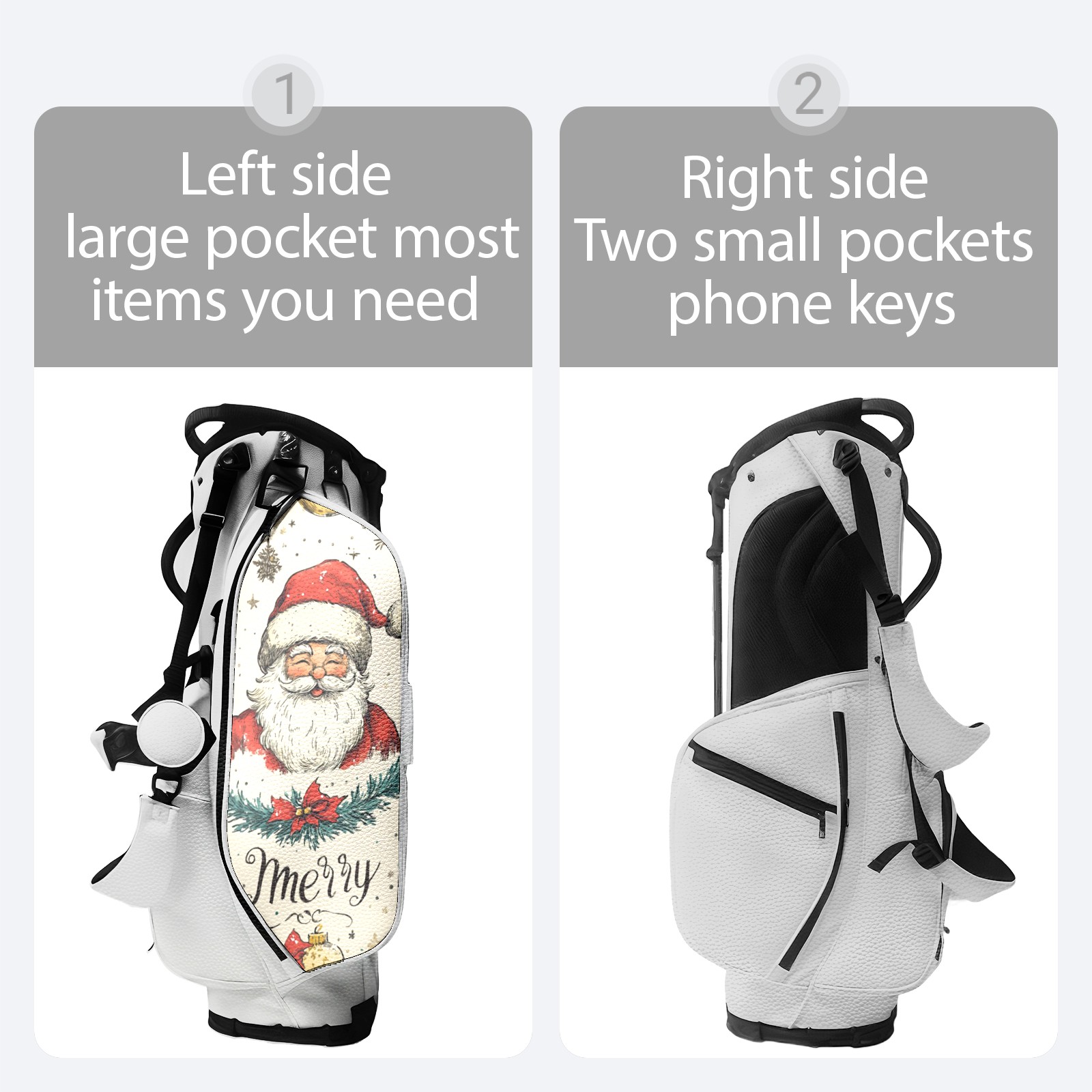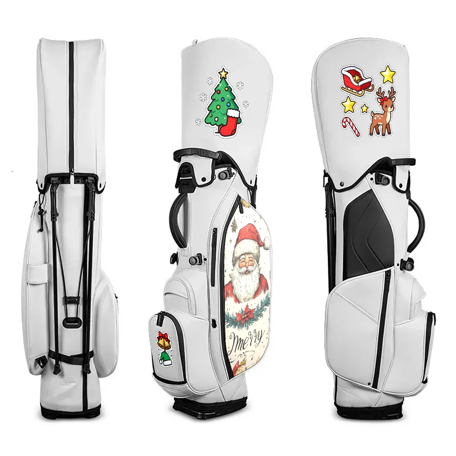 <p>The golf bag is carefully crafted with PU leather fabric, with classic lychee pattern and matte texture, available in black and white, and equipped with a dedicated rain cover. It not only looks stylish, but also can protect your clubs and equipment from wind and rain. In terms of storage design, it provides 5/14 compartments of large capacity to effectively protect the clubs; waterproof zipper pockets ensure that items are dry and safe; abundant storage space to meet your storage needs for various necessities. Thickened breathable shoulder straps with adjustable chest buckles evenly disperse shoulder pressure, 14-way partition design on the top of the bag, each iron, wood and putter has a dedicated position, and the bottom anti-wear and anti-slip spikes design can adapt to various complex terrain placements to prevent the bag from tipping over or shaking, escorting your golf trip.</p>
