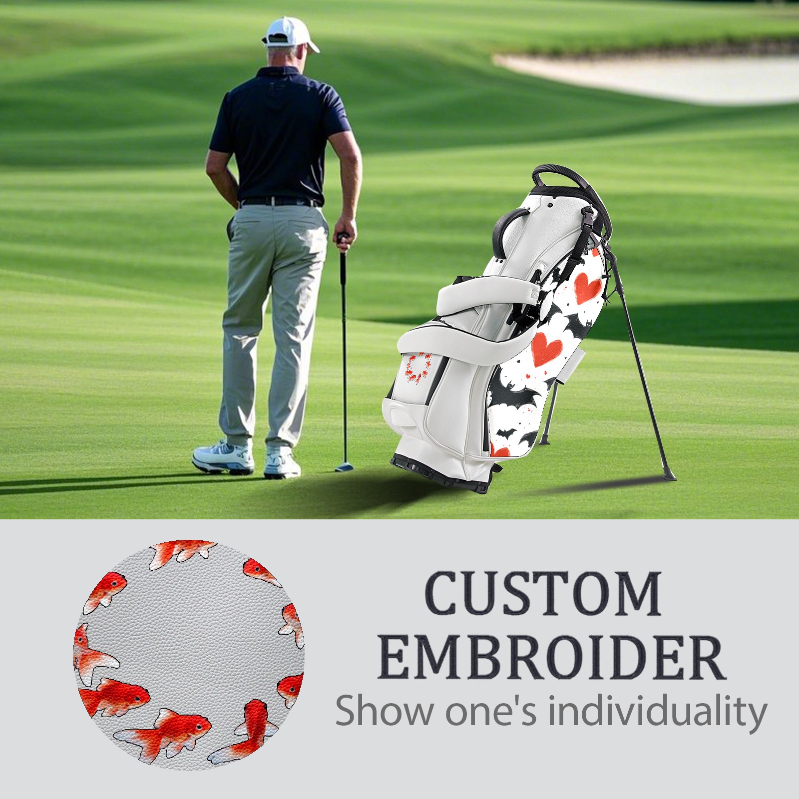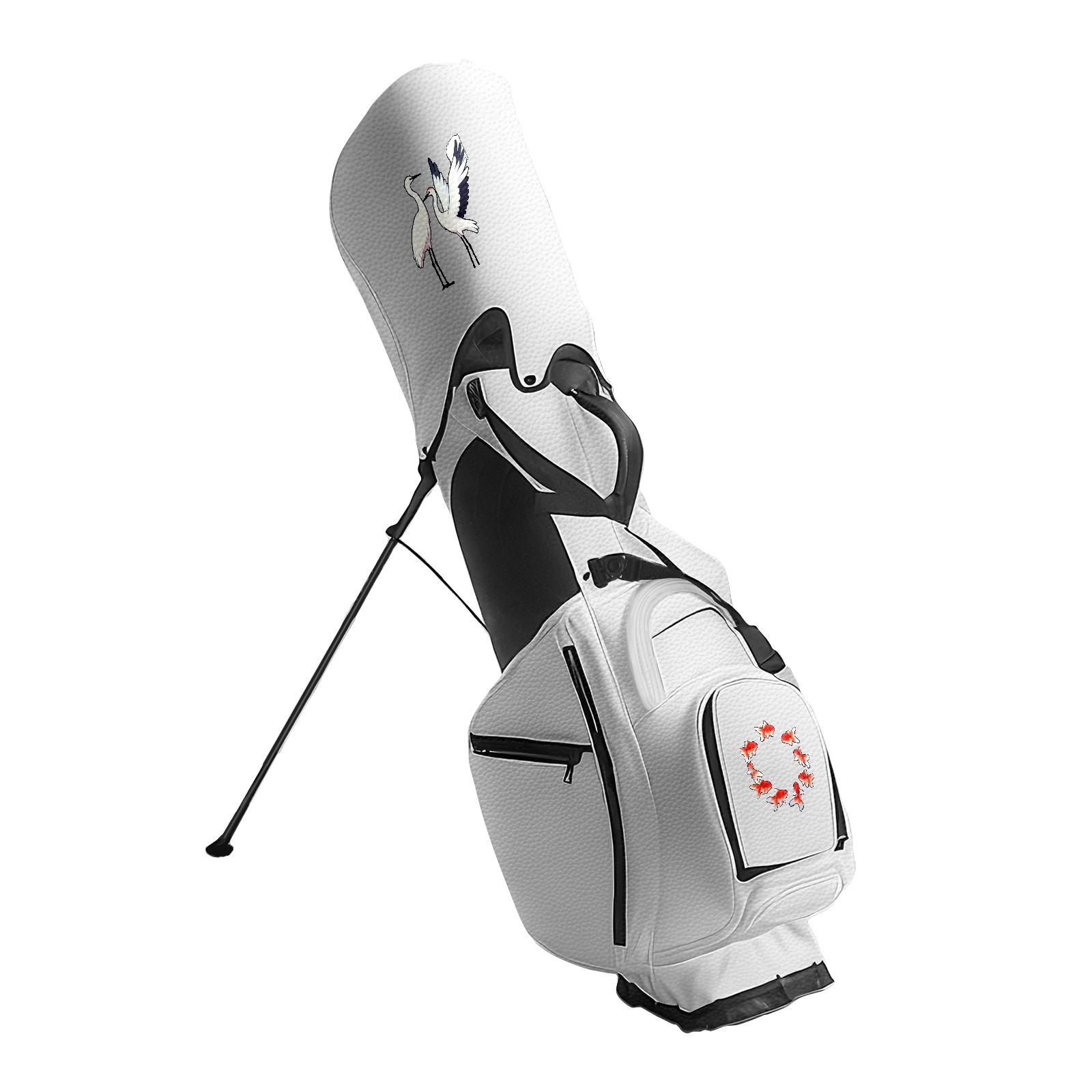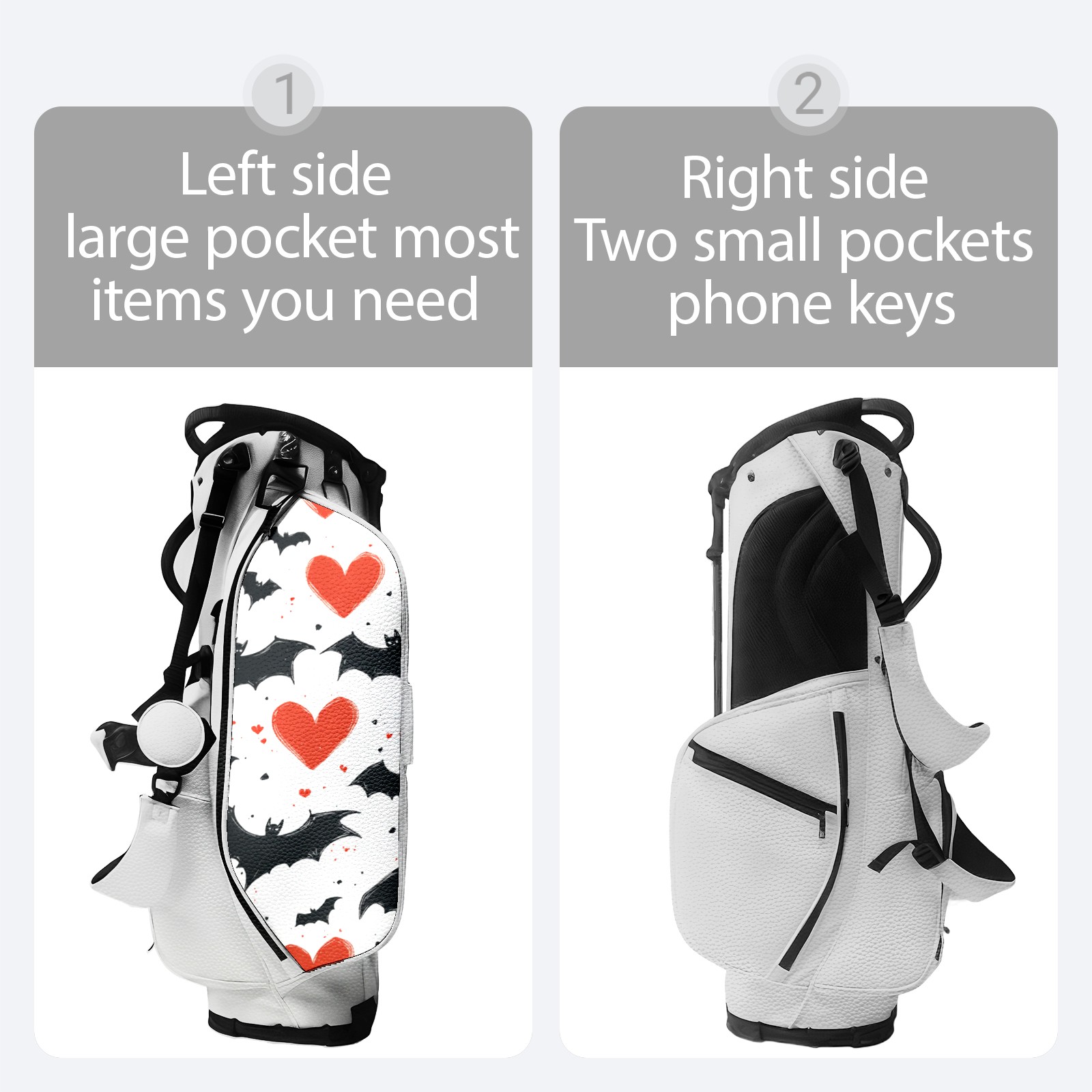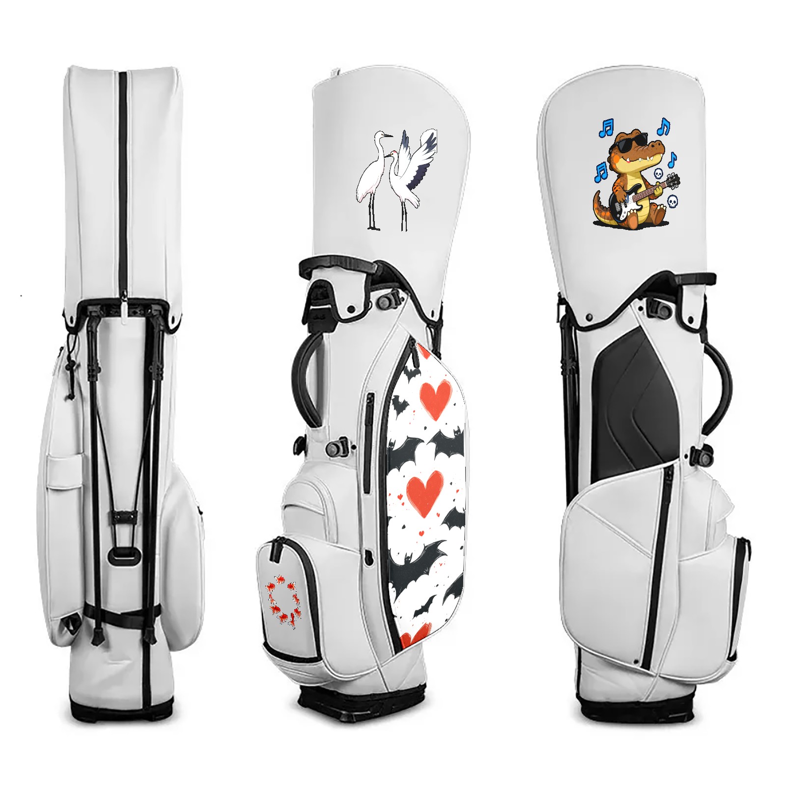 <p>The golf bag is carefully crafted with PU leather fabric, with classic lychee pattern and matte texture, available in black and white, and equipped with a dedicated rain cover. It not only looks stylish, but also can protect your clubs and equipment from wind and rain. In terms of storage design, it provides 5/14 compartments of large capacity to effectively protect the clubs; waterproof zipper pockets ensure that items are dry and safe; abundant storage space to meet your storage needs for various necessities. Thickened breathable shoulder straps with adjustable chest buckles evenly disperse shoulder pressure, 14-way partition design on the top of the bag, each iron, wood and putter has a dedicated position, and the bottom anti-wear and anti-slip spikes design can adapt to various complex terrain placements to prevent the bag from tipping over or shaking, escorting your golf trip.</p>