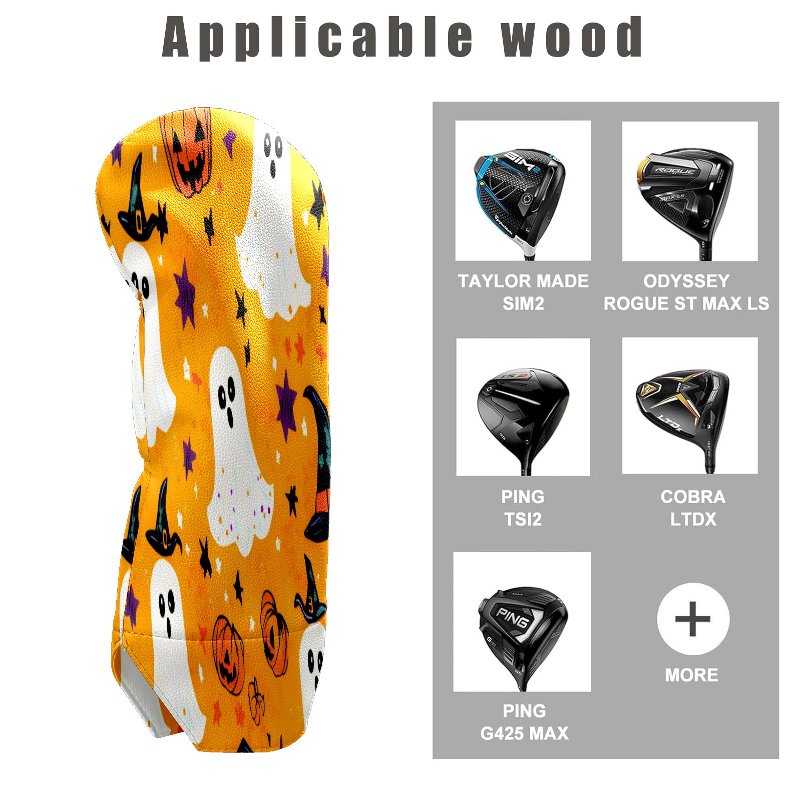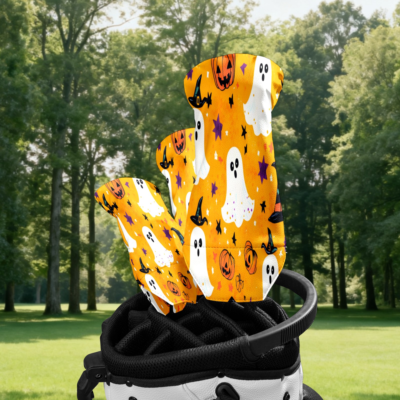 Golf Club Head Cover Waterproof Leather for Driver & Fairway Wood, Driver Headcovers, Golf Accessories for Men Women, Anti-Scratch, Golf Gift for Golfers, 1/3/5 Wood Cover Orange Ghost
