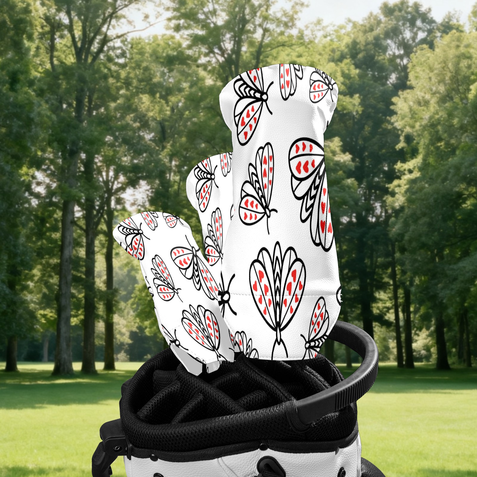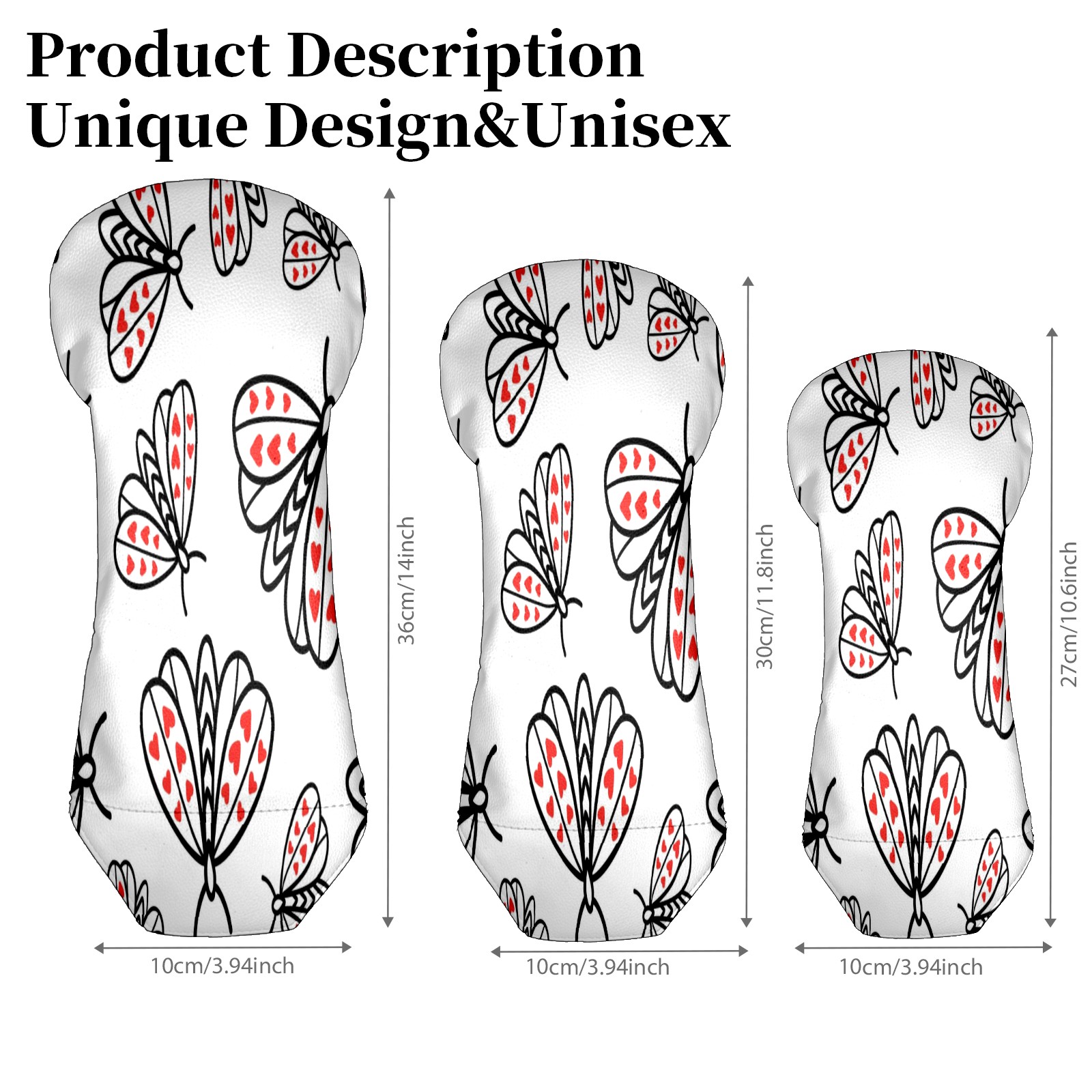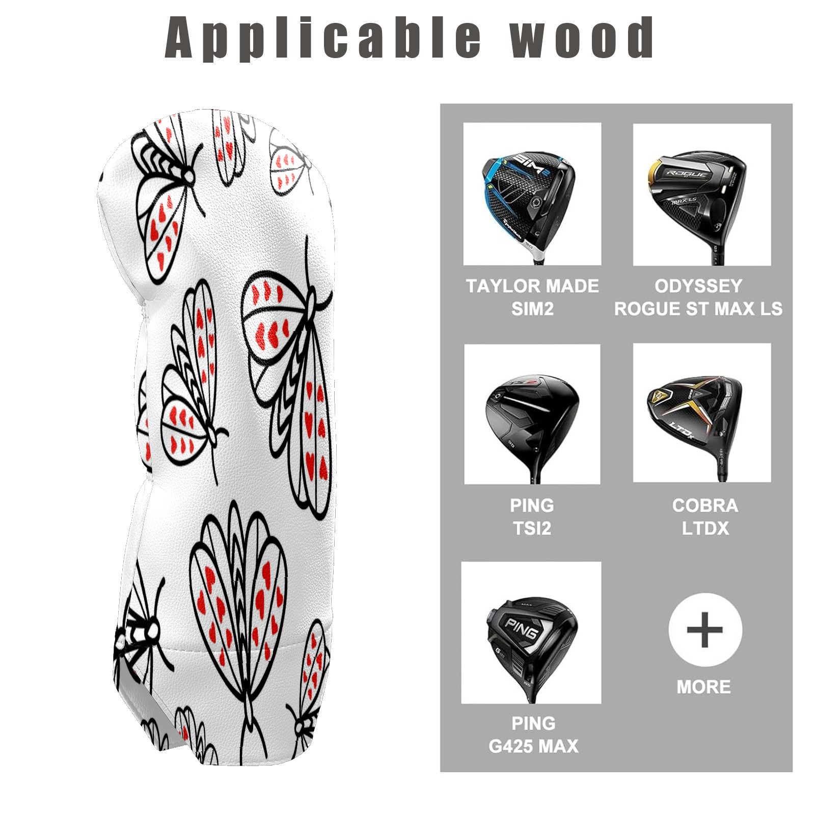 Golf Club Head Cover Waterproof Leather for Driver & Fairway Wood, Driver Headcovers, Golf Accessories for Men Women, Anti-Scratch, Golf Gift for Golfers, 1/3/5 Wood Cover Seamless-pattern-with-butterflie