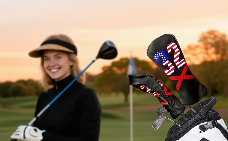 Golf Head Covers for Woods and Driver Waterproof Leather Golf Club Head Covers for Women Men Golf Driver Fairway Wood Headcover Number 15 With Cross Pattern