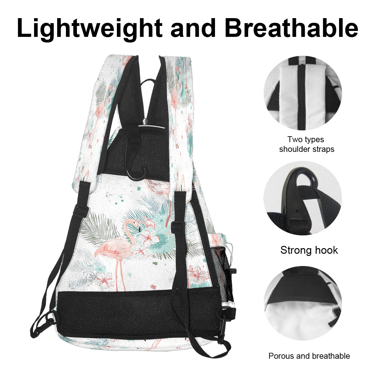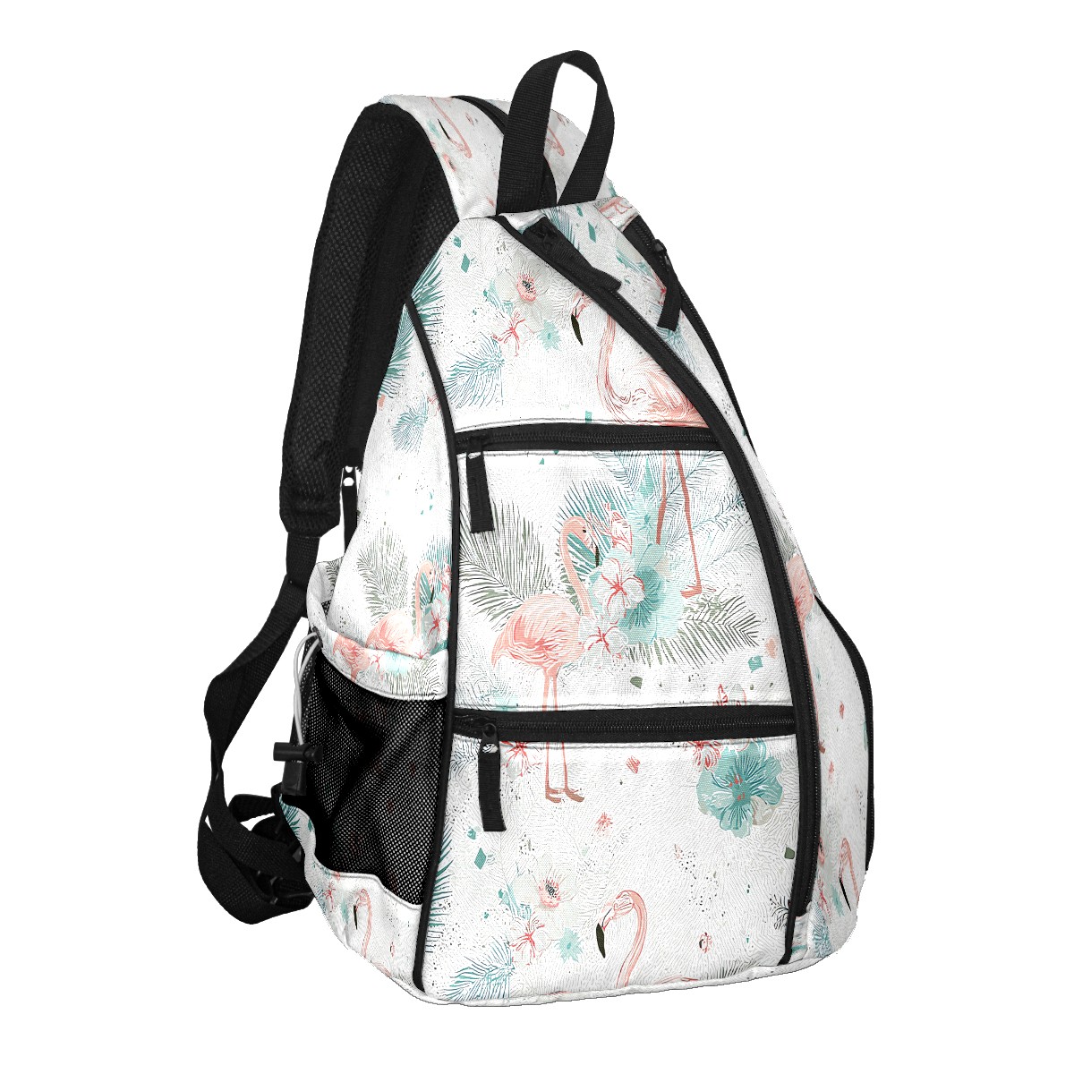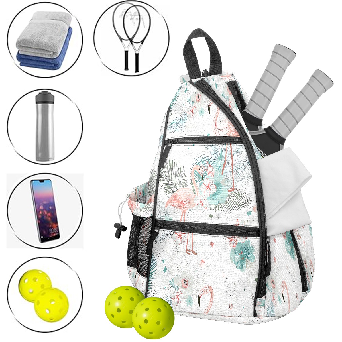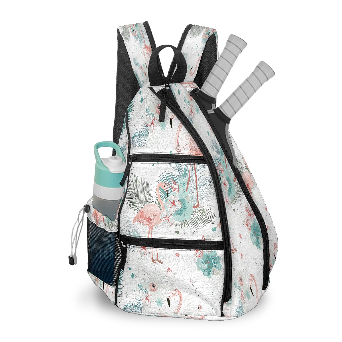 Pickleball Bag with Padded Back, White FlamingoFlower Multi-Compartment Paddle Backpack, Lightweight Nylon Sports Bag for Men & Women