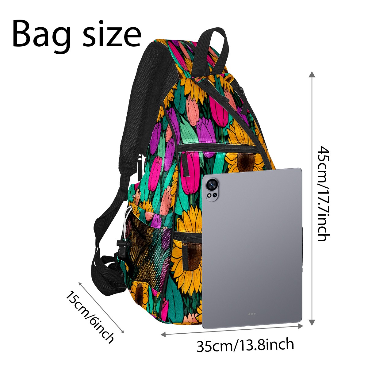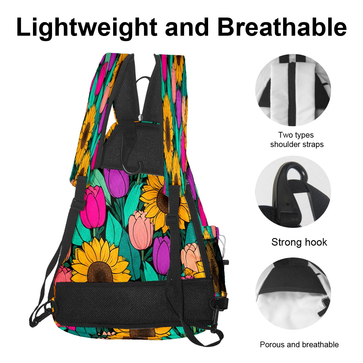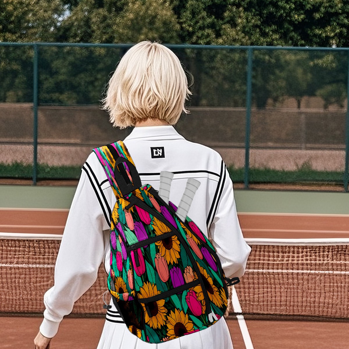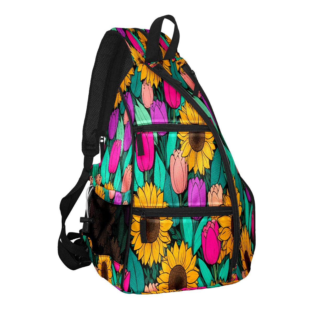 Pickleball Bag with Padded Back, Yellow Sunflowers Multi-Compartment Paddle Backpack, Lightweight Nylon Sports Bag for Men & Women