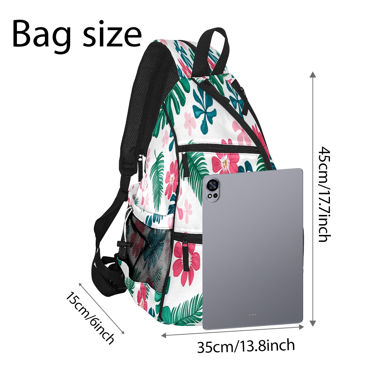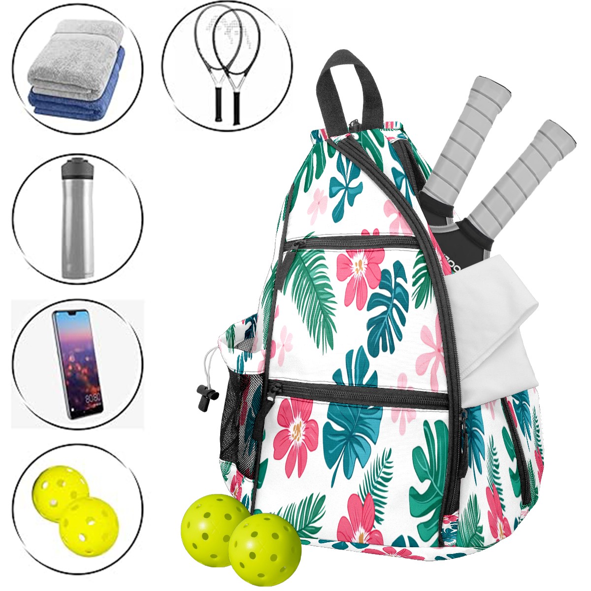 Pickleball Bag with Padded Back, Pink Tropical Flowers Multi-Compartment Paddle Backpack, Lightweight Nylon Sports Bag for Men & Women