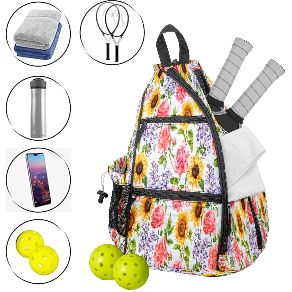 Pickleball Bag with Padded Back, Sunflower Blue · Multi-Compartment Paddle Backpack, Lightweight Nylon Sports Bag for Men & Women