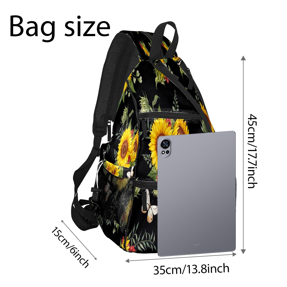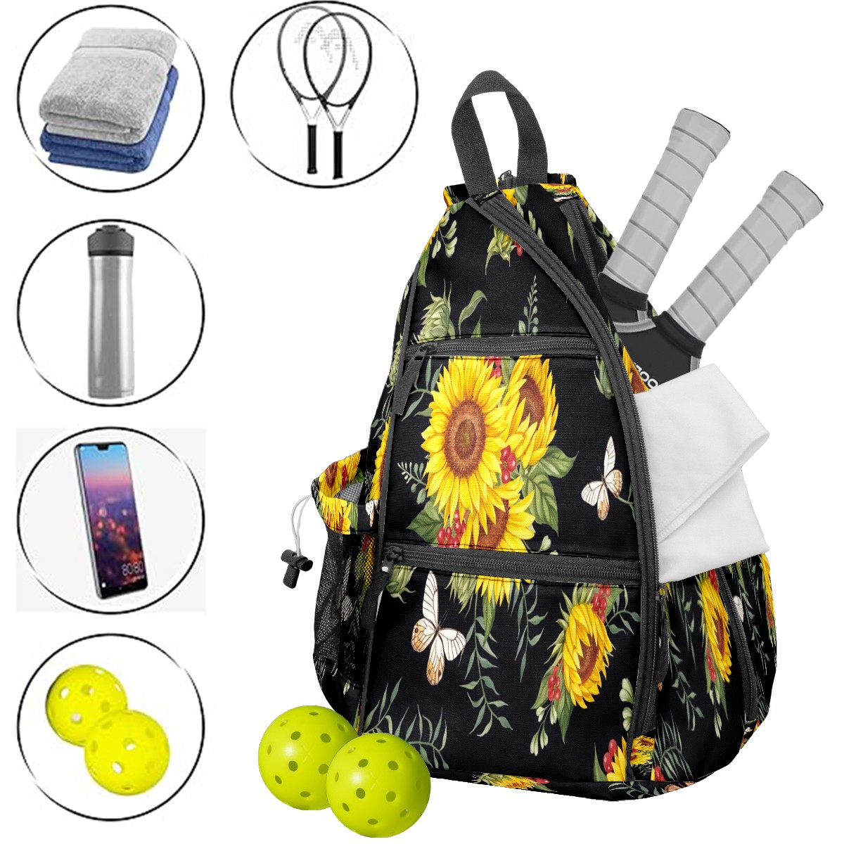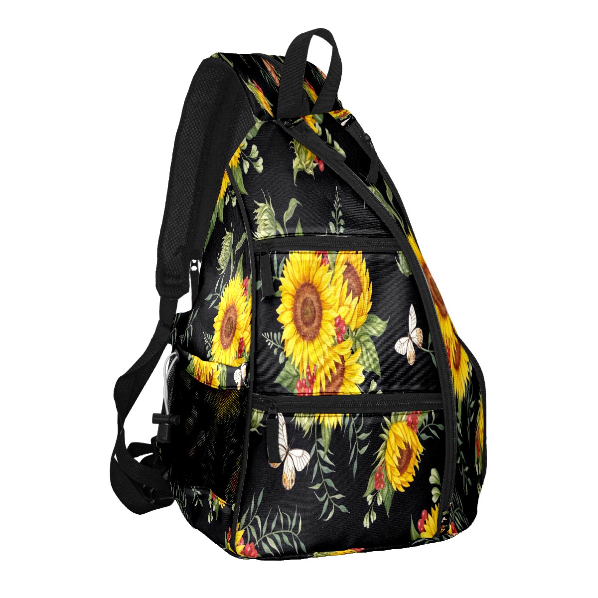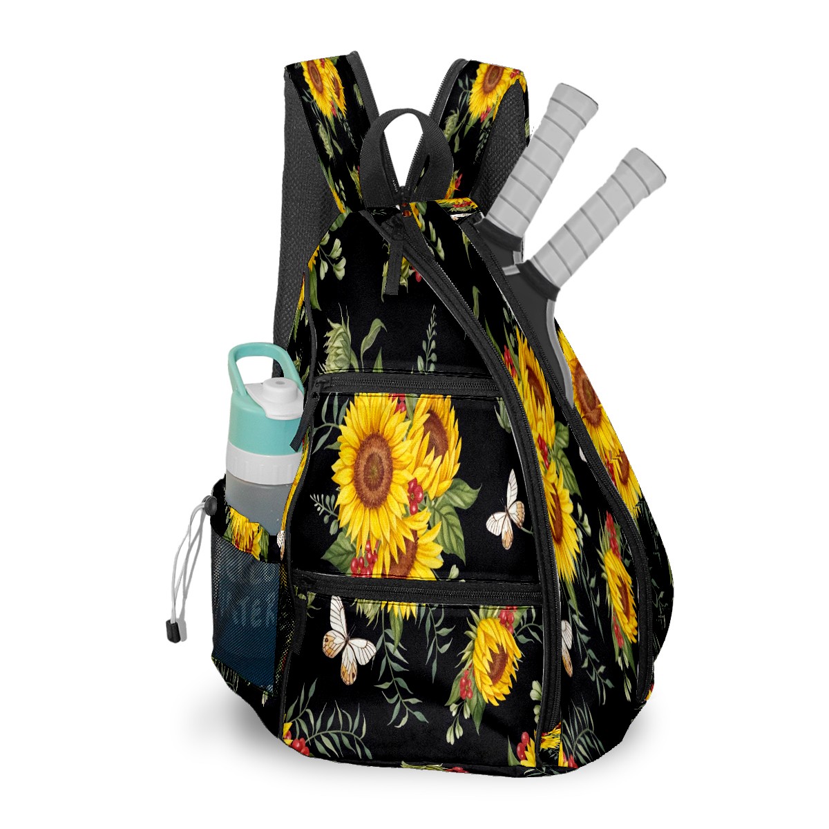 Pickleball Bag with Padded Back, Sunflower Black Multi-Compartment Paddle Backpack, Lightweight Nylon Sports Bag for Men & Women