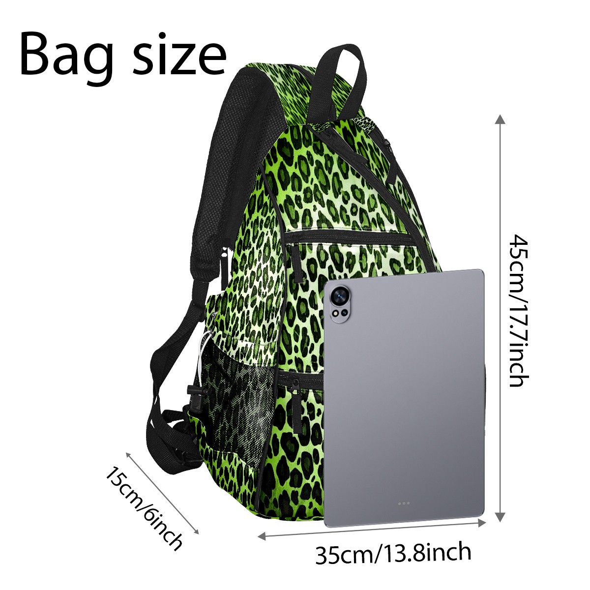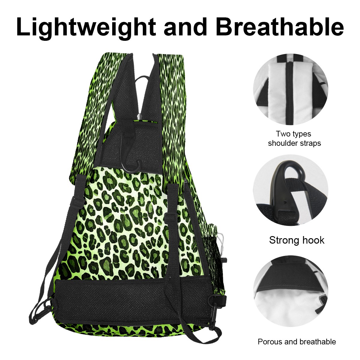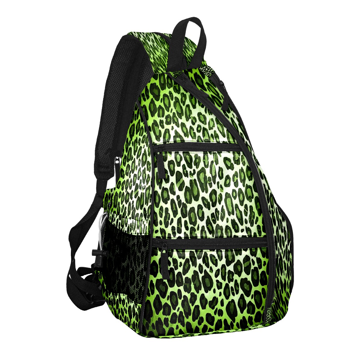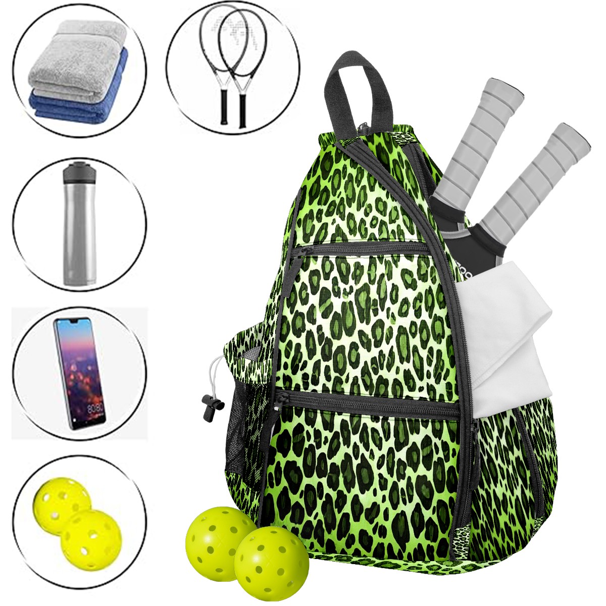 Pickleball Bag with Padded Back, Green Leopard Print Multi-Compartment Paddle Backpack, Lightweight Nylon Sports Bag for Men & Women