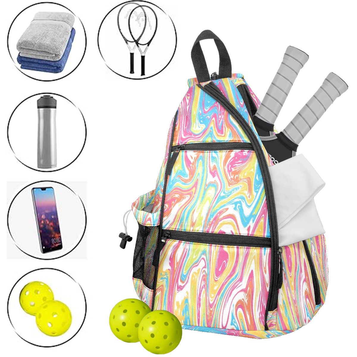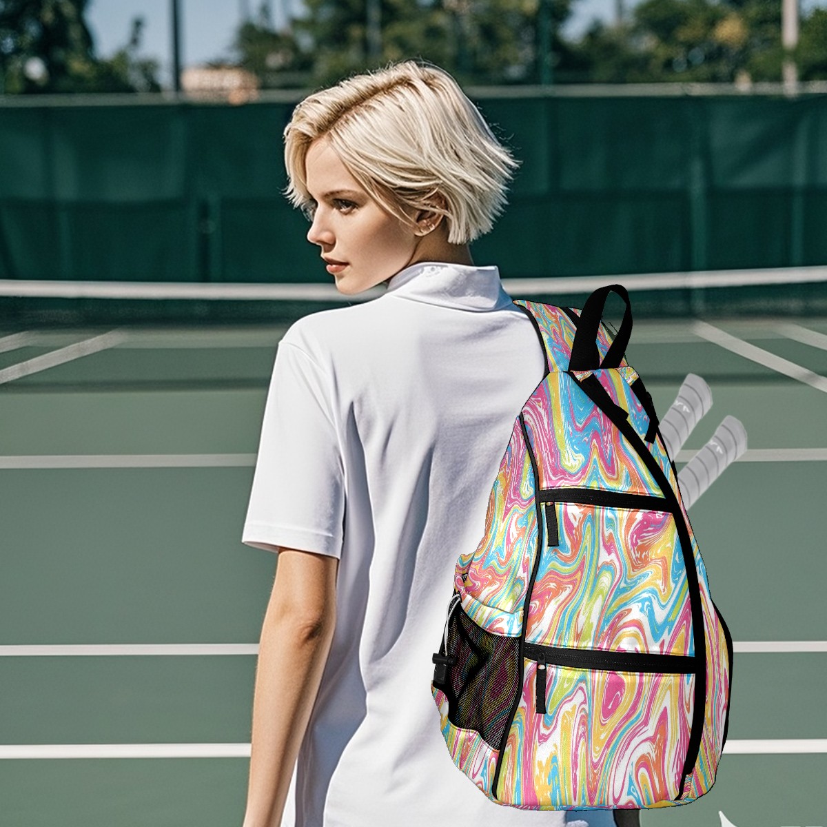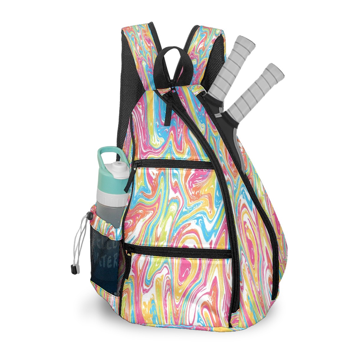 Pickleball Bag with Padded Back, Fluid Art Style Multi-Compartment Paddle Backpack, Lightweight Nylon Sports Bag for Men & Women