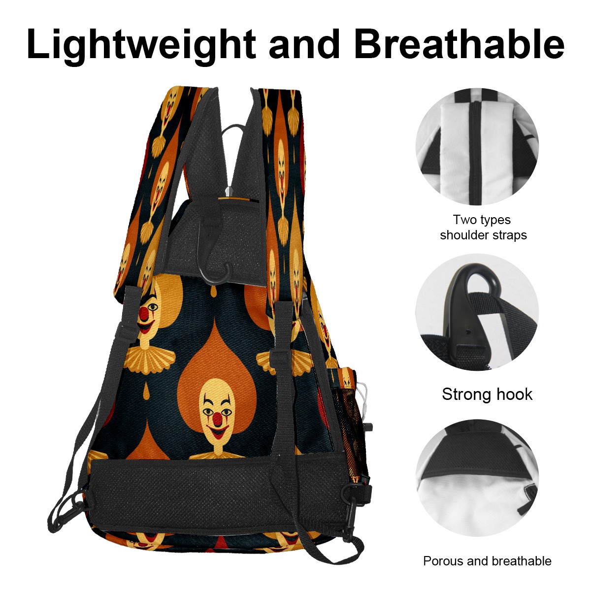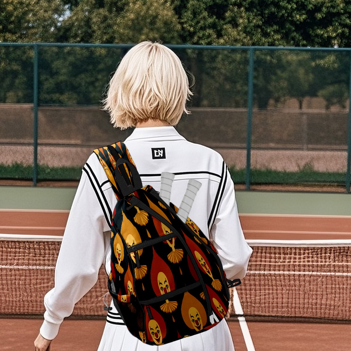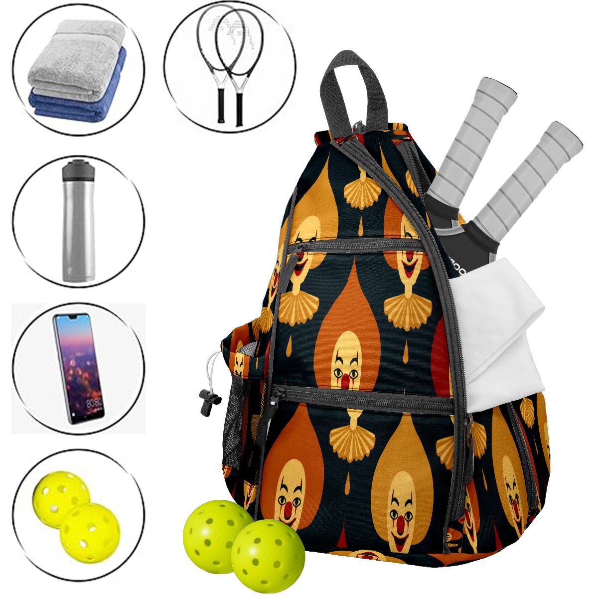 Pickleball Bag with Padded Back, Red Funny Patterns Multi-Compartment Paddle Backpack, Lightweight Nylon Sports Bag for Men & Women