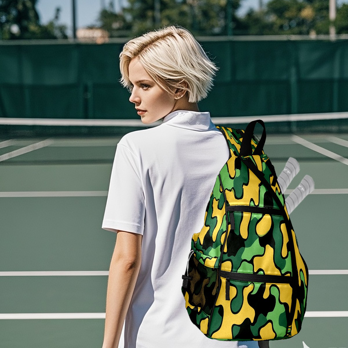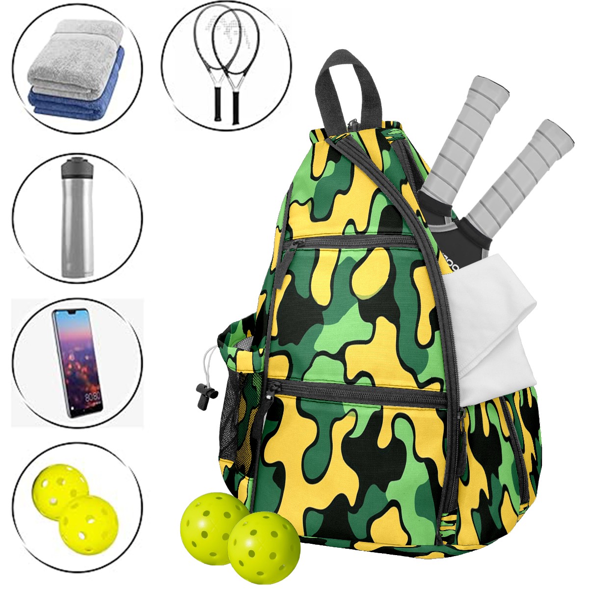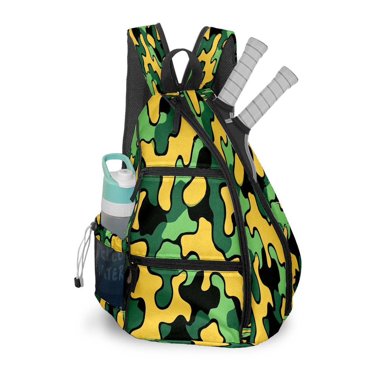 Pickleball Bag with Padded Back, Camouflage Yellow Multi-Compartment Paddle Backpack, Lightweight Nylon Sports Bag for Men & Women
